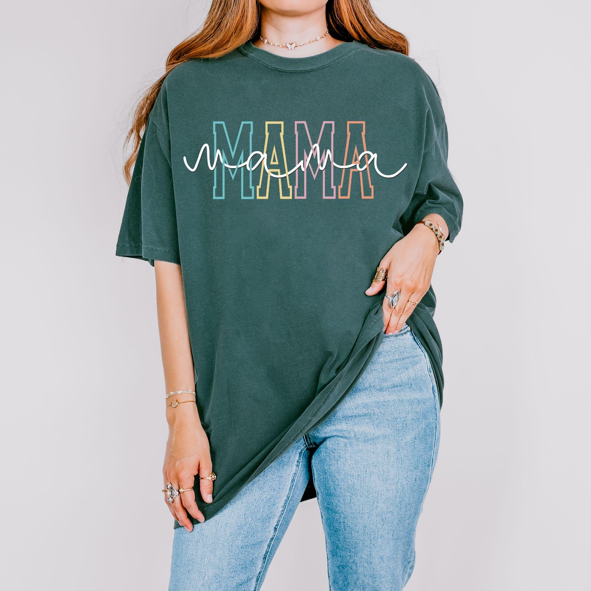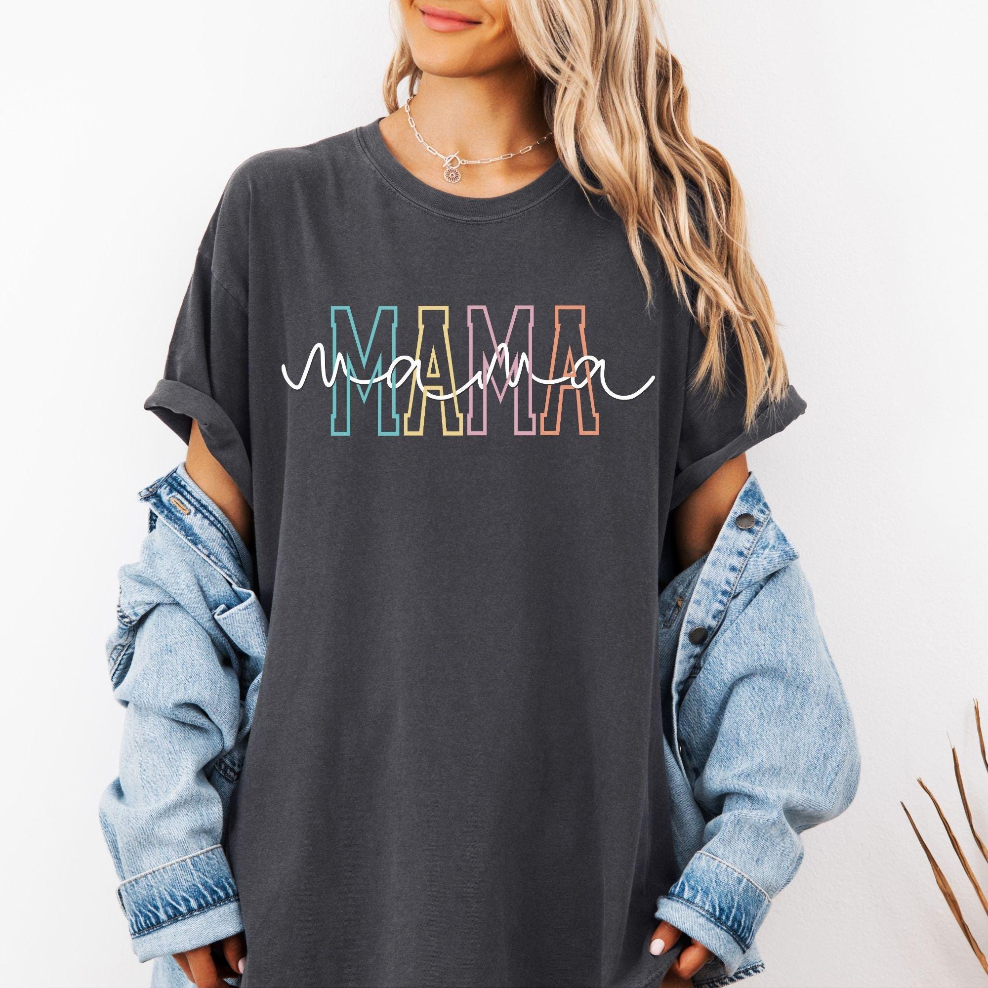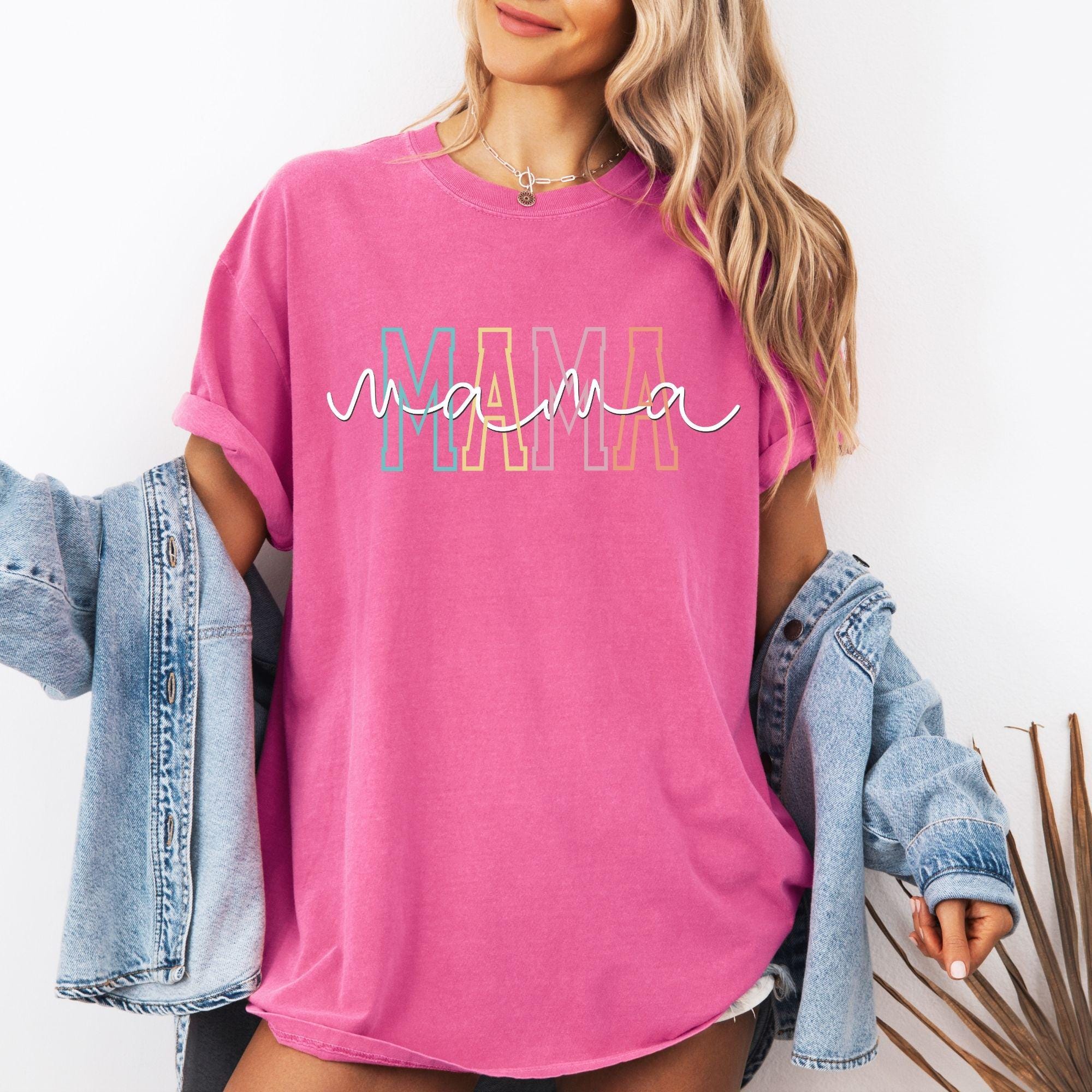 ❤️😍This unique and heartwarming “MAMA” t-shirt features a playful layering of two styles: the word “MAMA” appears once in colorful outline block letters and once in elegant script, overlapping beautifully like a hug in design form. A perfect gift for the moms who mean the world to us.