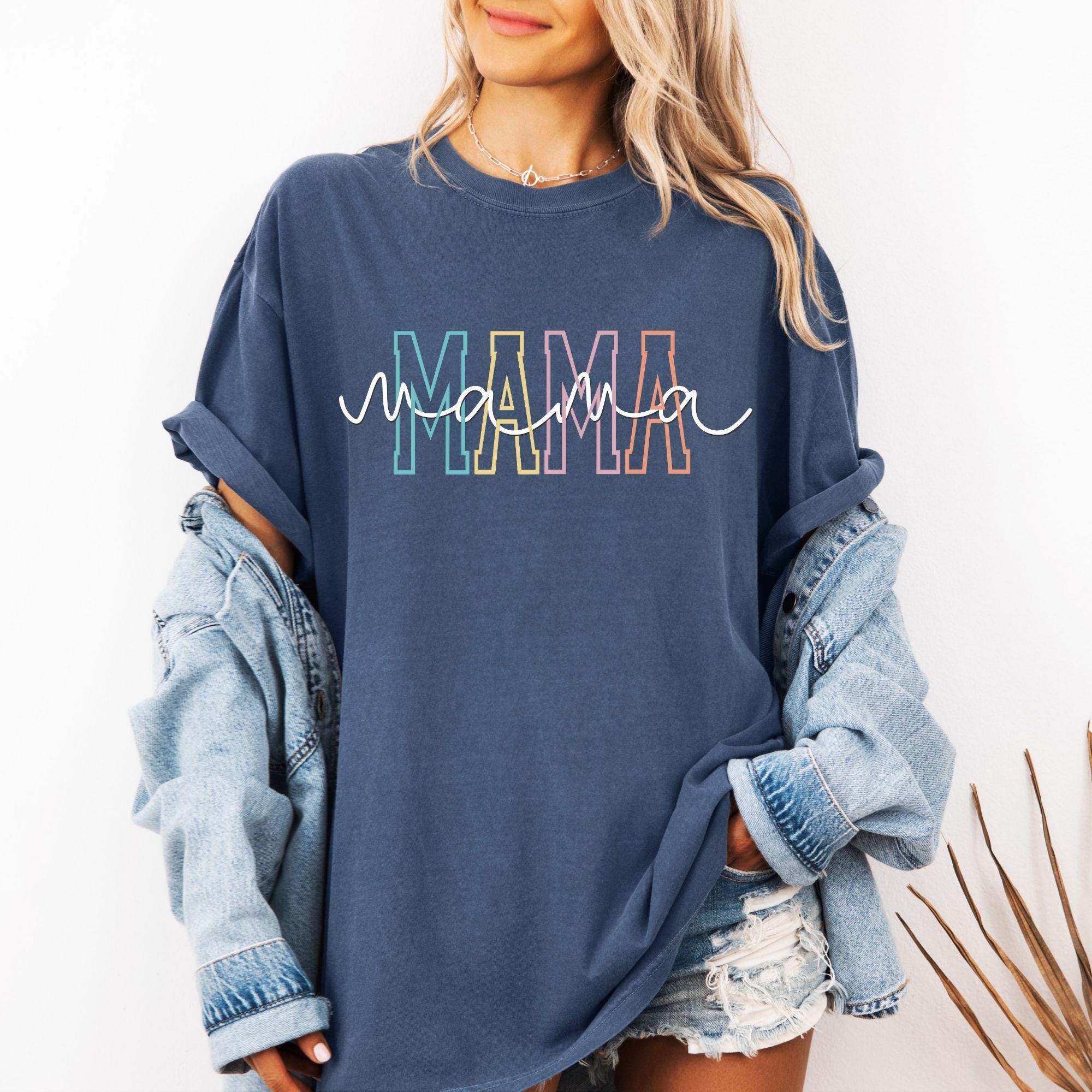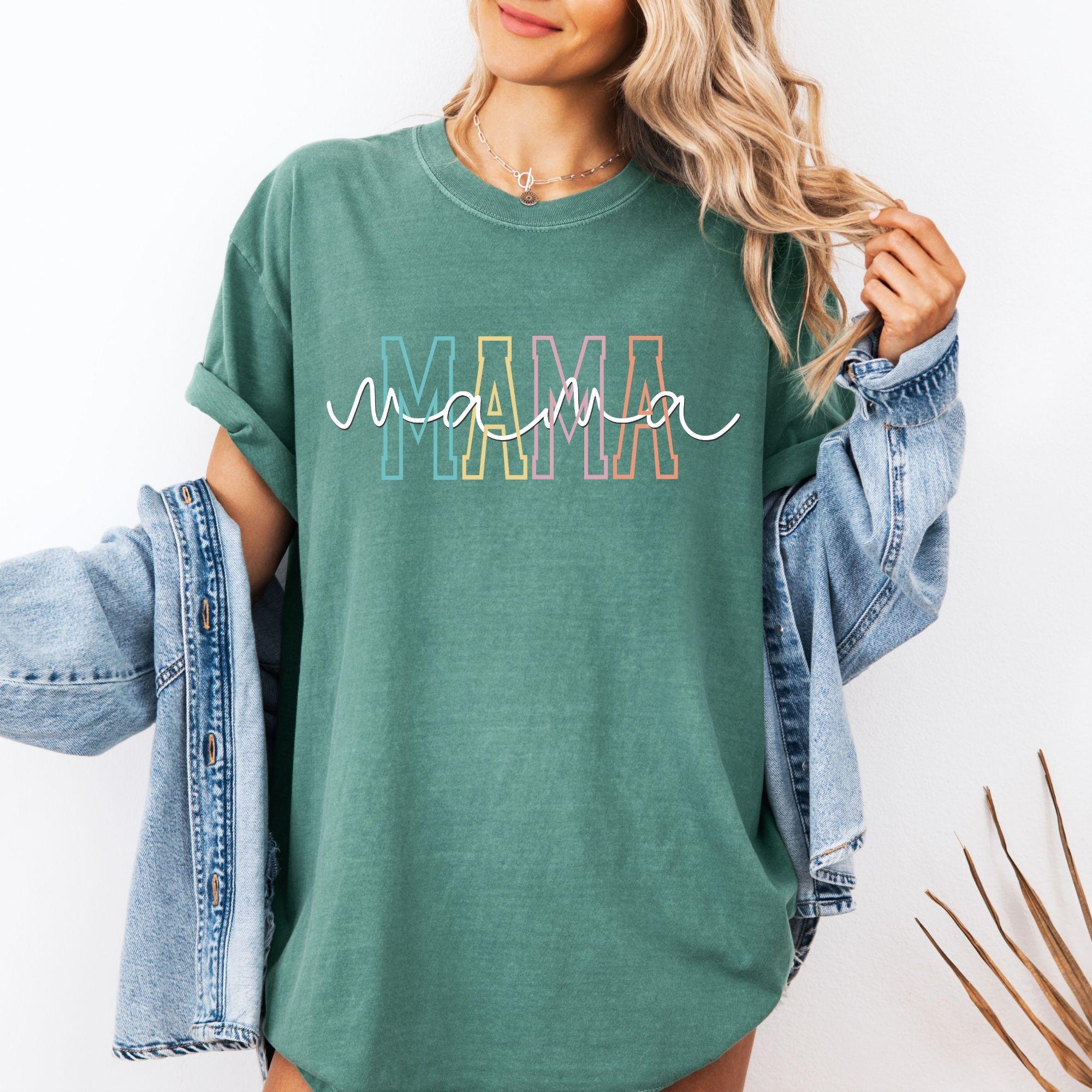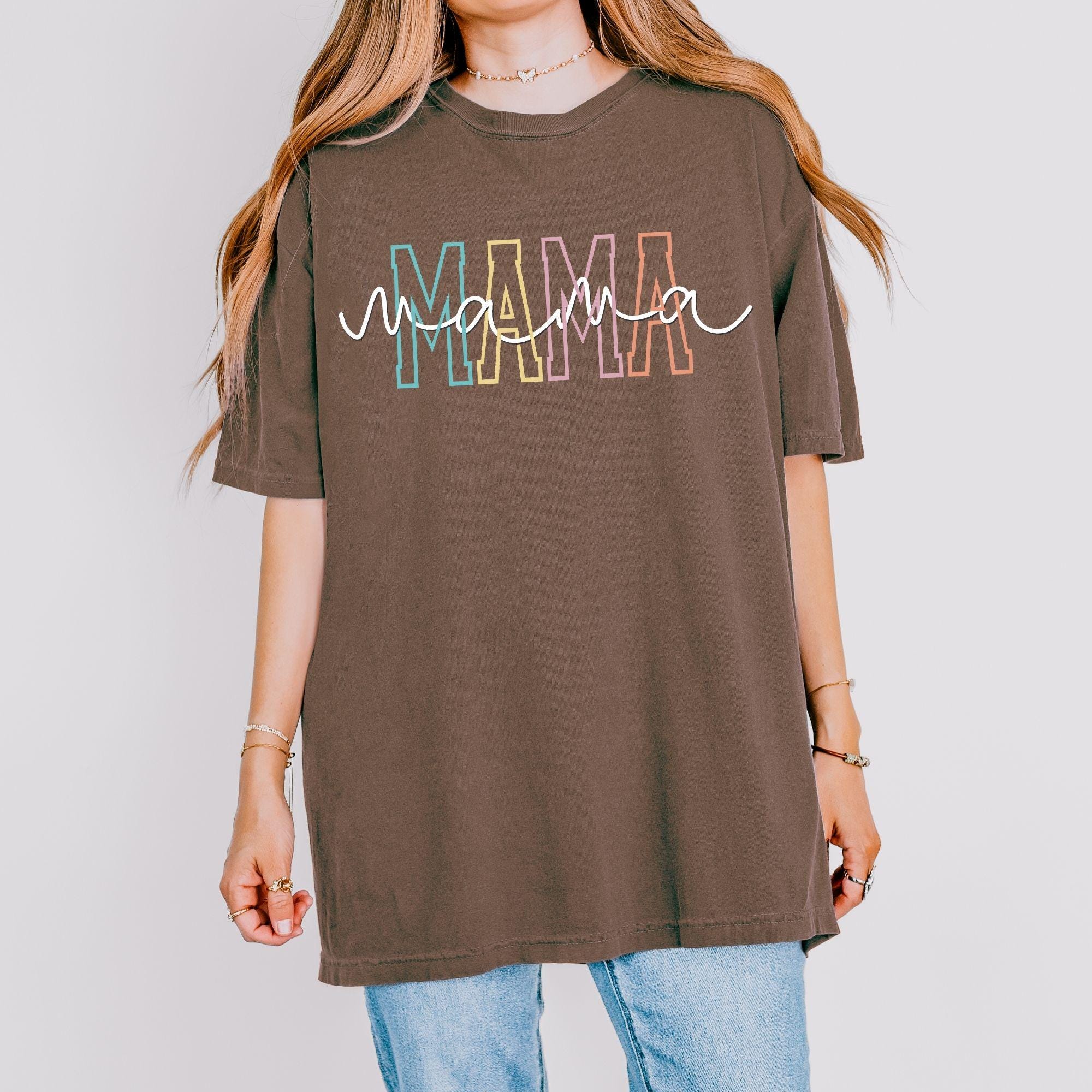 ❤️😍This unique and heartwarming “MAMA” t-shirt features a playful layering of two styles: the word “MAMA” appears once in colorful outline block letters and once in elegant script, overlapping beautifully like a hug in design form. A perfect gift for the moms who mean the world to us.