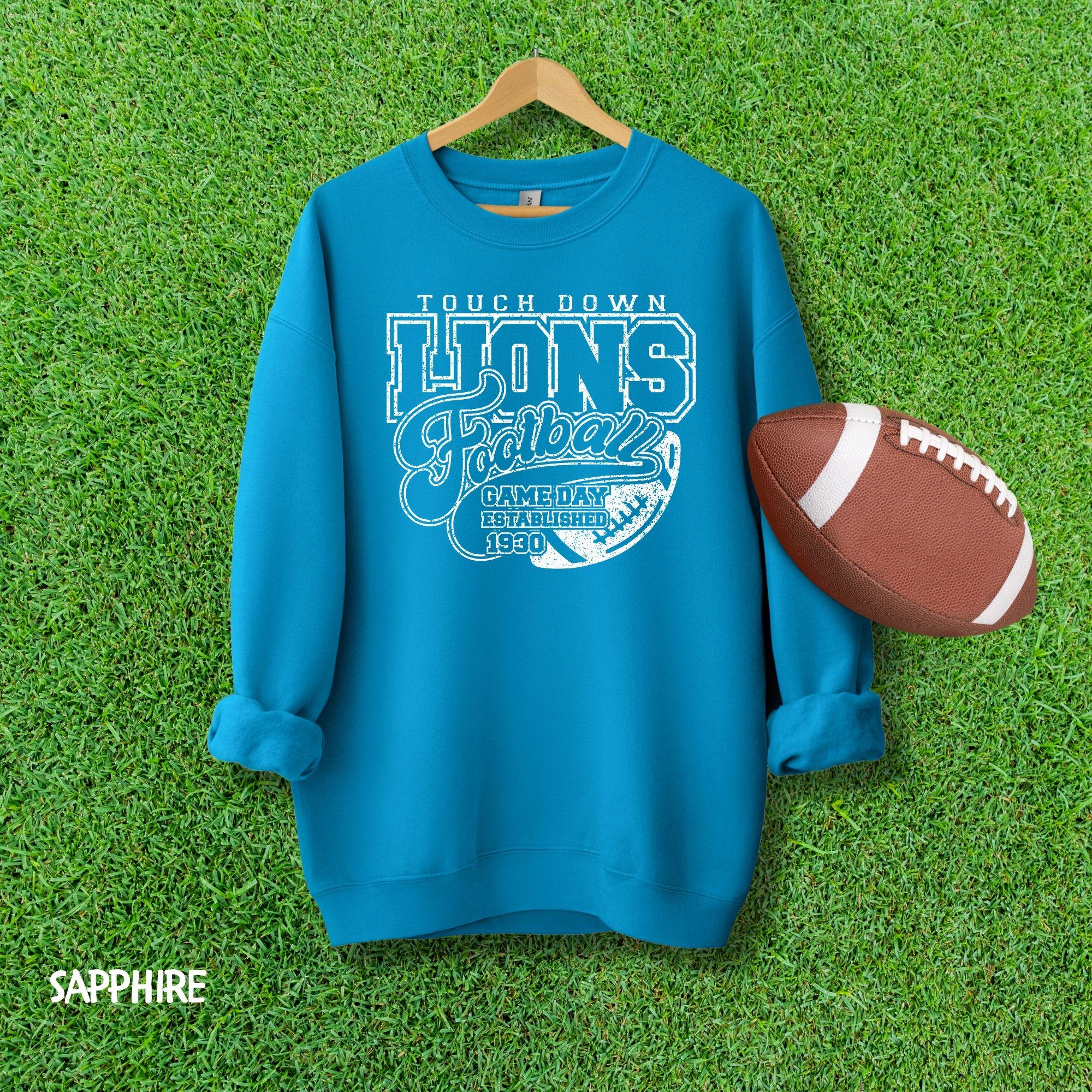 Celebrate a legacy of football greatness with our "Touch Down Lions 1930" graphic apparel. Inspired by the golden era of American football, this design features a classic, distressed varsity font that gives it an authentic, lived-in feel. It's the perfect tribute to decades of history, designed for the modern fan. Our comfortable t-shirts and cozy sweatshirts are ideal for showing your support on game day, lounging at home, or as a stylish everyday piece. The high-quality print ensures the vintage look lasts, making it a staple in your collection for seasons to come. A perfect gift for any fan who appreciates a timeless, retro sports aesthetic.