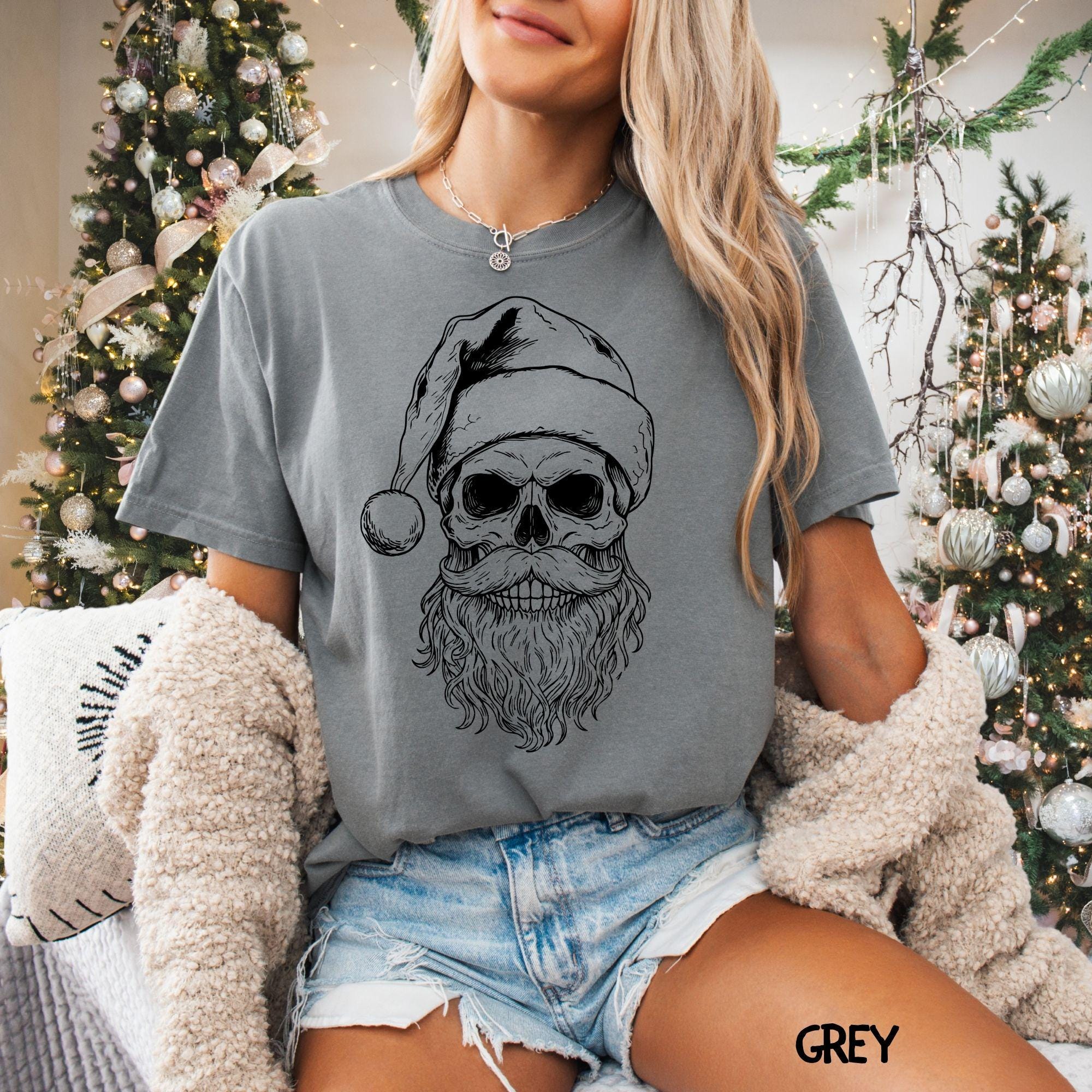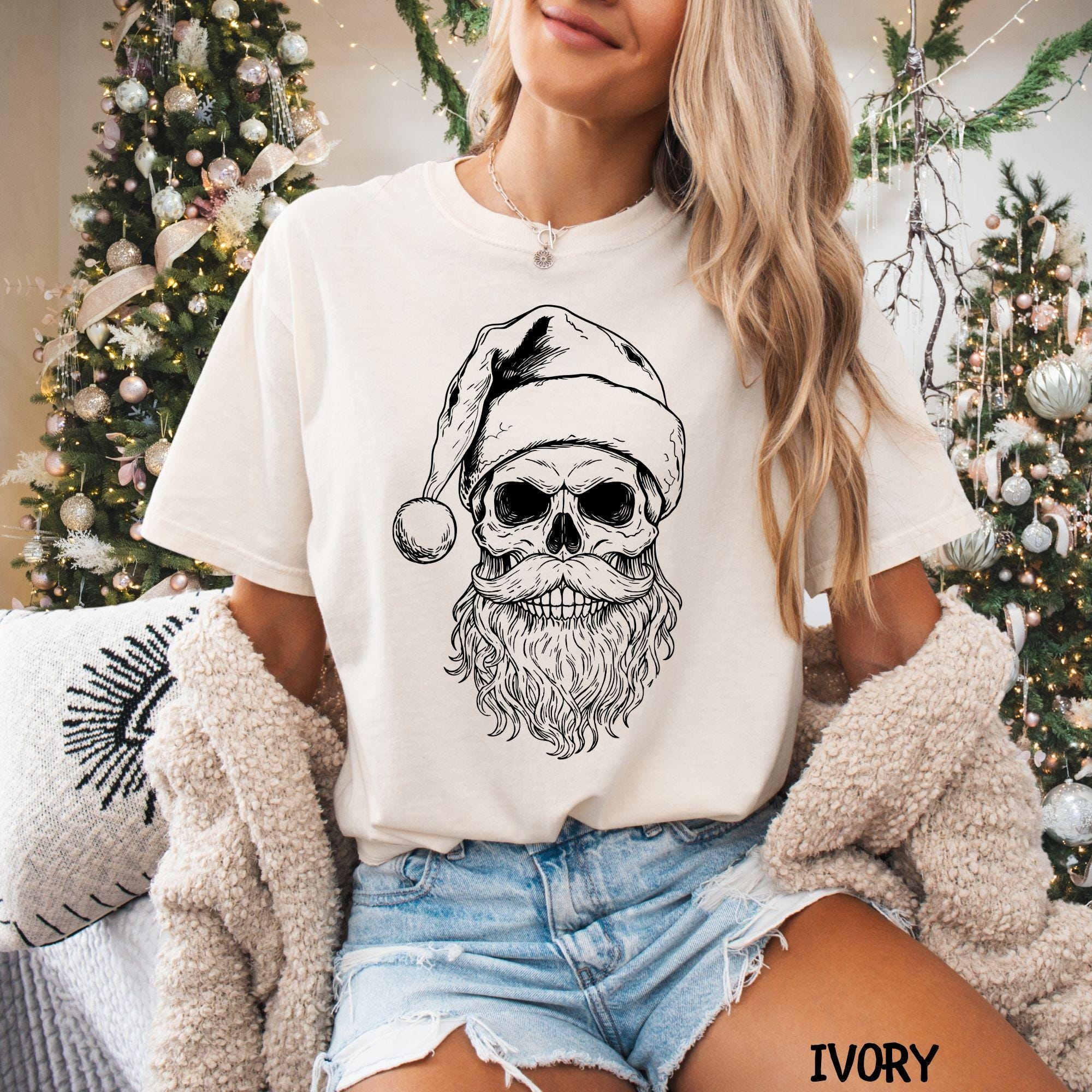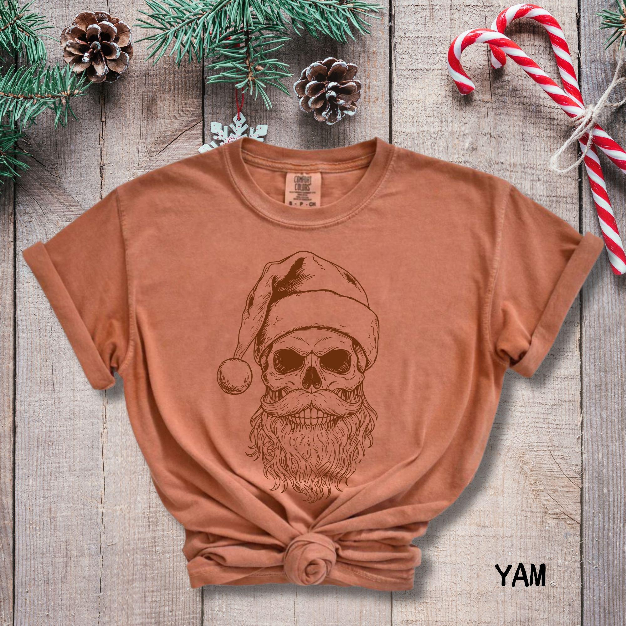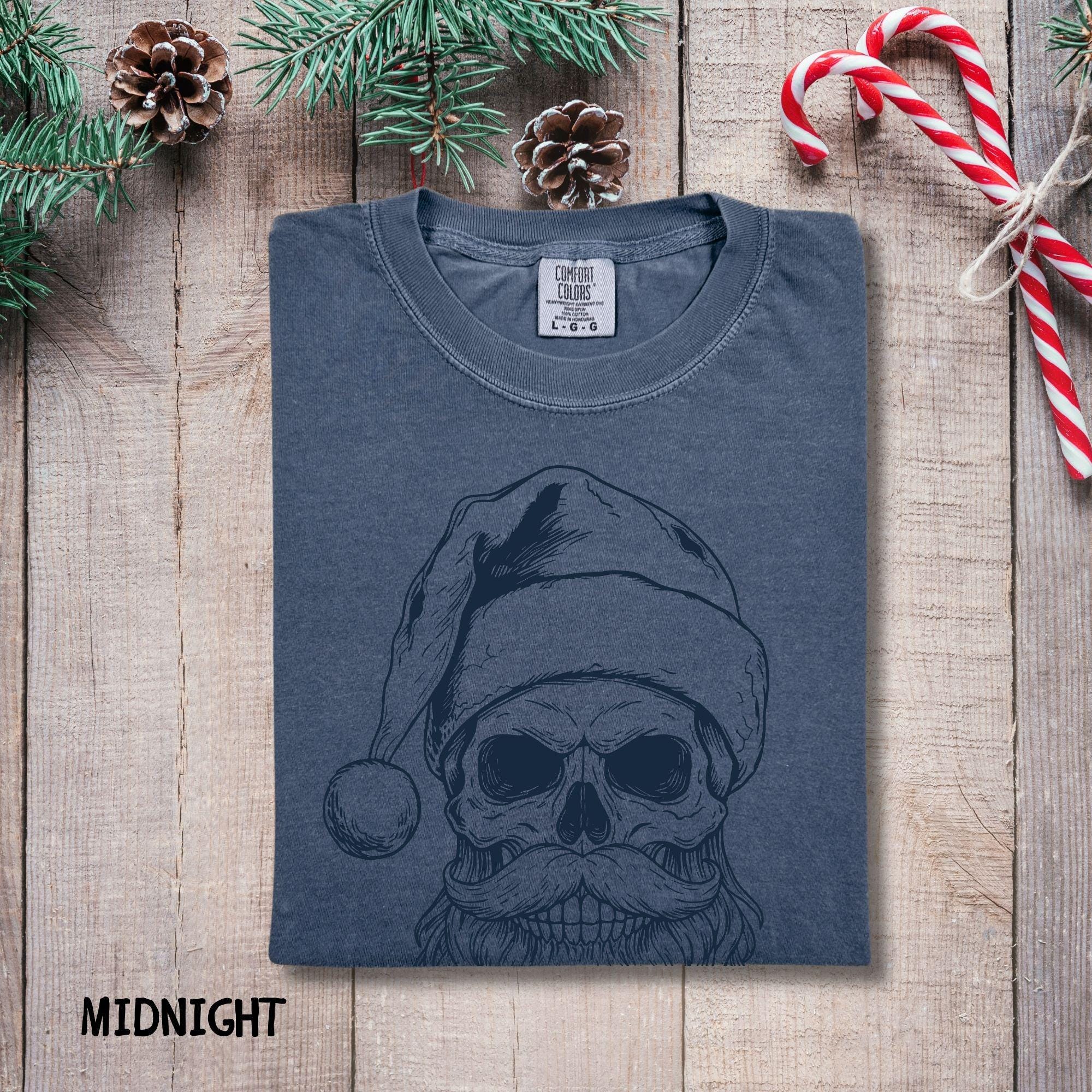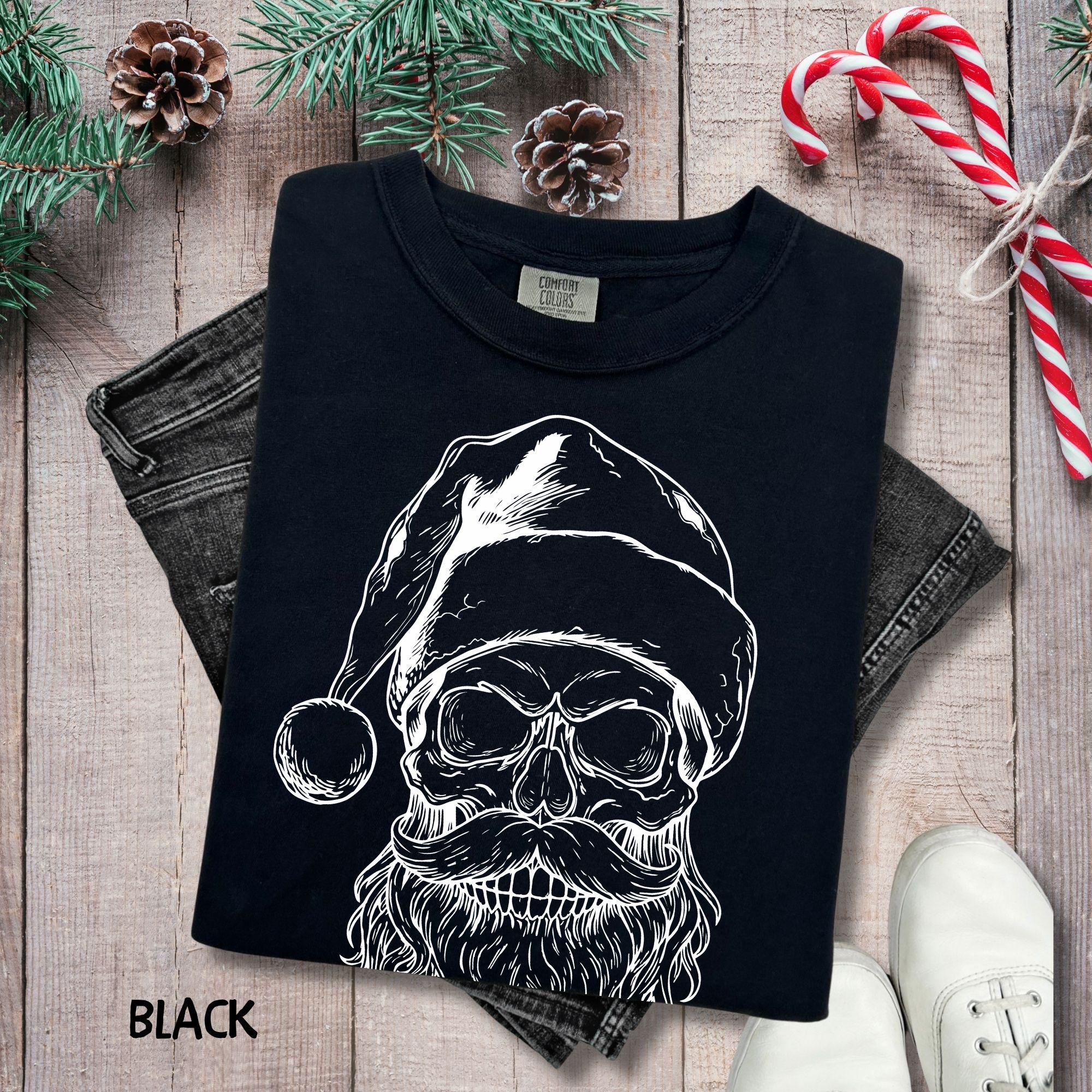 Break away from the conventional! Our Santa Skull design is the ultimate statement piece for anyone who prefers a darker take on the holidays. This premium soft-wash t-shirt is incredibly comfortable, wear it alone or layer it up like a light hoodie. The detailed line art of the bearded skull in a Santa hat makes it a perfect, unique Christmas gift. It’s more than just a tee; it’s a vibe. Pair it with jeans for a casual look or gift this unforgettable sweatshirt style shirt to the punk rocker in your life.