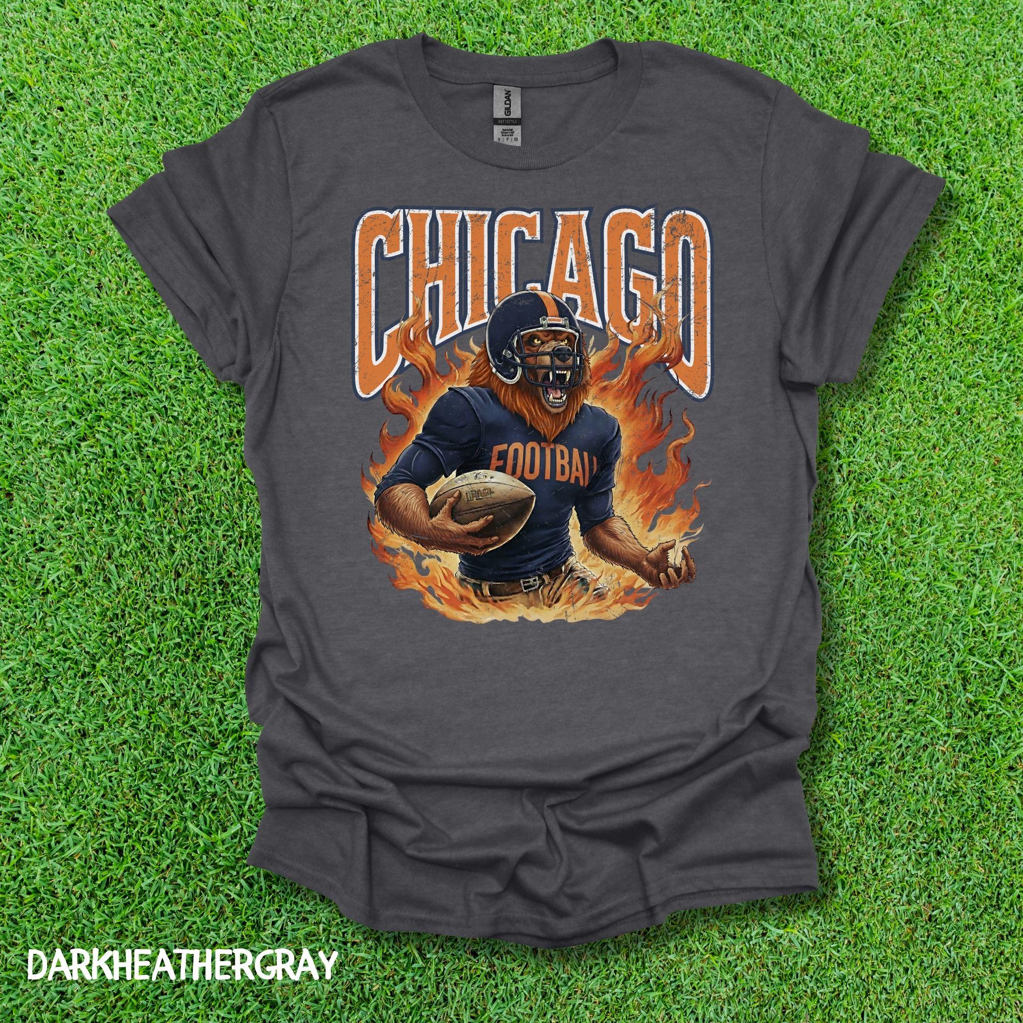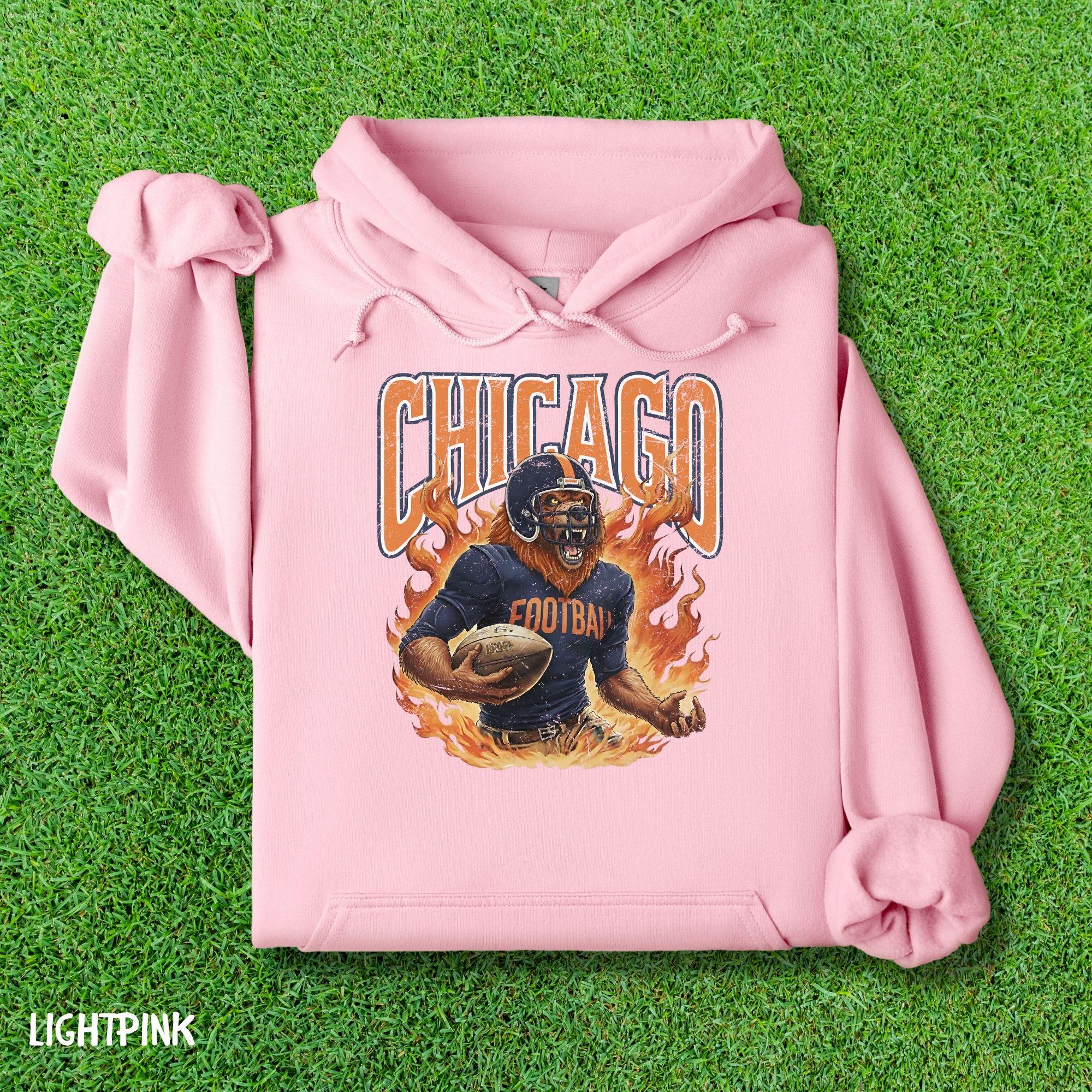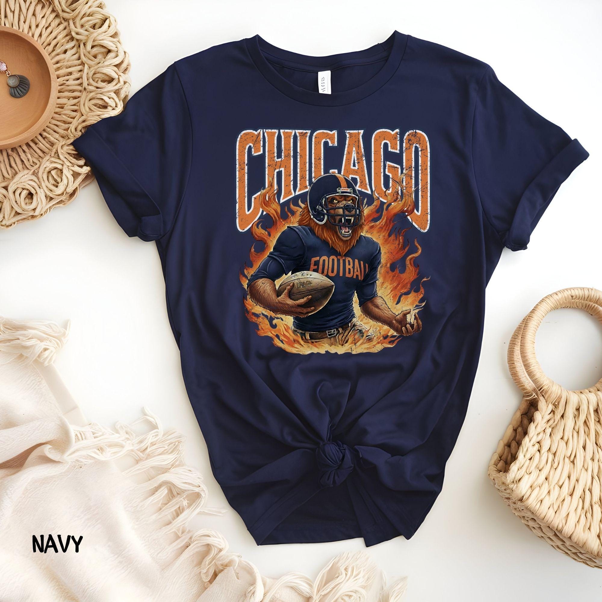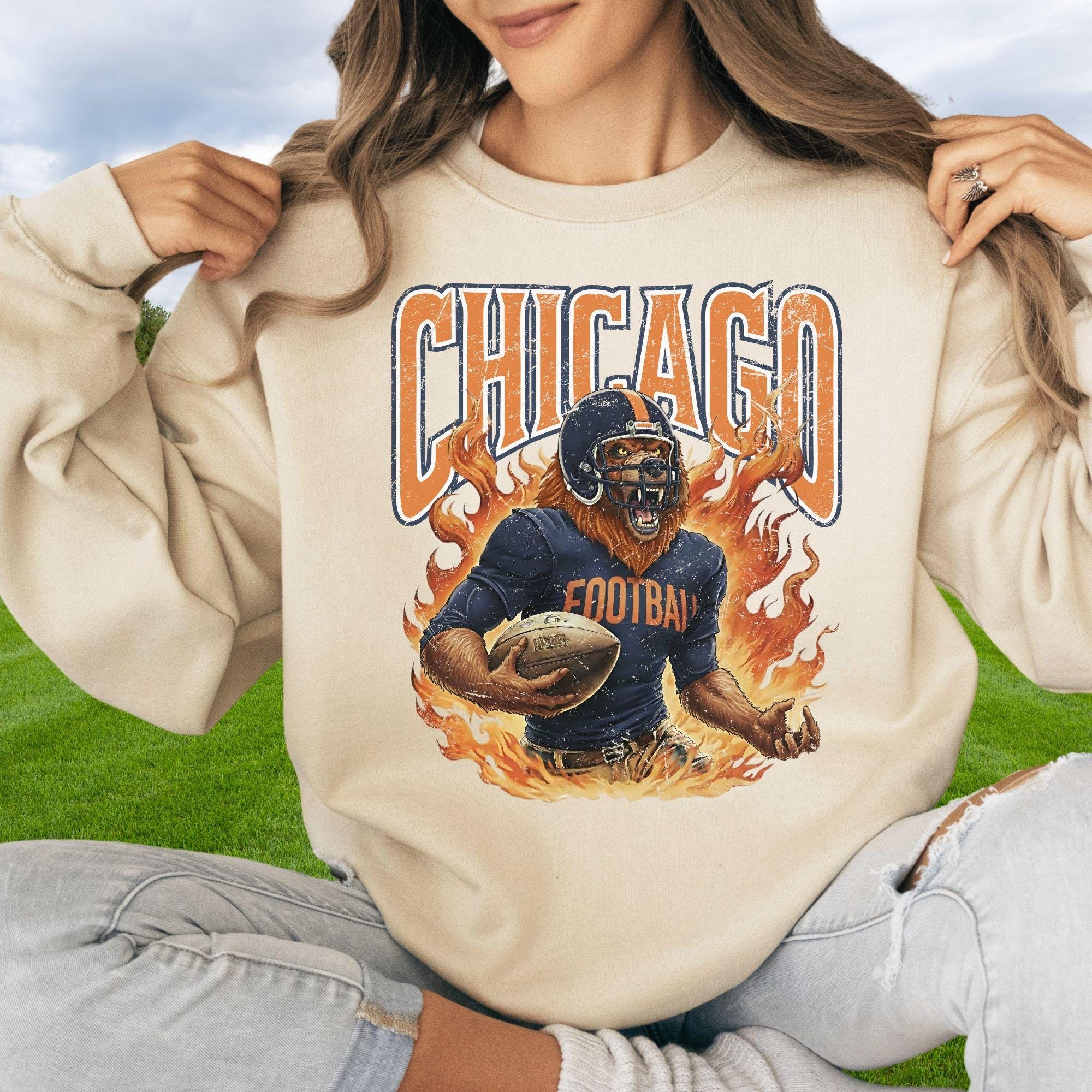 Step up your game-day style with this edgy Chicago Football graphic. Featuring a vintage distressed print of a flaming monster mascot, this design is the perfect non-official apparel for dedicated fans. Unlike mass-produced team gear, this unique hoodie and sweatshirt design offers a retro, alternative look that still captures the intense spirit of Chicago football. It's built for ultimate comfort and lasting quality, ideal for weekend wear, tailgating, or everyday casual style. Available as a shirt, t-shirt, or cozy layer.