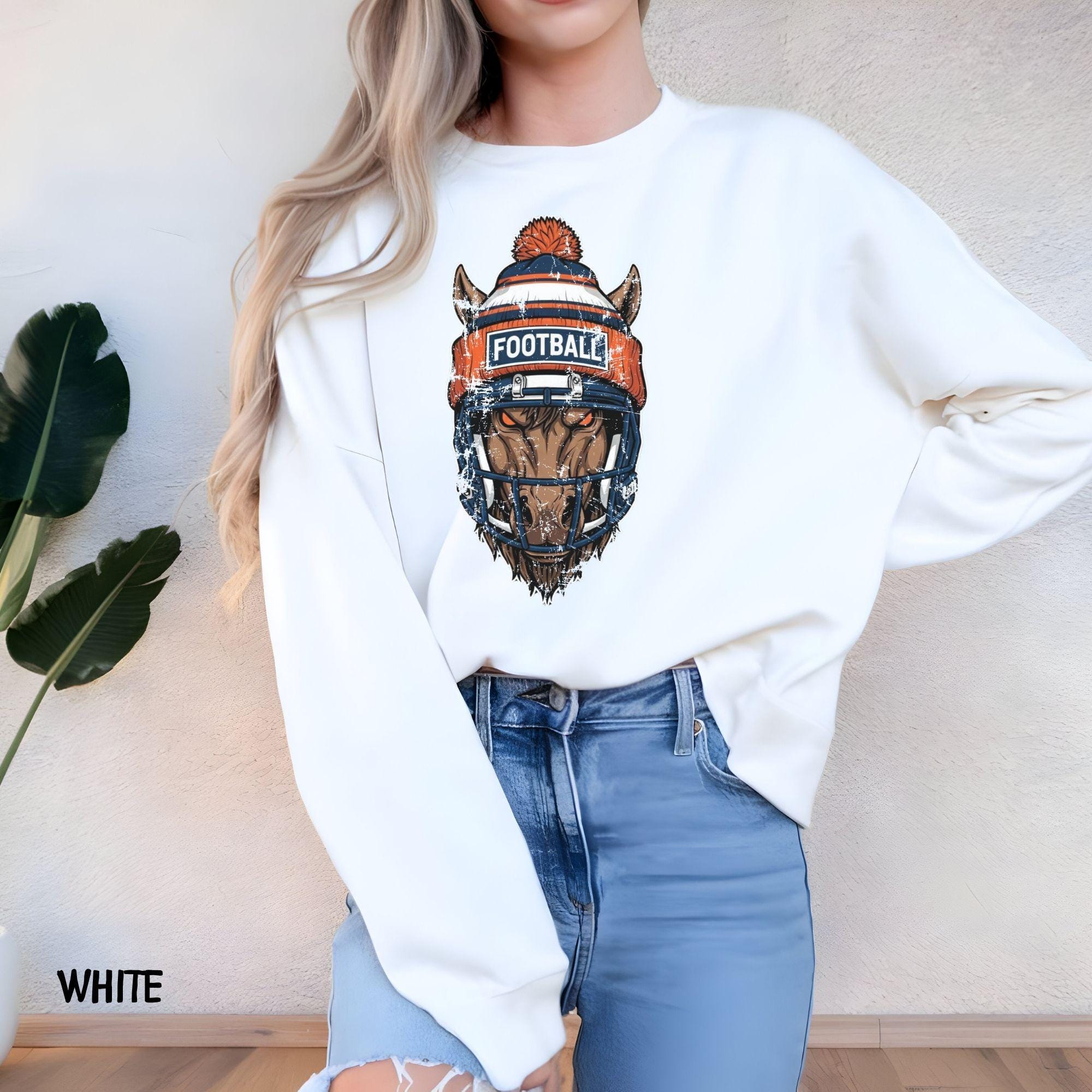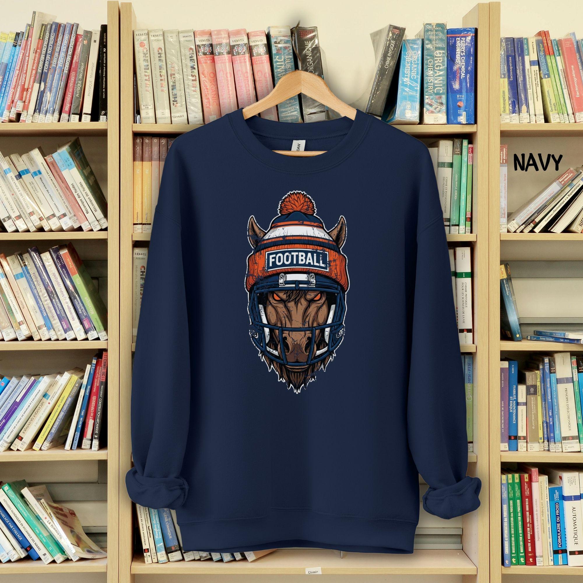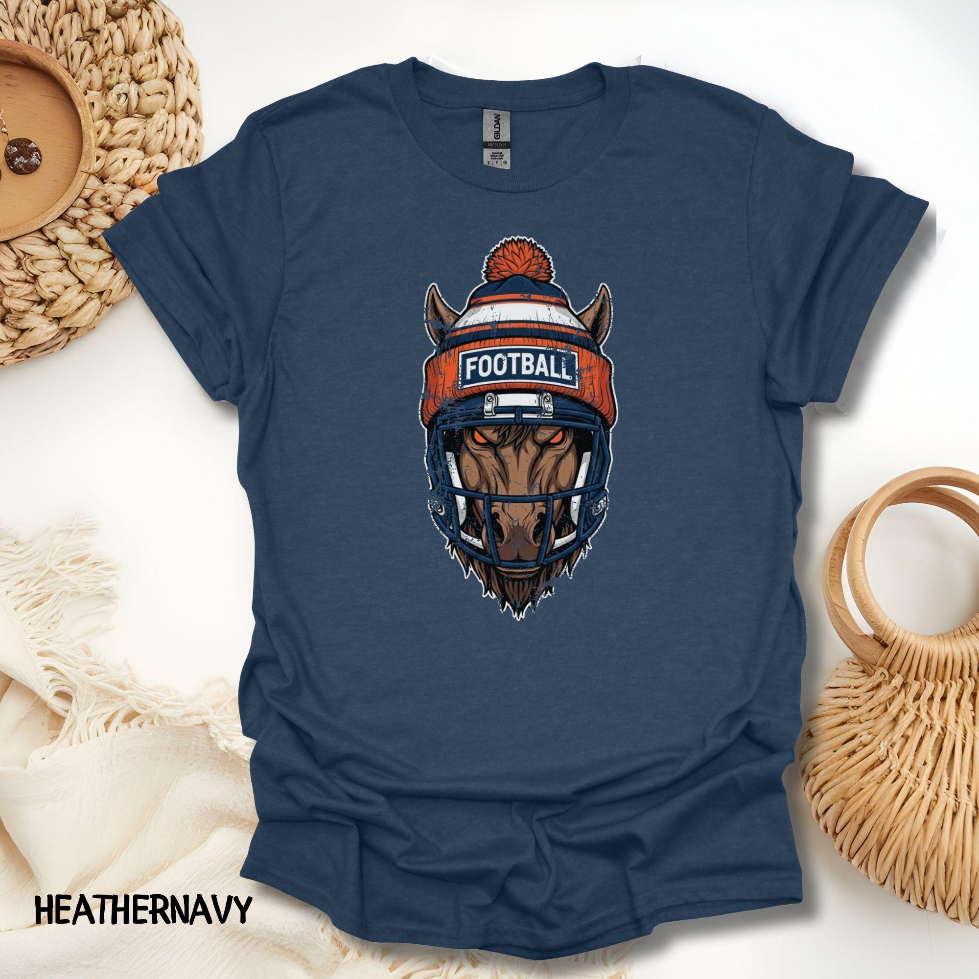 Discover the perfect vintage-style Denver football t-shirt, featuring a tough horse mascot graphic. This unisex fit tee is DTG printed on a premium Gildan 64000 Softstyle shirt, offering both superior comfort and a standout retro design for any Colorado football fan.