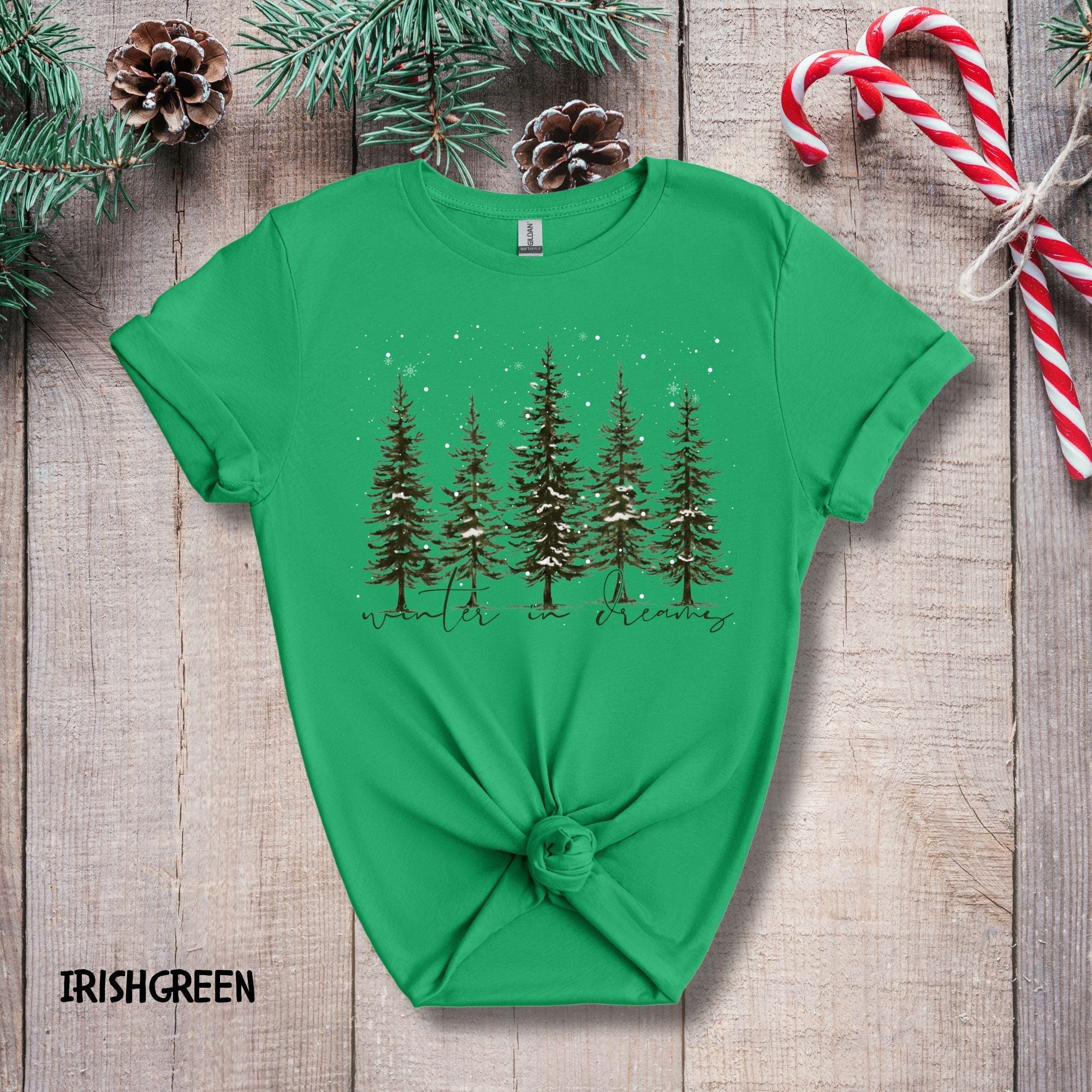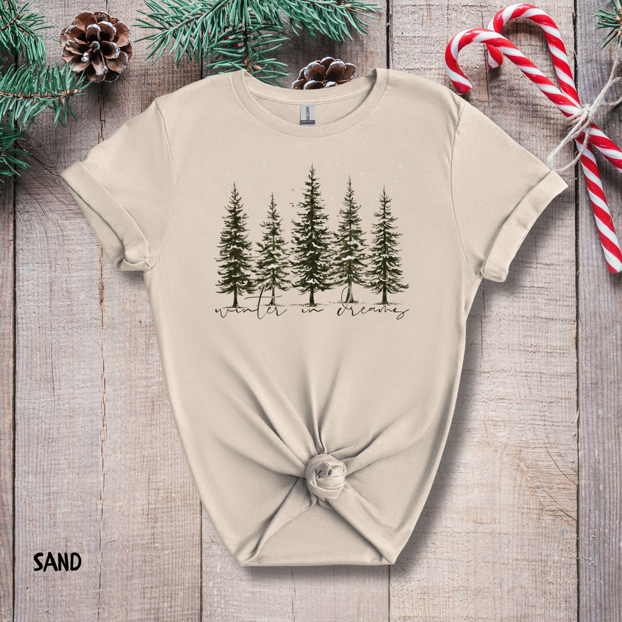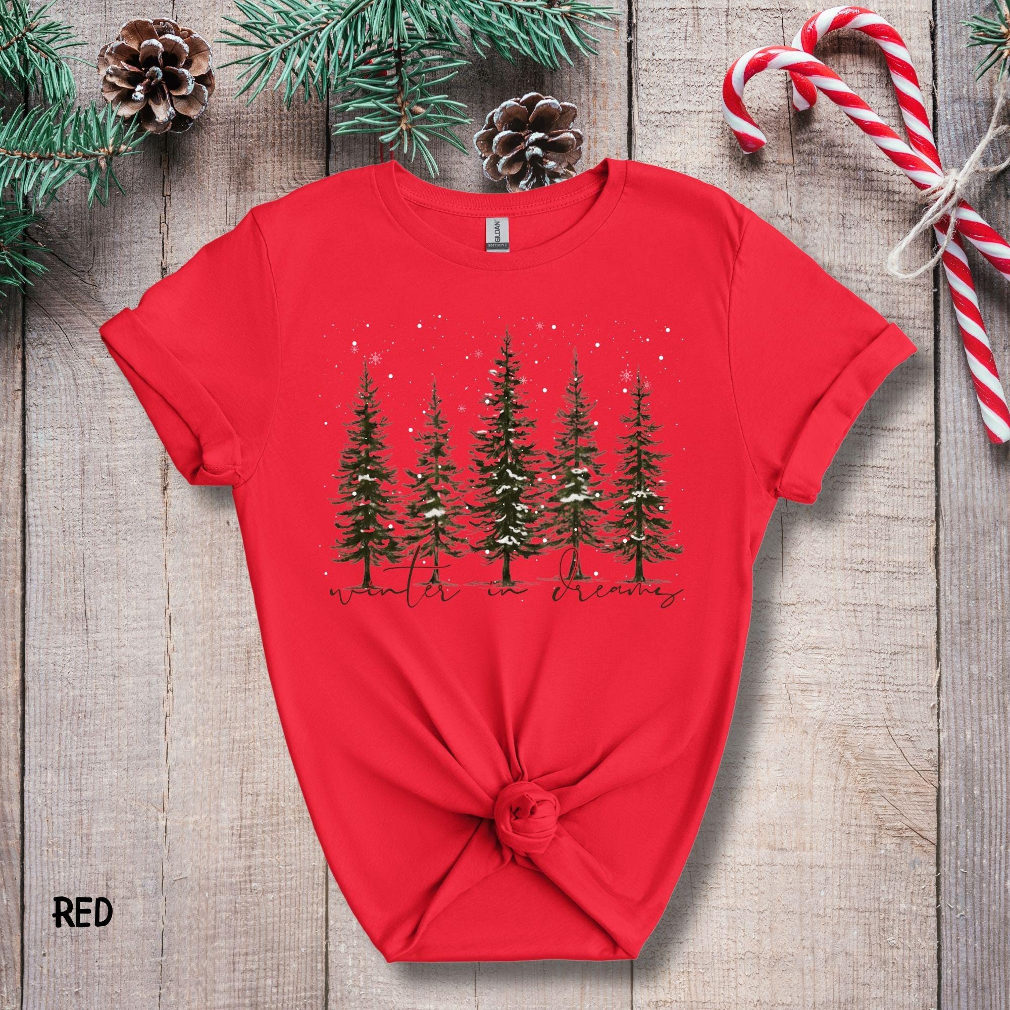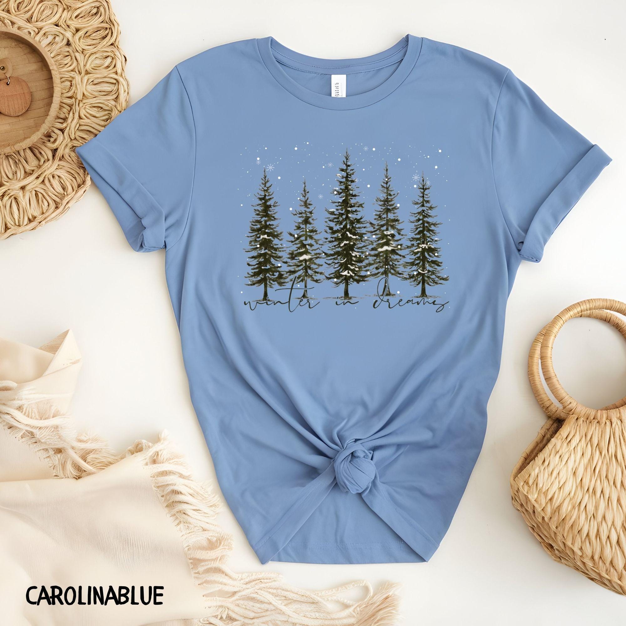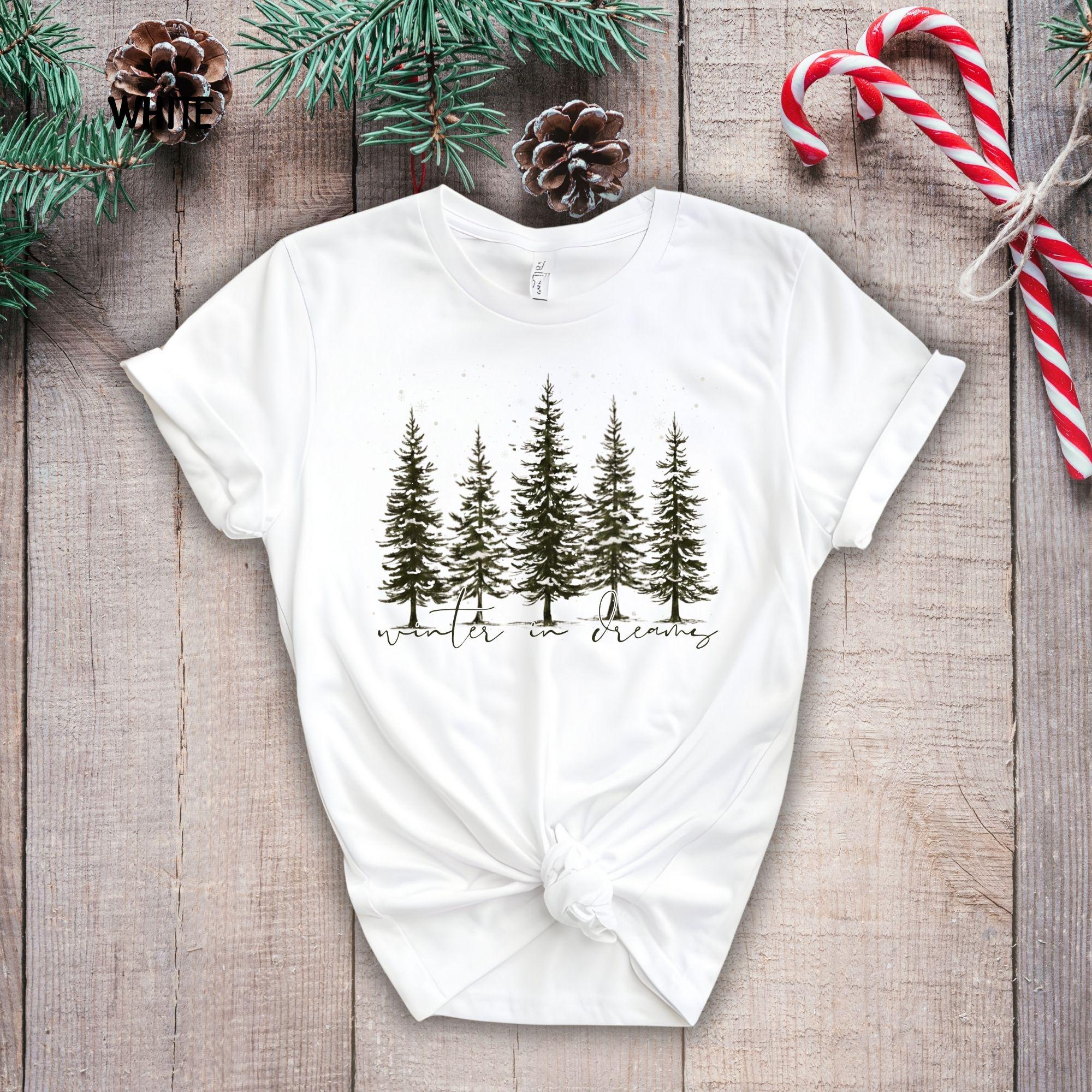 Retro Winter Forest Graphic T-Shirt made with the ultra-soft Gildan 64000 ringspun cotton tee. This shirt features a durable, high-quality DTG print and classic unisex fit, making it a perfect gift. Pair it with one of our cozy sweatshirt options for maximum winter comfort.