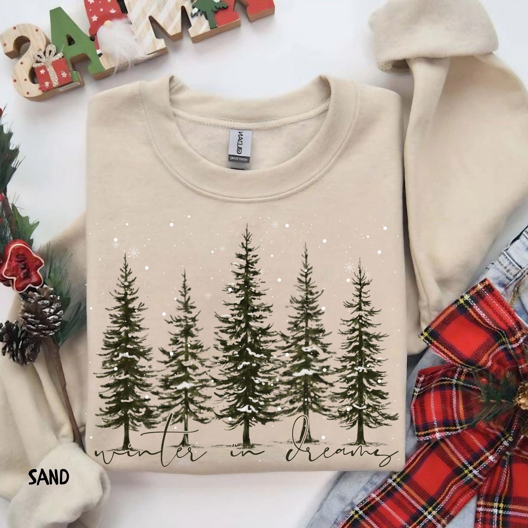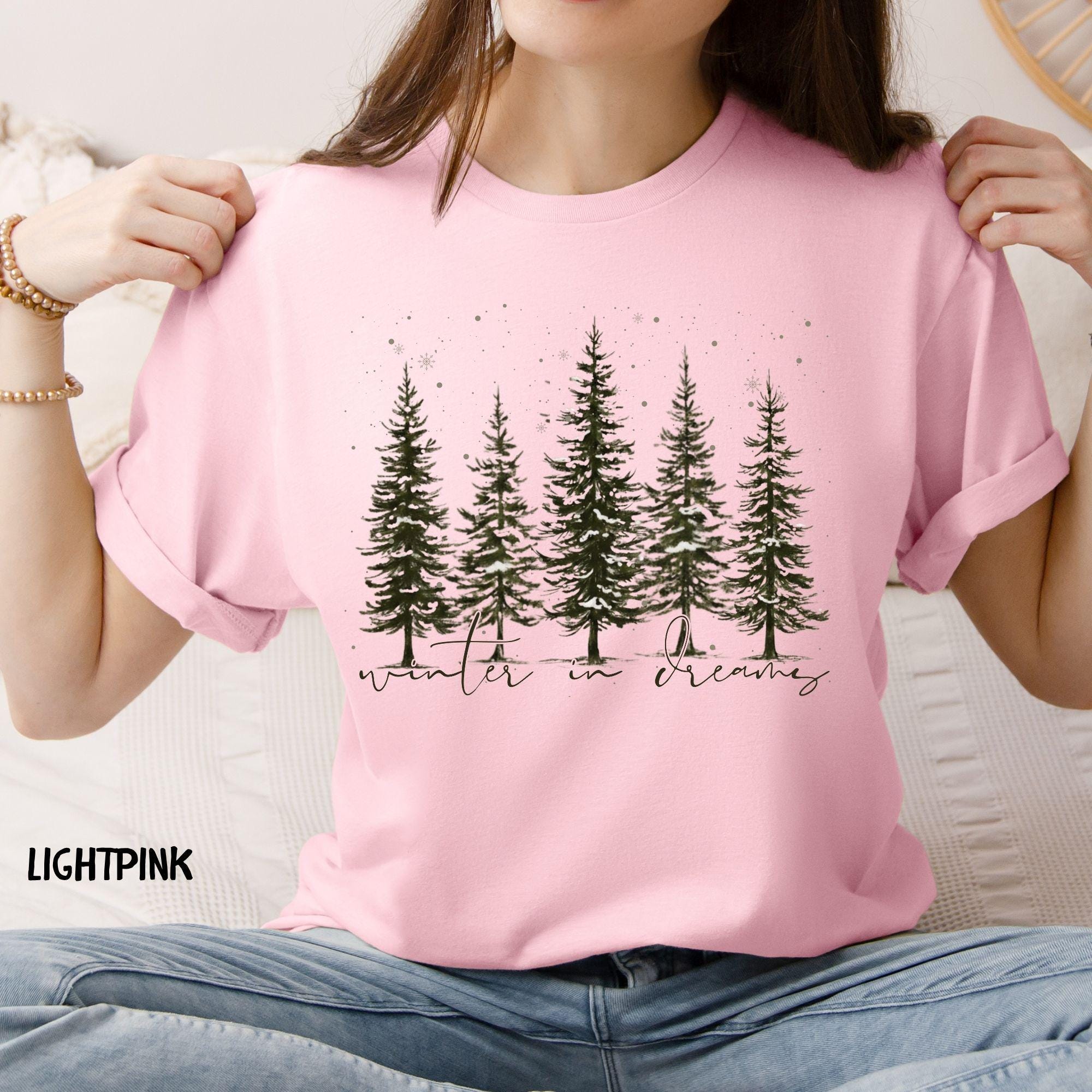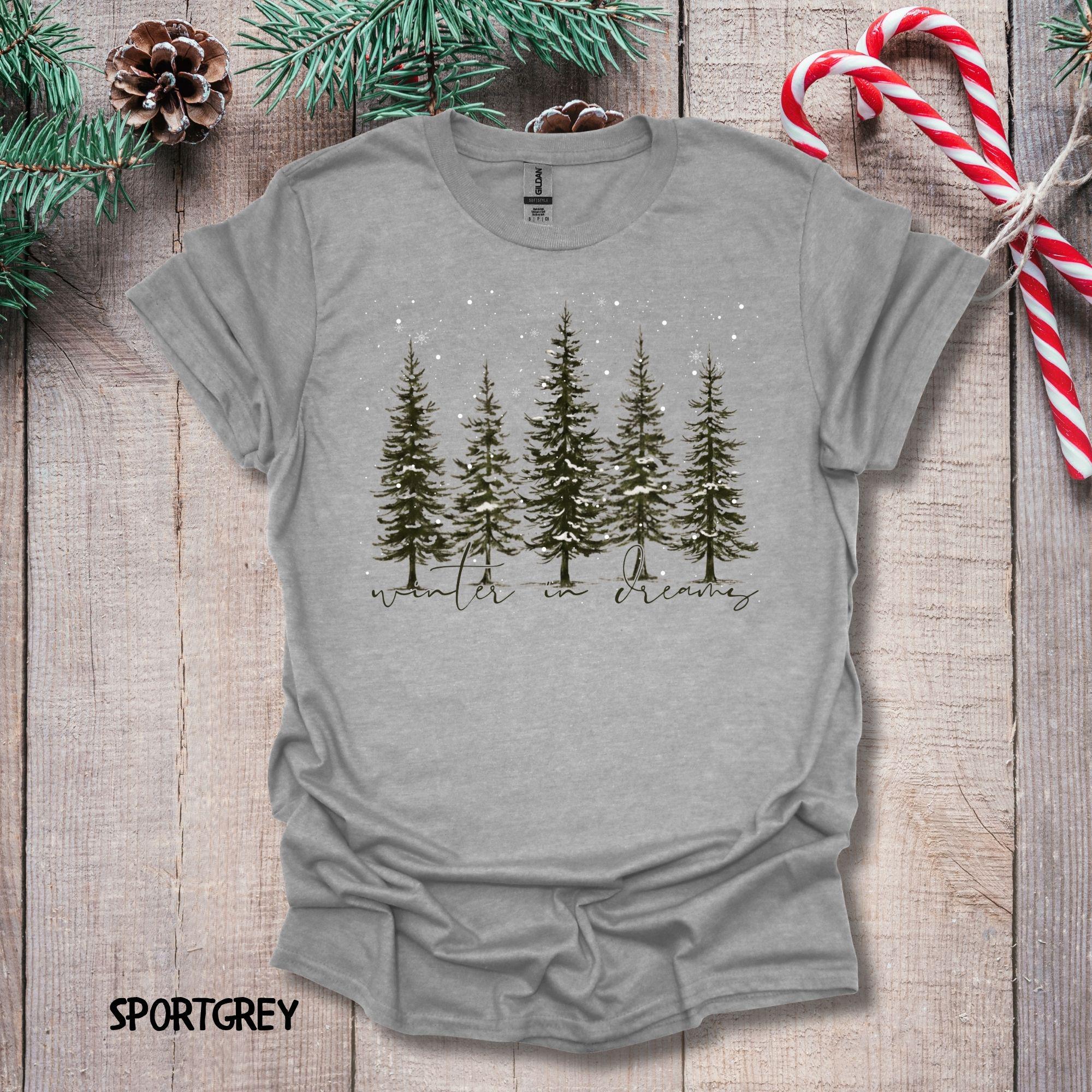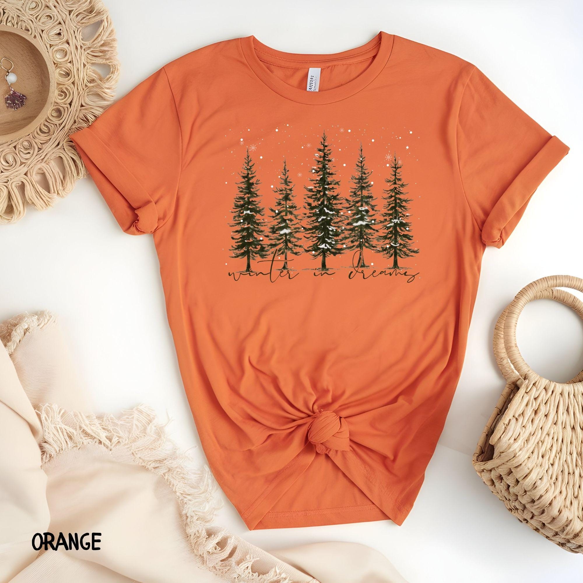 Retro Winter Forest Graphic T-Shirt made with the ultra-soft Gildan 64000 ringspun cotton tee. This shirt features a durable, high-quality DTG print and classic unisex fit, making it a perfect gift. Pair it with one of our cozy sweatshirt options for maximum winter comfort.