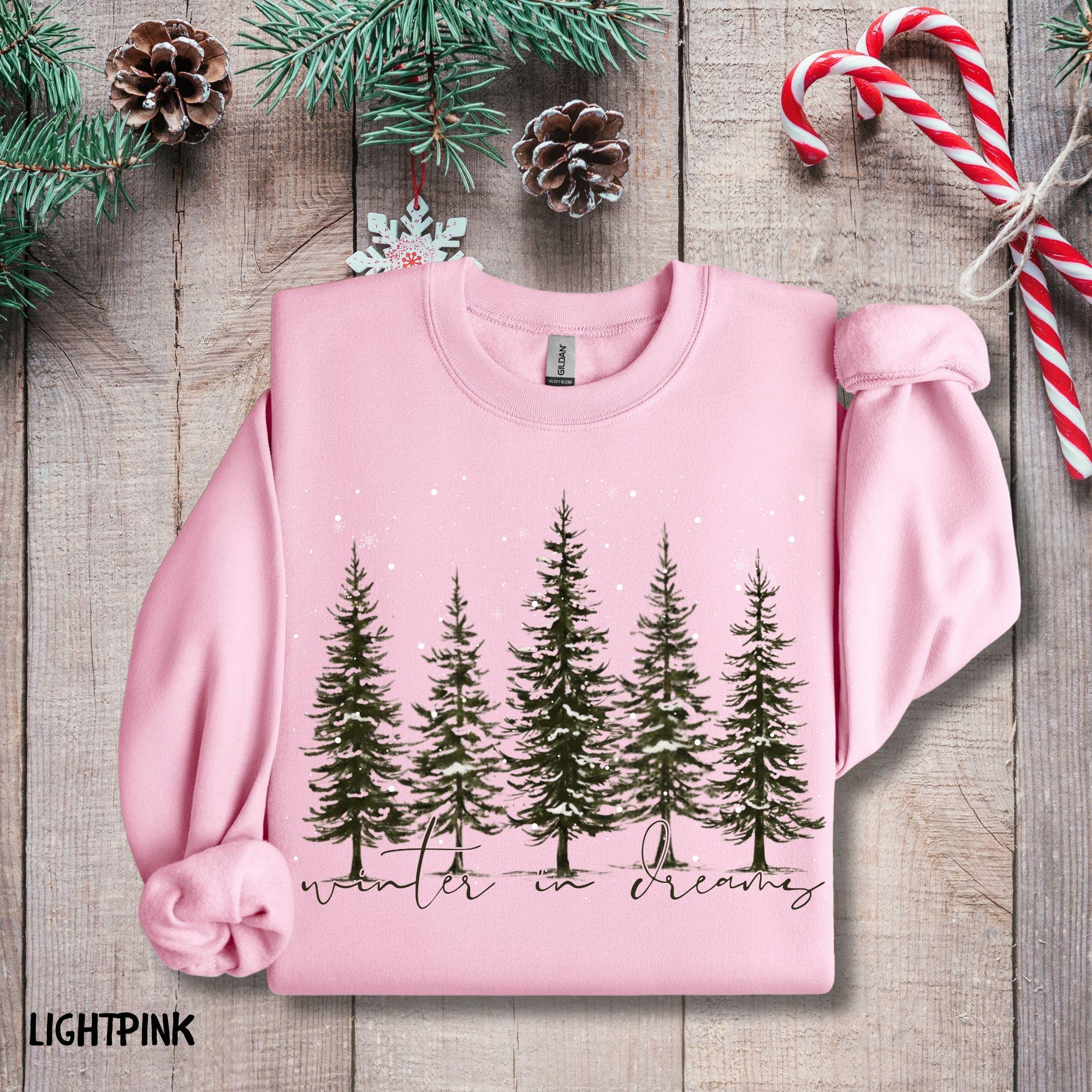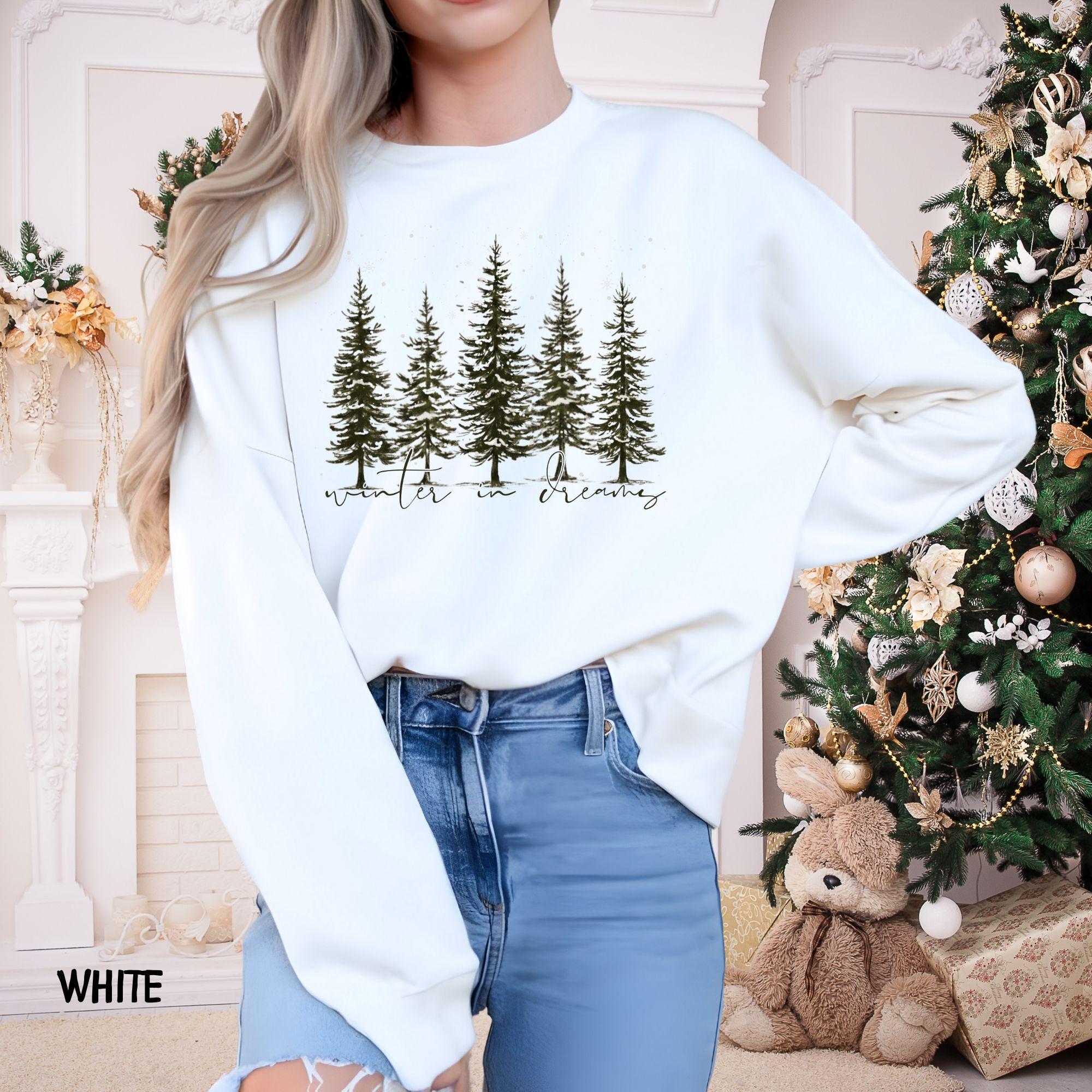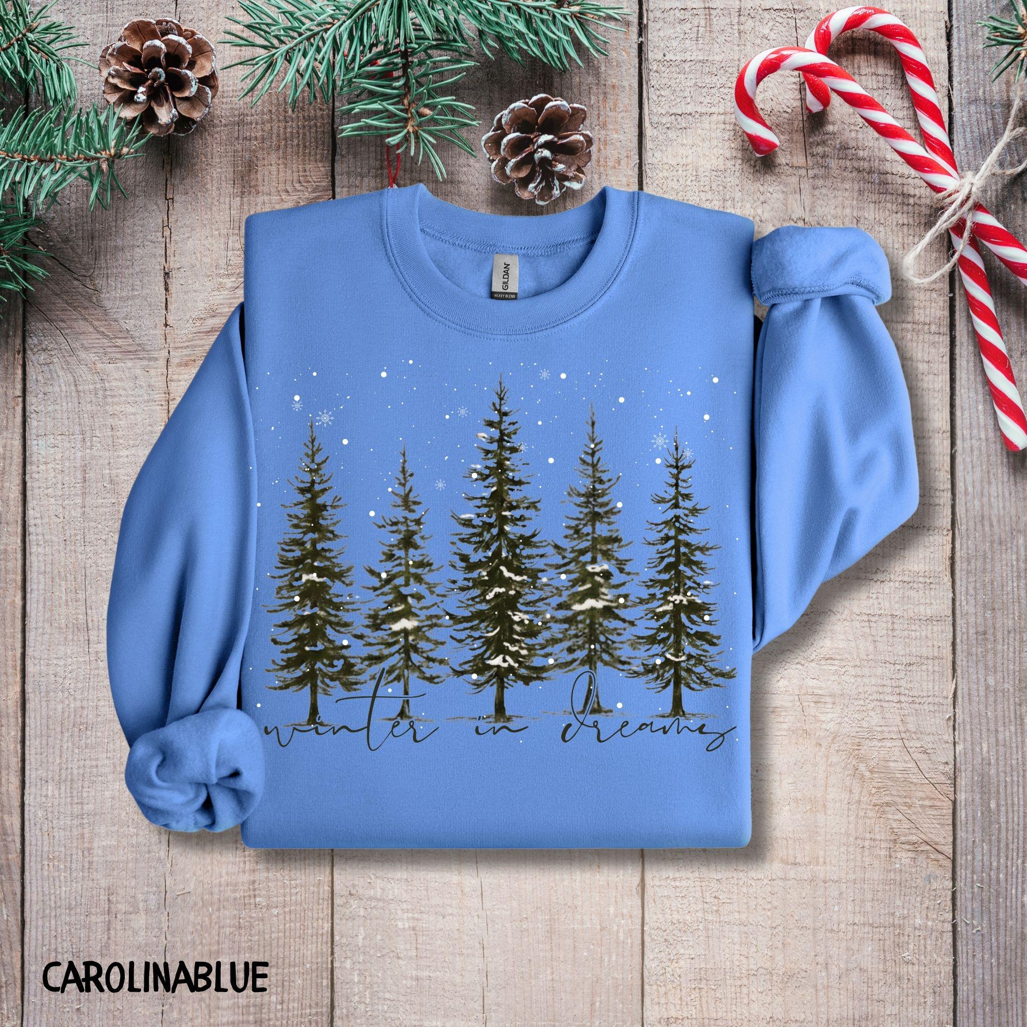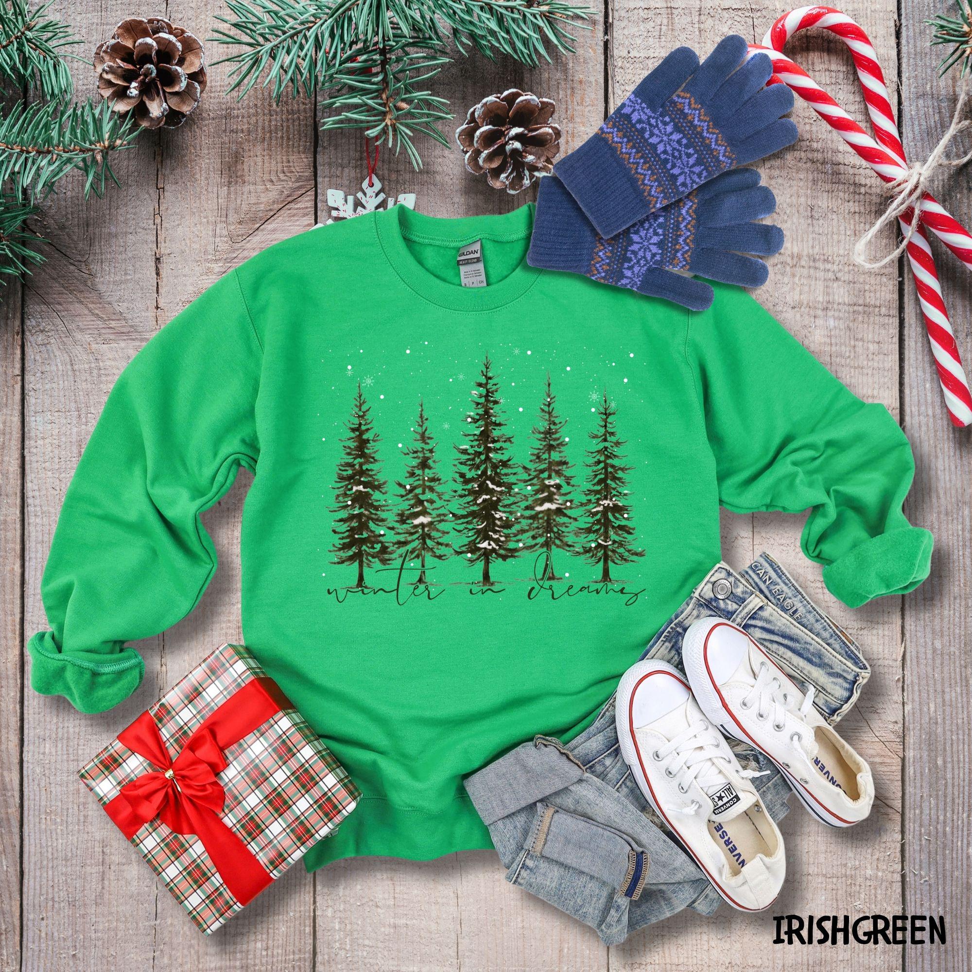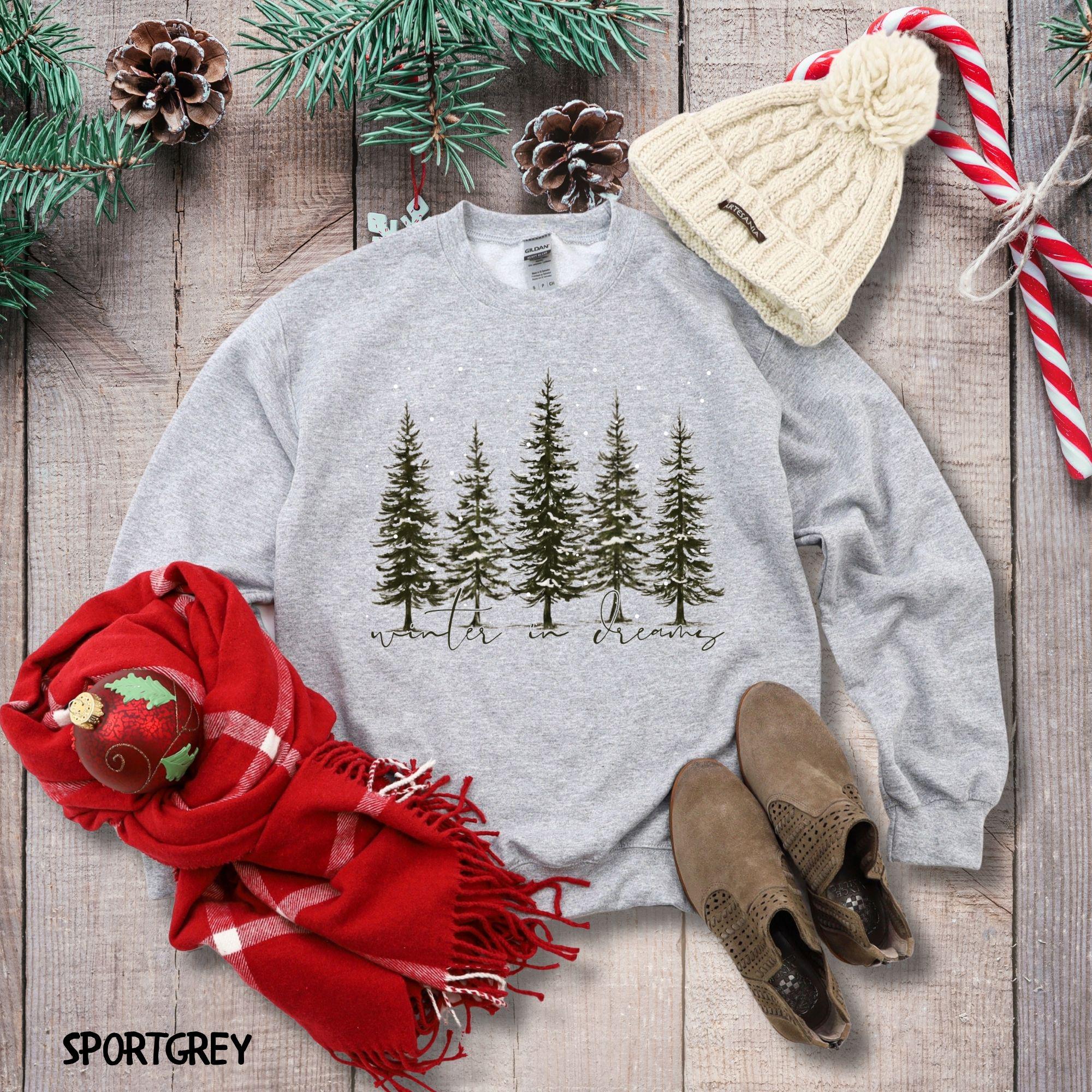 Retro Winter Forest Graphic T-Shirt made with the ultra-soft Gildan 64000 ringspun cotton tee. This shirt features a durable, high-quality DTG print and classic unisex fit, making it a perfect gift. Pair it with one of our cozy sweatshirt options for maximum winter comfort.