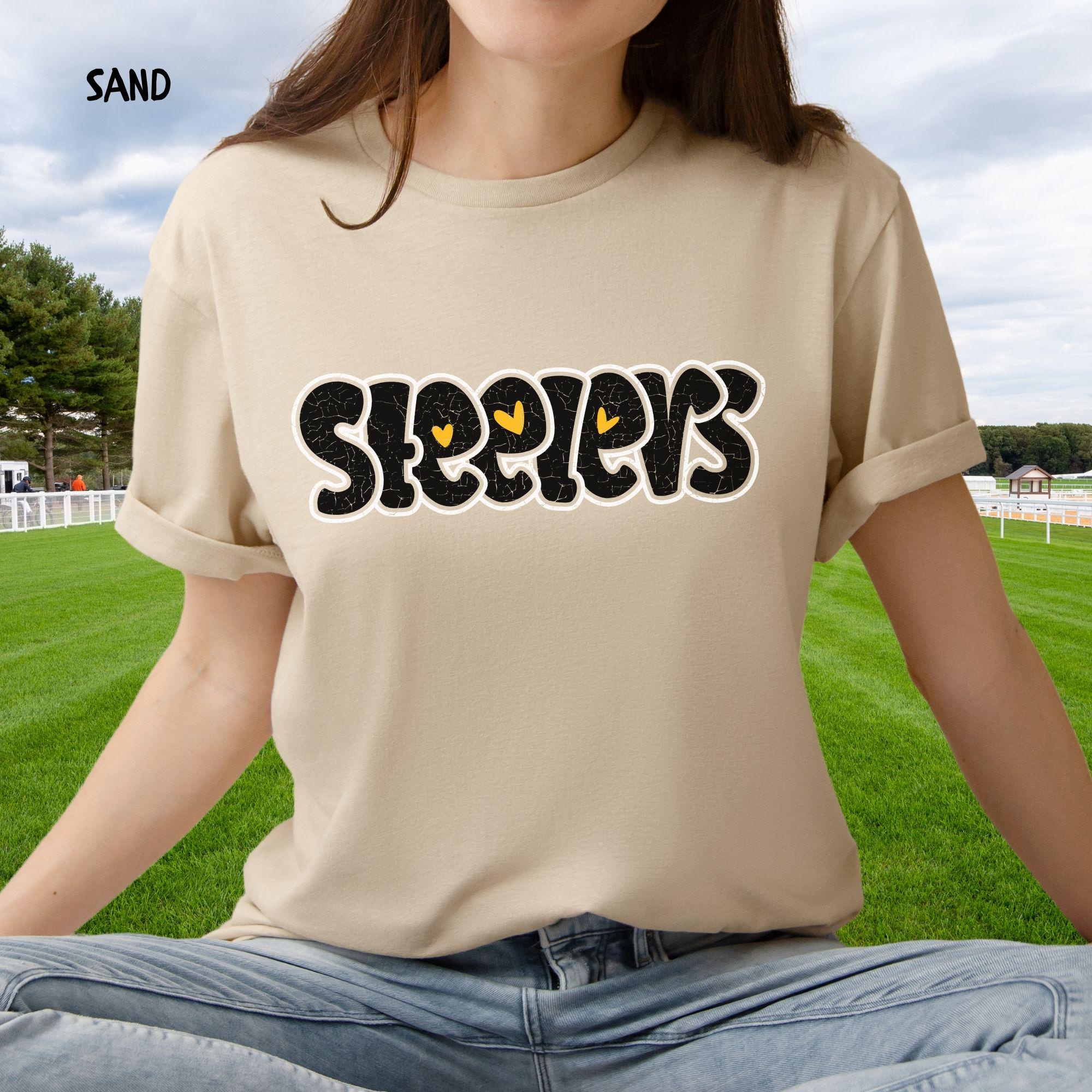 Discover your new favorite game day essential with this Retro Pittsburgh Football Graphic T-Shirt. Made from ultra-soft Gildan 64000 fabric, this unisex tee features a unique, 70s-inspired "Steelers" design, professionally applied with a durable DTG print. It's the perfect way for fans to show their Steel City pride with a stylish, vintage twist. Ideal for tailgating, watching the game, or as a unique gift. • Premium Soft Fabric: Crafted from 100% ring-spun cotton (heather colors contain polyester) for a lightweight and comfortable feel. • Durable Graphic Print: Features a high-quality, eco-friendly ink print designed to last without cracking or fading. • Classic Unisex Fit: A versatile, semi-fitted cut that looks great on everyone. Check our size chart for your perfect fit. Explore more of our unique graphic apparel here: [Mağaza Linki]