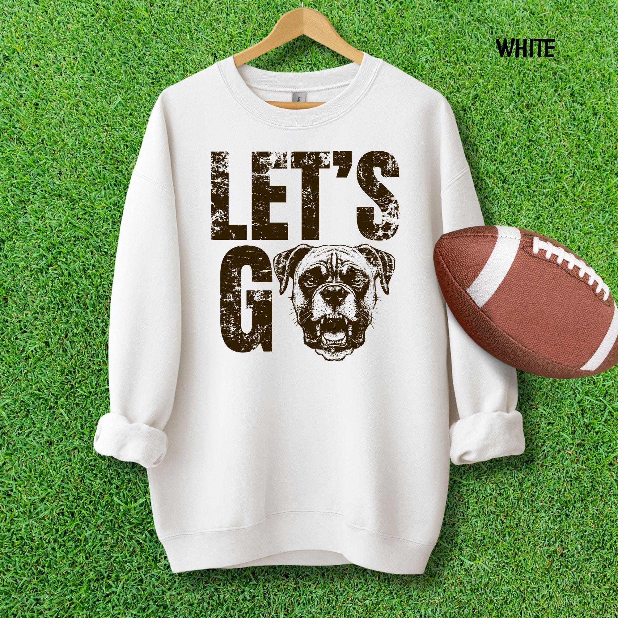 • High-Energy Design: Features an aggressive, stylized dog mascot and "Let's Go" slogan for maximum motivation. • Team Color Inspired: Printed in a striking Brown and Orange combination, perfect for sports fan gatherings. • The Ultimate Dog Owner Gift: A unique and spirited way to celebrate a love for dogs and gameday excitement. • Soft & Durable: Made with premium cotton (or blend) for all-day comfort and long-lasting print quality.