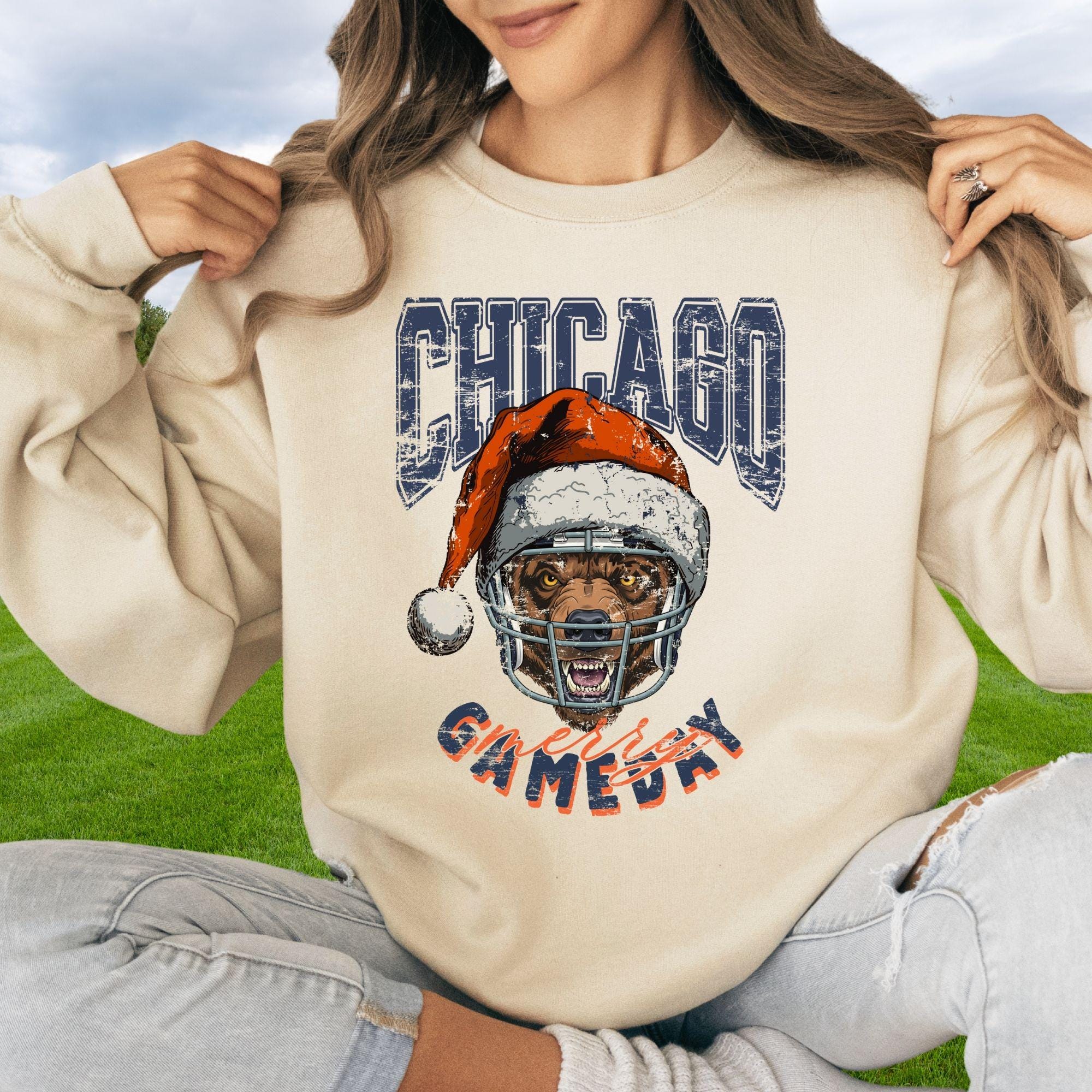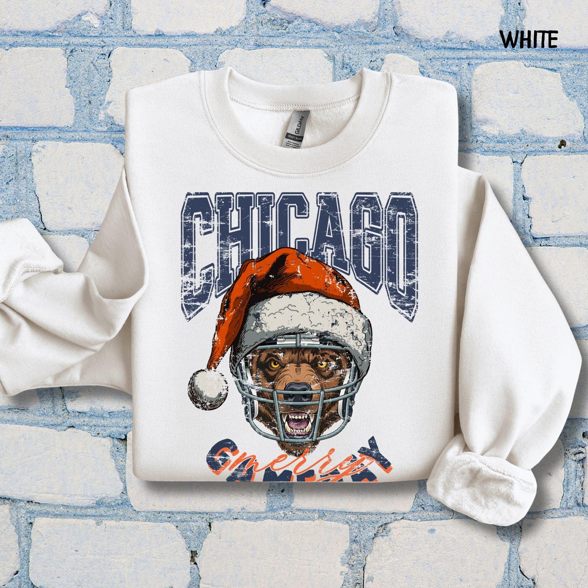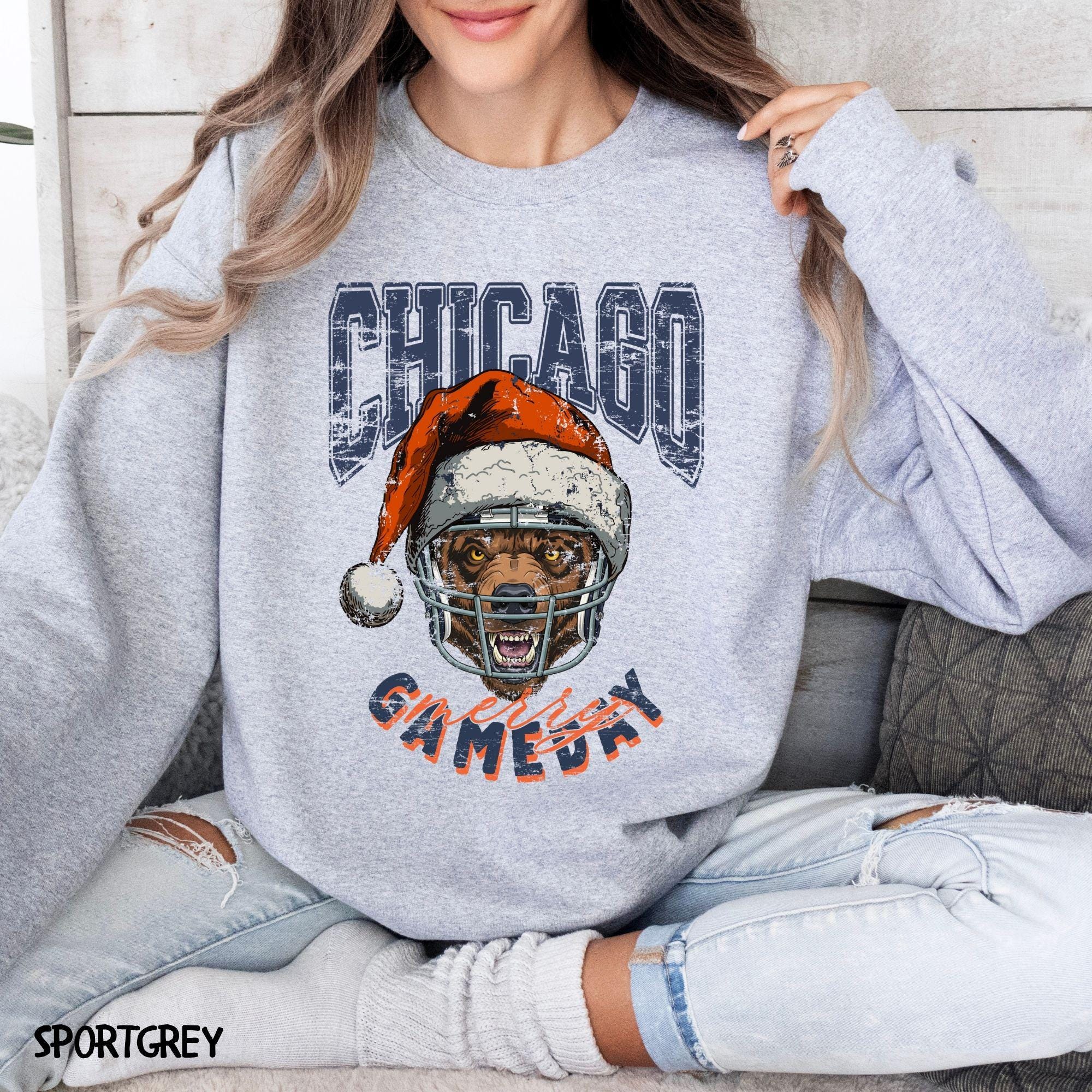 Show your Chicago pride this season with this vintage-style football sweatshirt and t-shirt. Featuring a minimalist, collegiate-inspired design, this apparel is the perfect way to represent your team on game day or at a holiday party. Whether you're braving the cold at Soldier Field or looking for the perfect Christmas gift for a fan, we have you covered. Choose between our cozy crewneck sweatshirt or our classic lightweight tee.