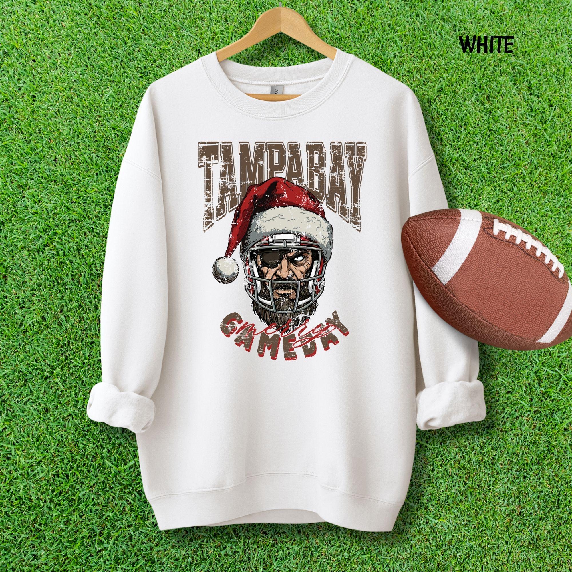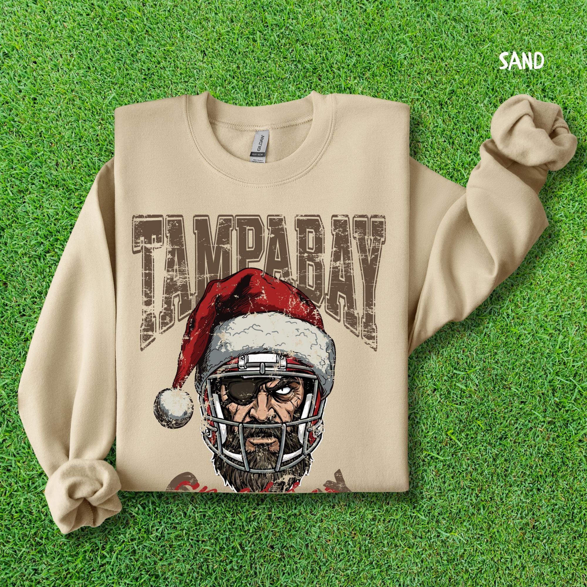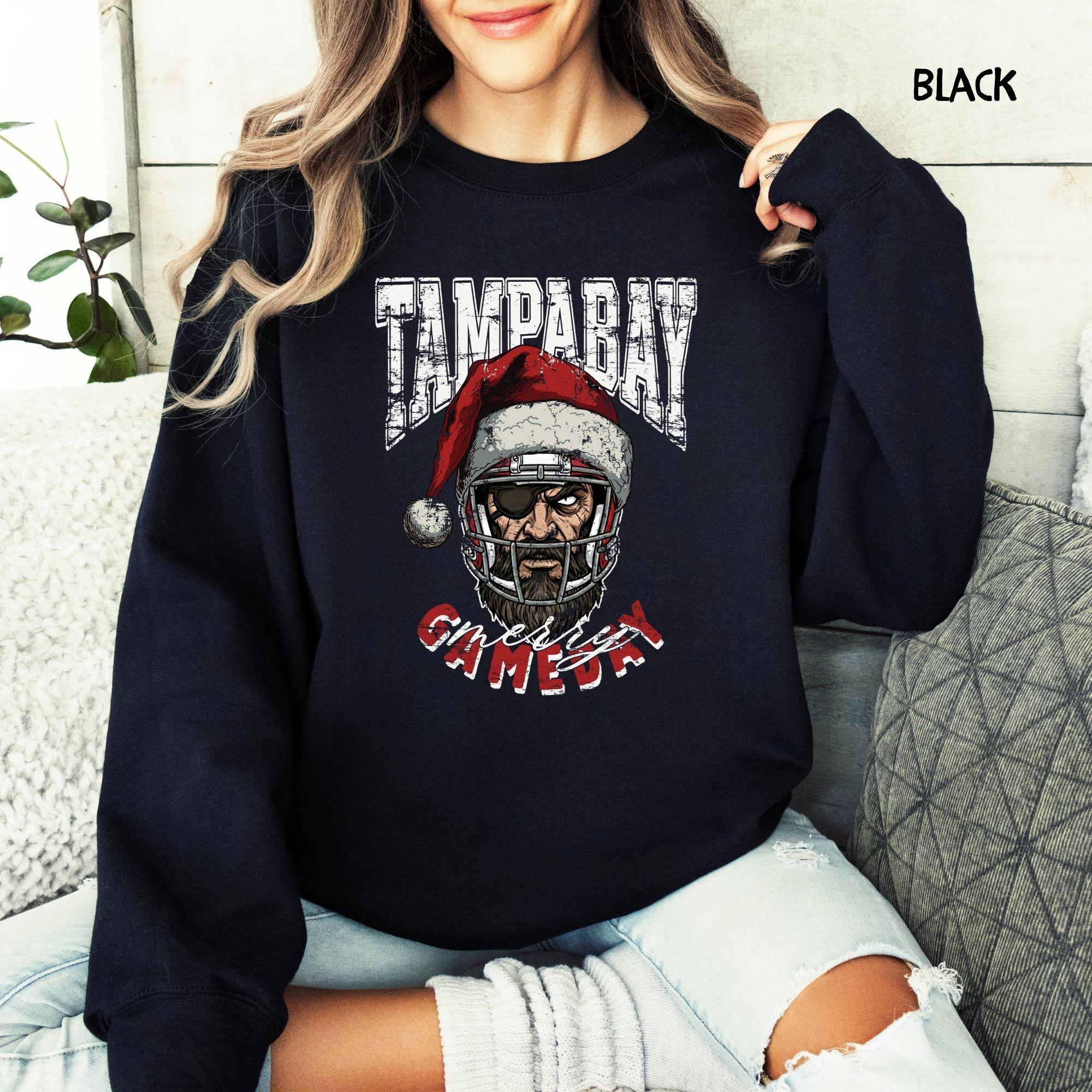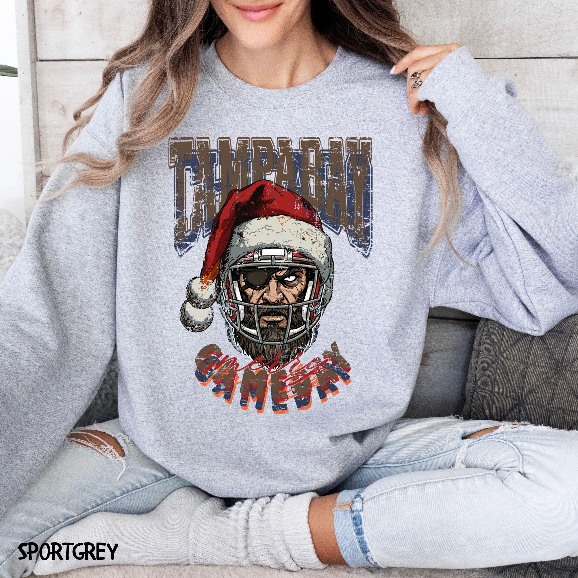 Celebrate game day and the holidays with this unique vintage pirate Christmas football tee, the perfect cozy gift for any dedicated Tampa fan. This exclusive graphic shirt merges the excitement of the football season with festive Christmas graphics, offering fans a unique way to display their team pride during the winter months.