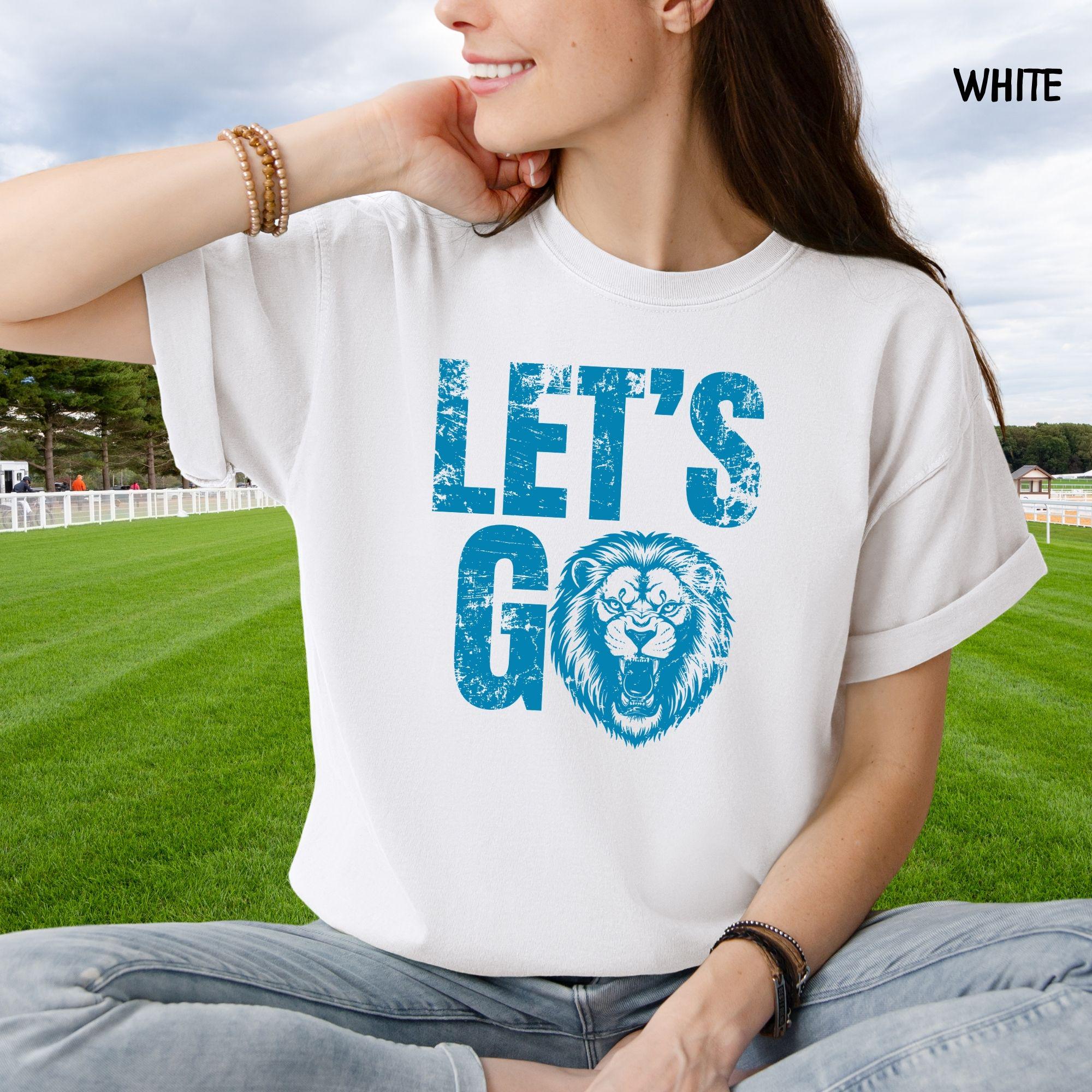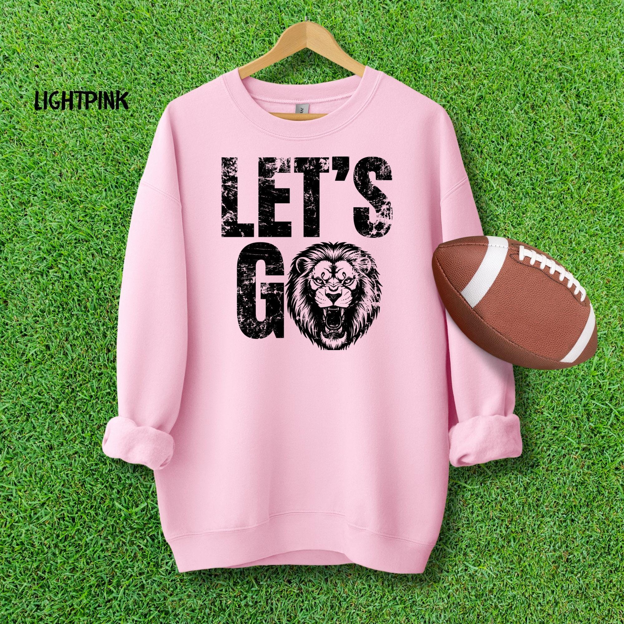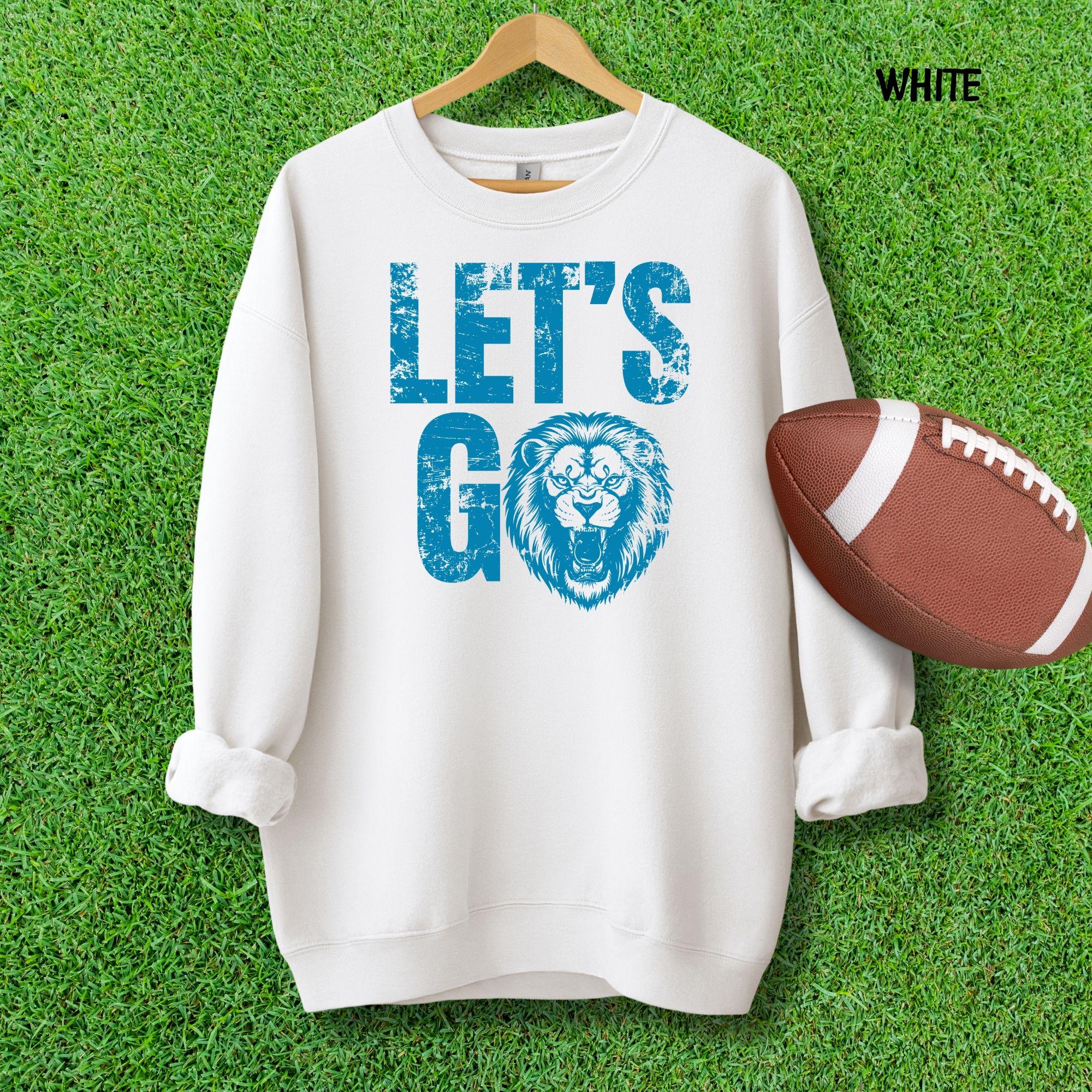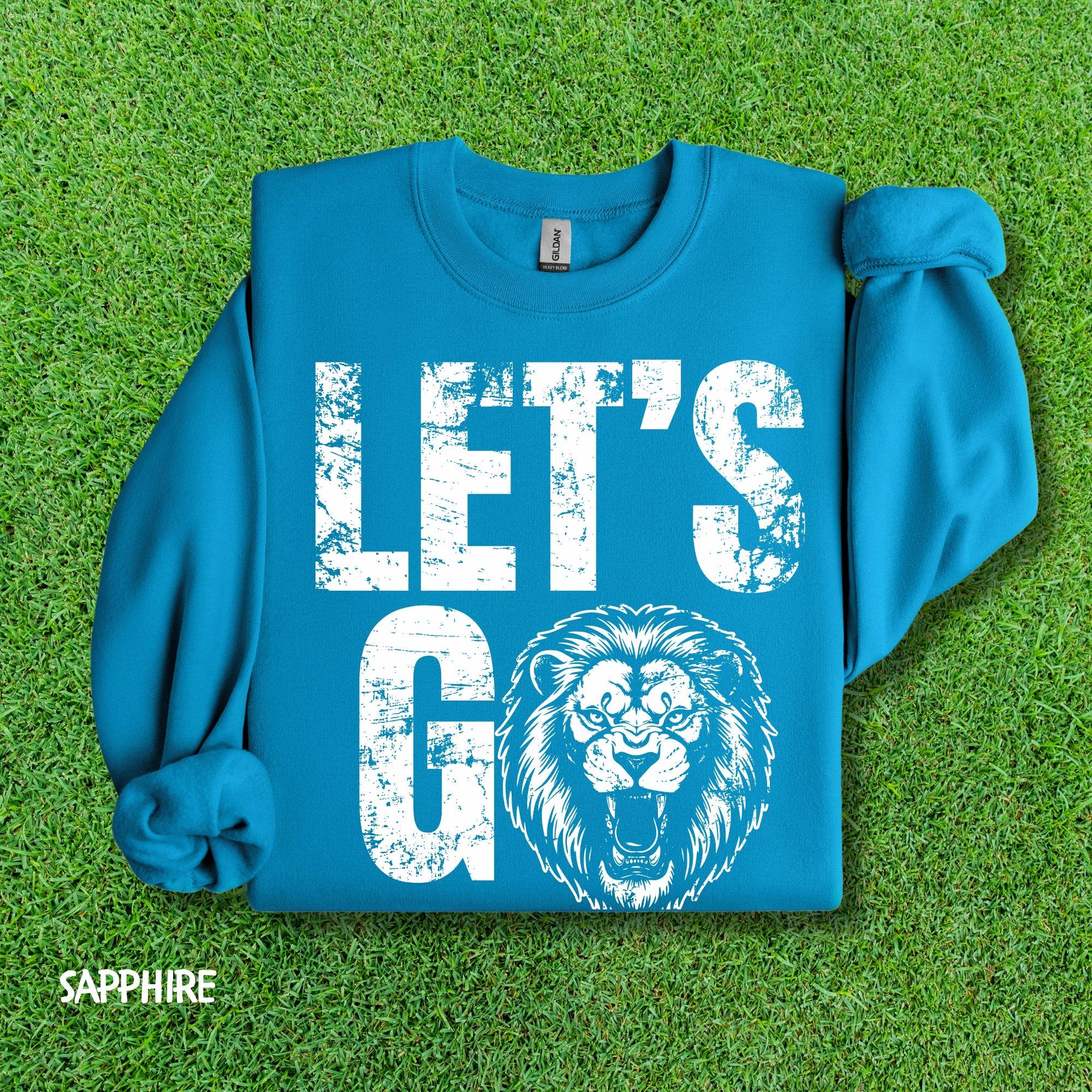 Show your Motor City pride with this vintage-style Detroit Football Game Day shirt, a cozy sweatshirt or t-shirt perfect for cheering on the team all season long. The Roaring Mascot Detroit Football Tee is designed for the ultimate fan who appreciates retro graphic apparel and hometown pride. This exclusive garment captures the energetic spirit of a classic game day, featuring the popular "Let's Go" phrase and a cool distressed finish that gives it a timeless vintage vibe. Our design strategy focuses on creating unique fan wear that stands out from typical merchandise, making it a perfect gift for any devoted football lover. The lightweight t-shirt and the super-soft crewneck sweatshirt options ensure comfort whether you're tailgating on Sunday, watching the game at home, or running errands in the Motor City. We use premium print techniques to ensure the retro graphic remains vibrant, giving you a durable, quality shirt that will last for many football seasons to come. This essential piece is crucial for building a fan wardrobe that speaks to both quality and enduring team spirit.