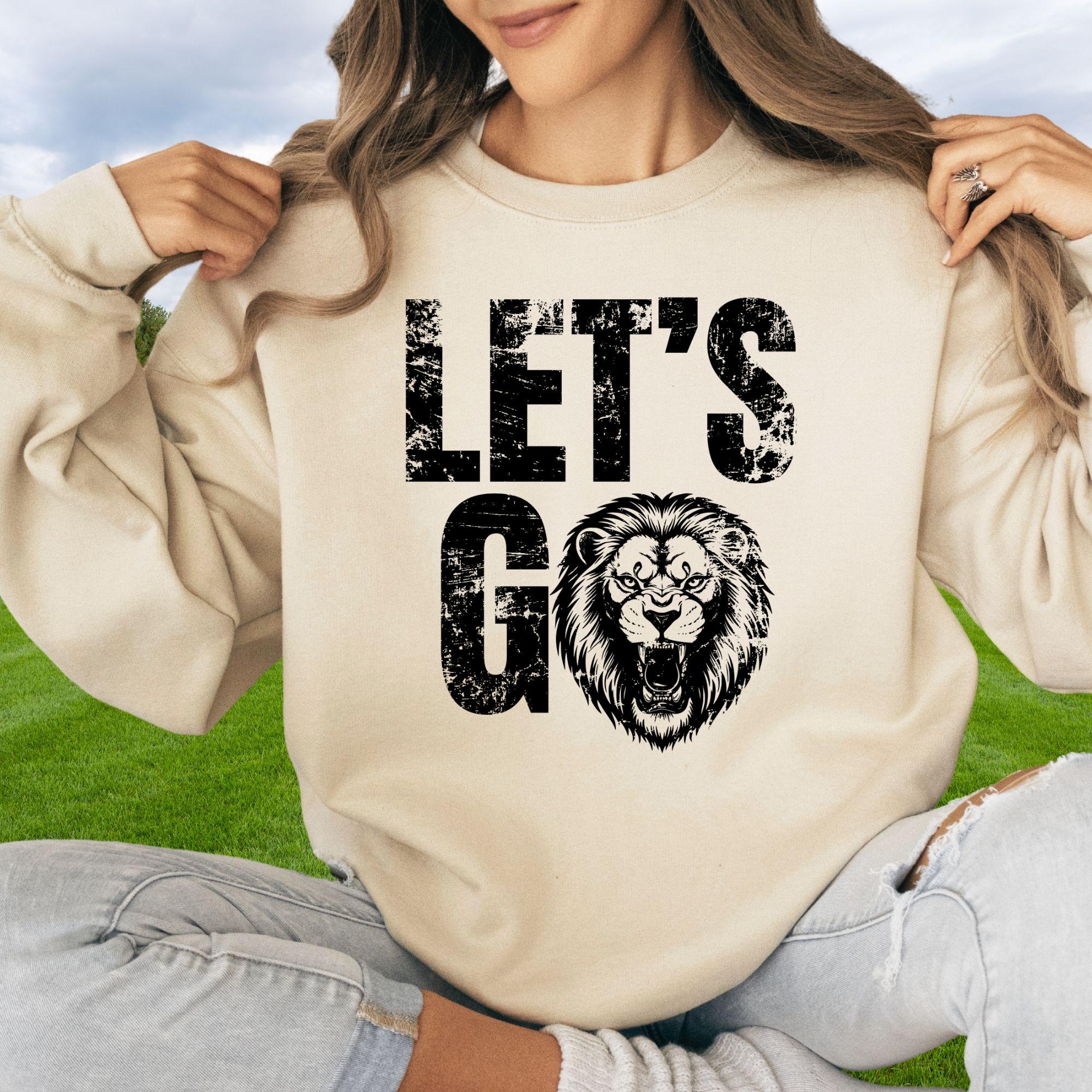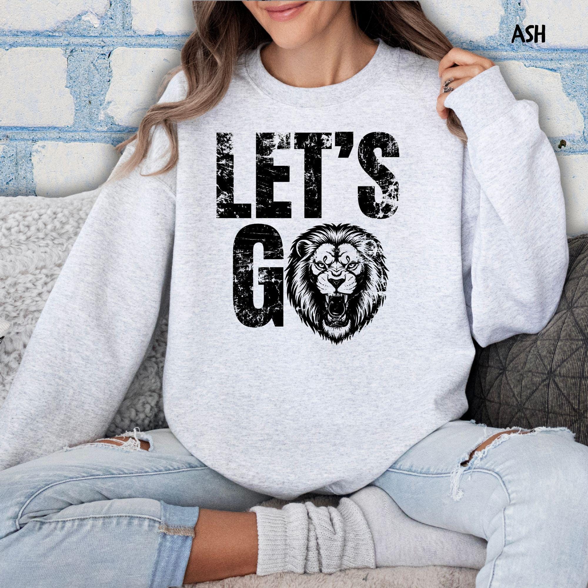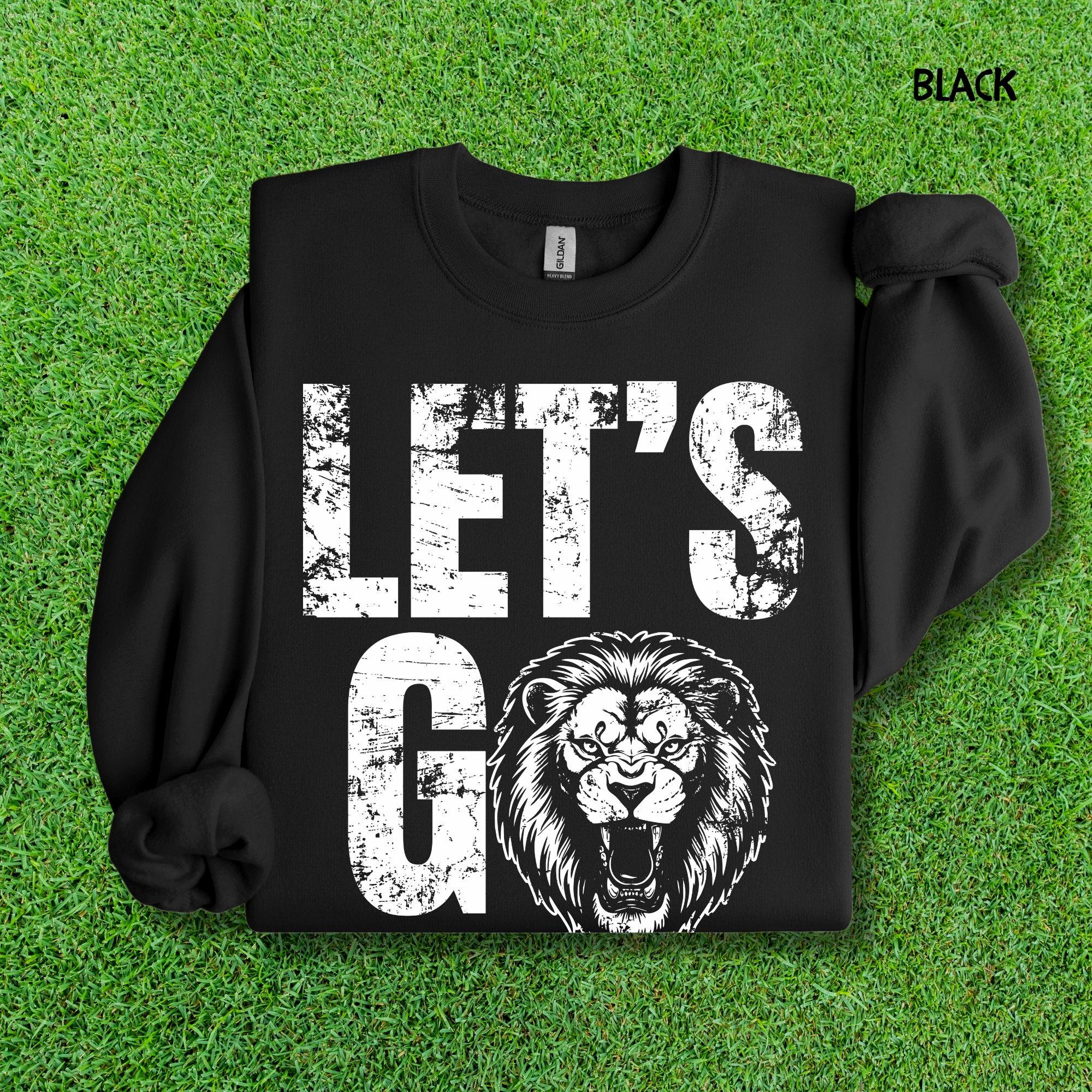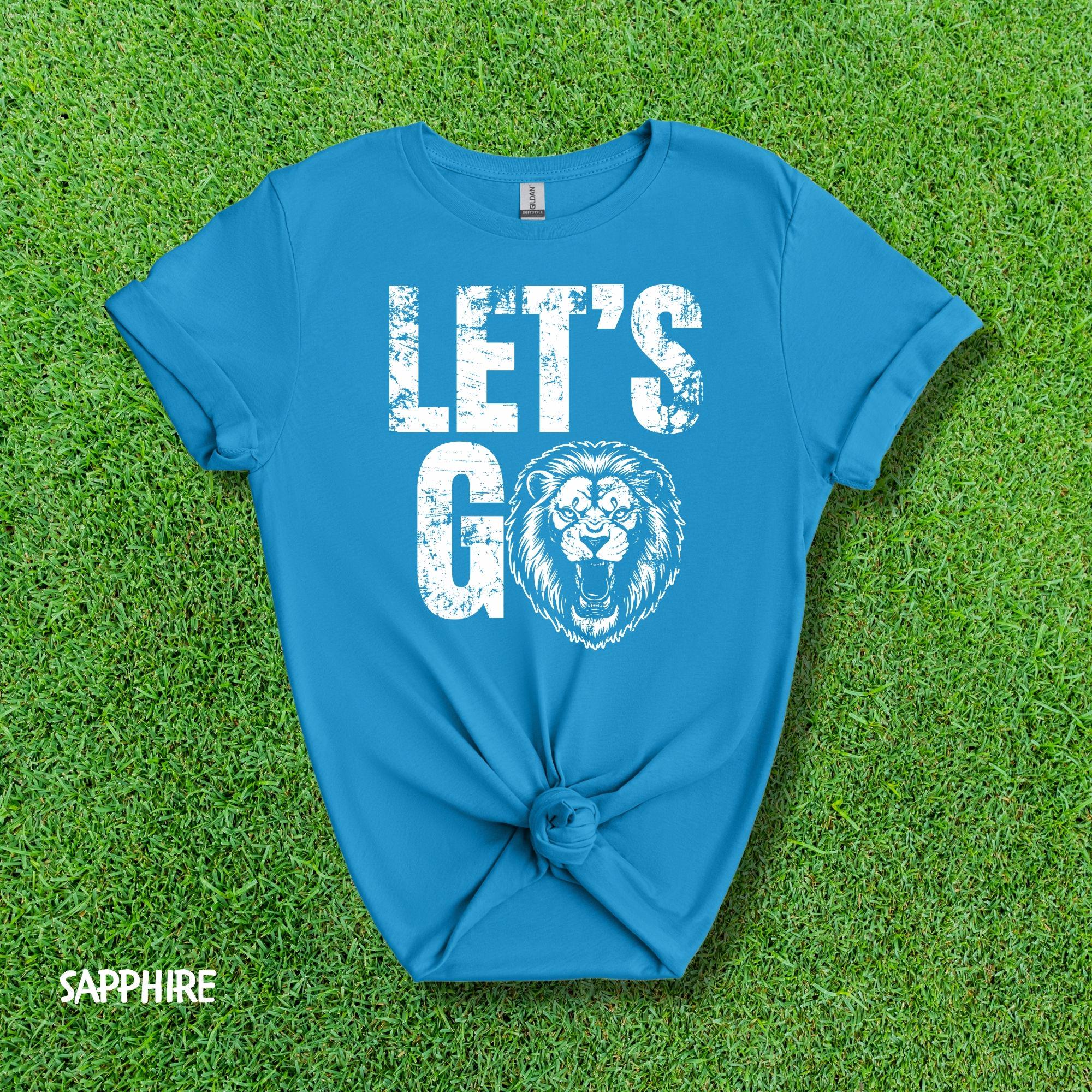 Show your Motor City pride with this vintage-style Detroit Football Game Day shirt, a cozy sweatshirt or t-shirt perfect for cheering on the team all season long. The Roaring Mascot Detroit Football Tee is designed for the ultimate fan who appreciates retro graphic apparel and hometown pride. This exclusive garment captures the energetic spirit of a classic game day, featuring the popular "Let's Go" phrase and a cool distressed finish that gives it a timeless vintage vibe. Our design strategy focuses on creating unique fan wear that stands out from typical merchandise, making it a perfect gift for any devoted football lover. The lightweight t-shirt and the super-soft crewneck sweatshirt options ensure comfort whether you're tailgating on Sunday, watching the game at home, or running errands in the Motor City. We use premium print techniques to ensure the retro graphic remains vibrant, giving you a durable, quality shirt that will last for many football seasons to come. This essential piece is crucial for building a fan wardrobe that speaks to both quality and enduring team spirit.