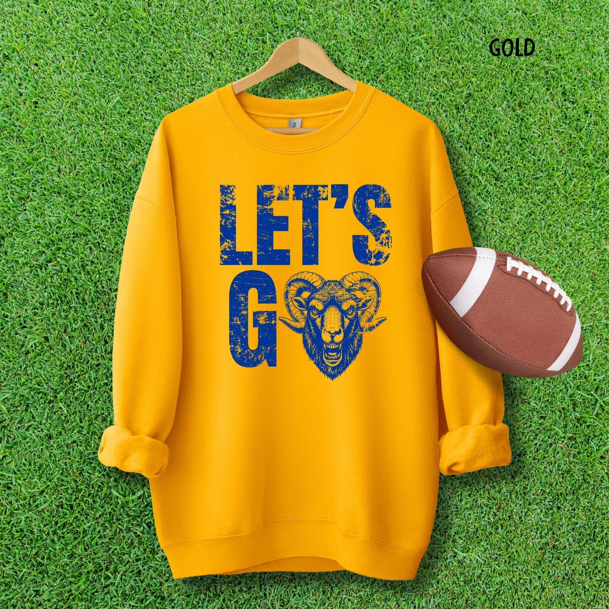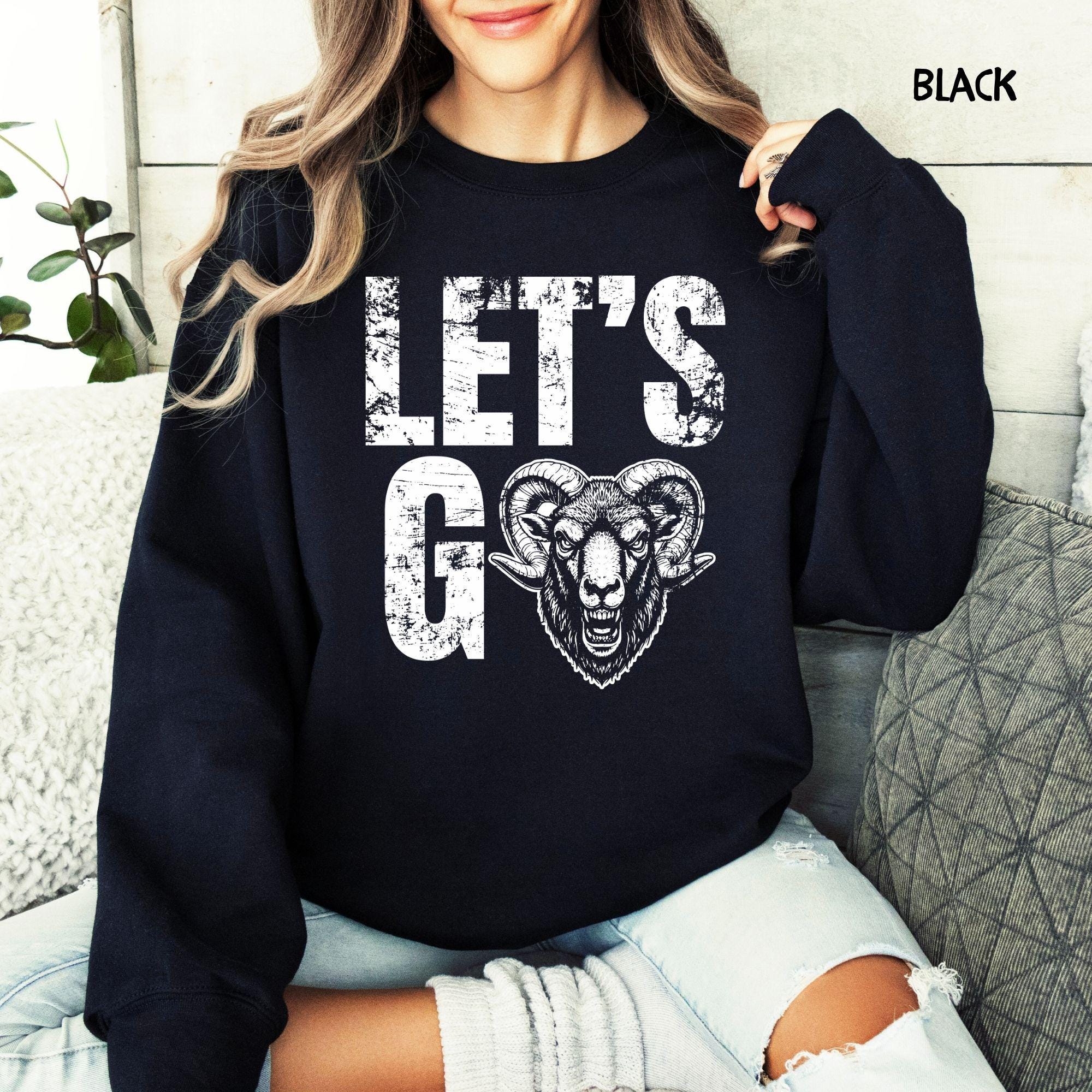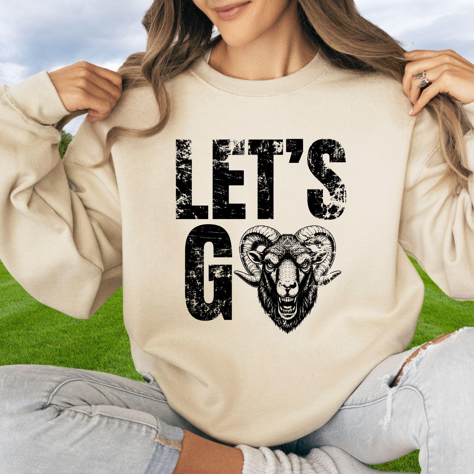 Ignite your motivation and show your fierce competitive edge with this truly unique Vintage Gameday Shirt. Our powerful graphic features an intricately drawn, aggressive Ram Head in a bold, line-art style, merging seamlessly with the "LET'S GO" slogan. The distressed graphic tee design gives it an authentic, worn-in, retro sports feel, making it the perfect Sports Fan Gift or a high-energy Workout Motivation top. It's more than just apparel; it's a statement of fierce determination, ideal for your next tailgate, gym session, or casual wear.