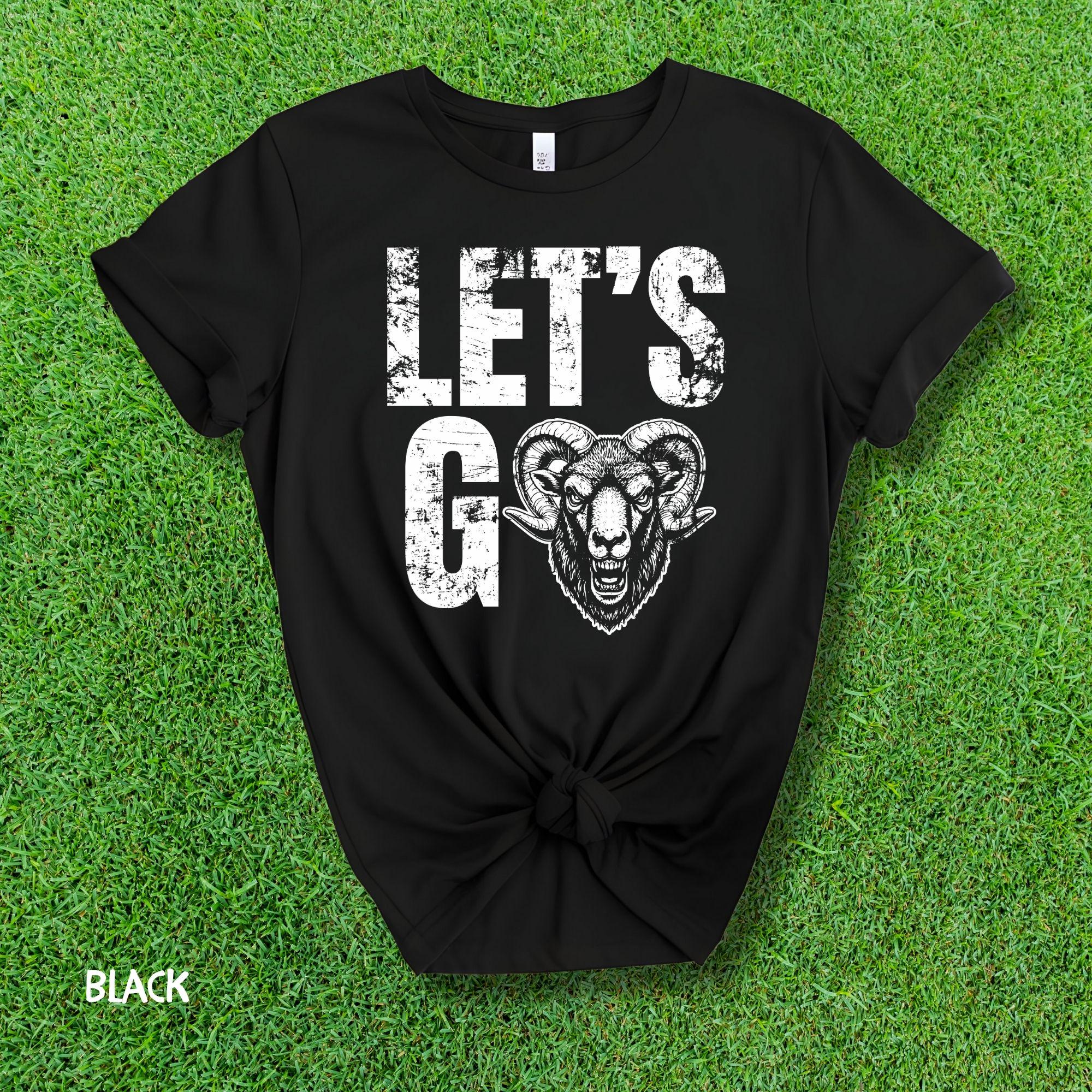 • Premium Graphic Quality: High-detail, tattoo-style Ram head illustration and "Let's Go Shirt" slogan, combined with an authentic vintage grunge texture.