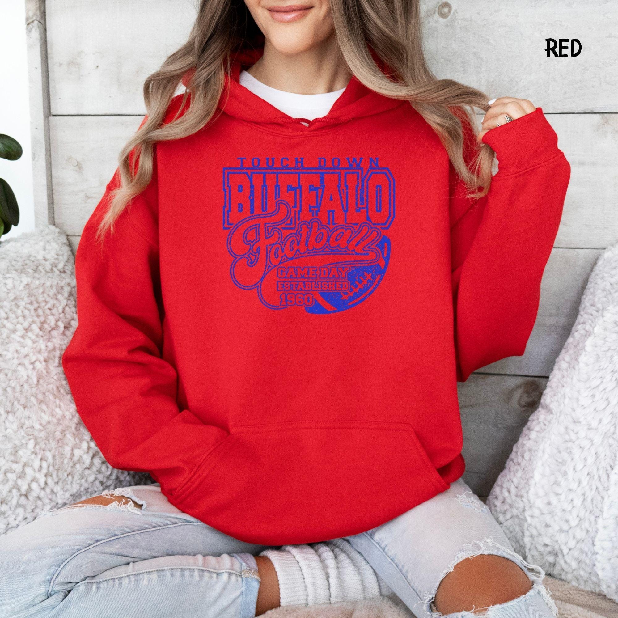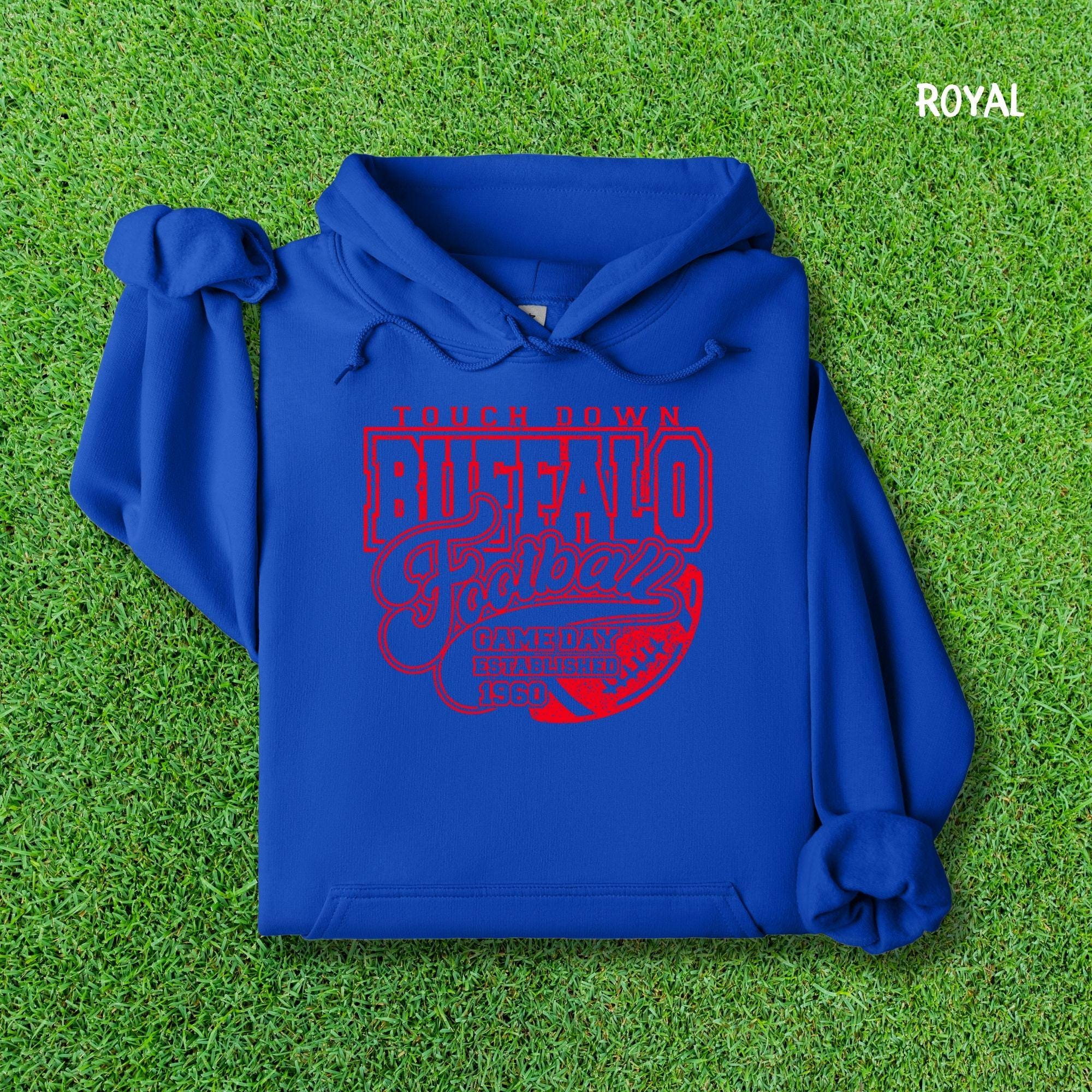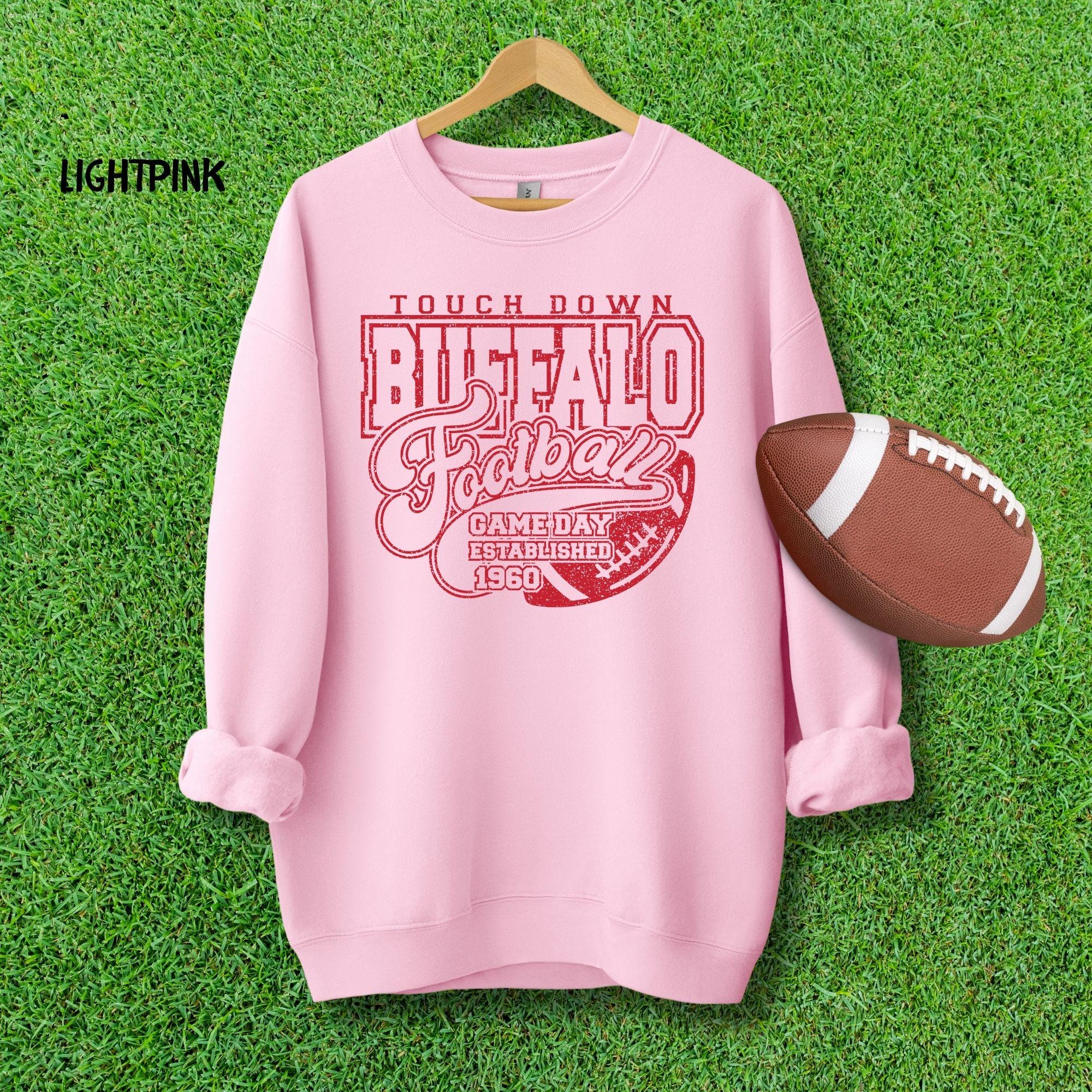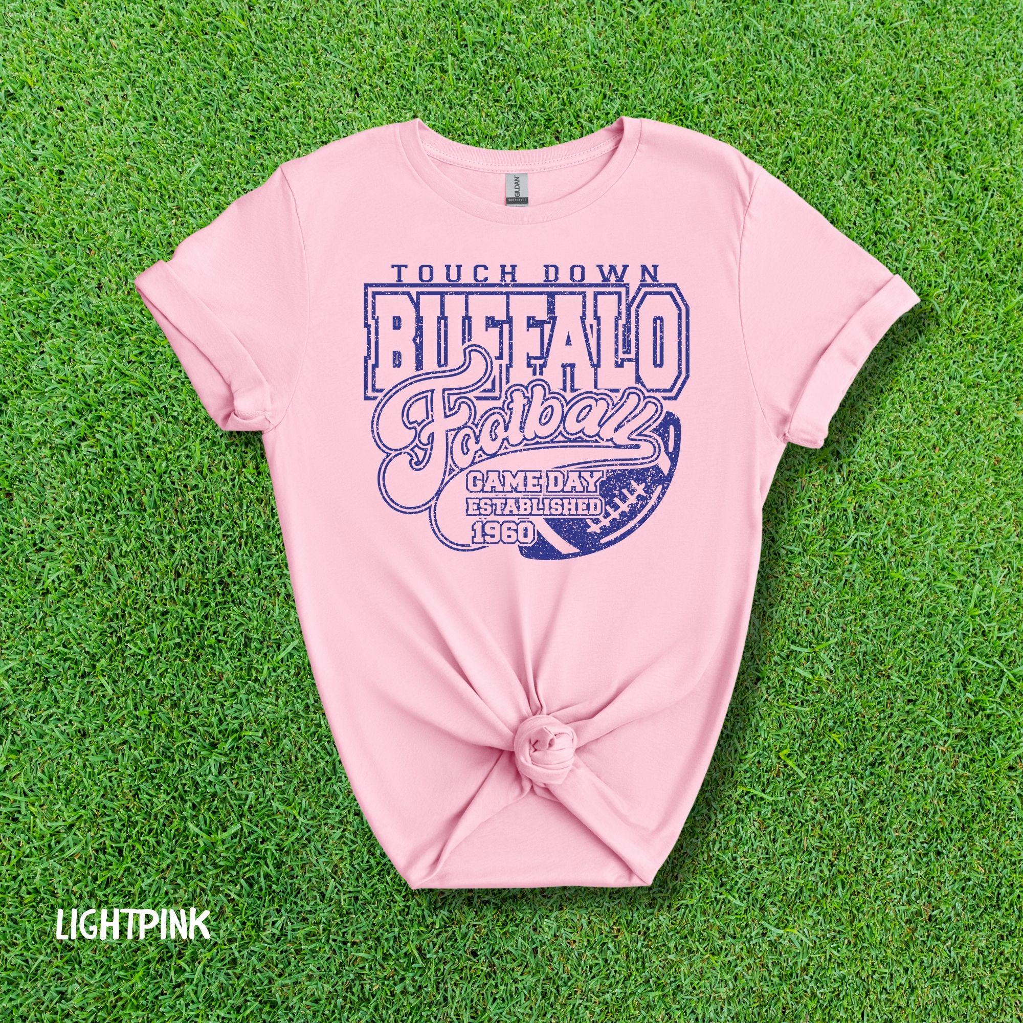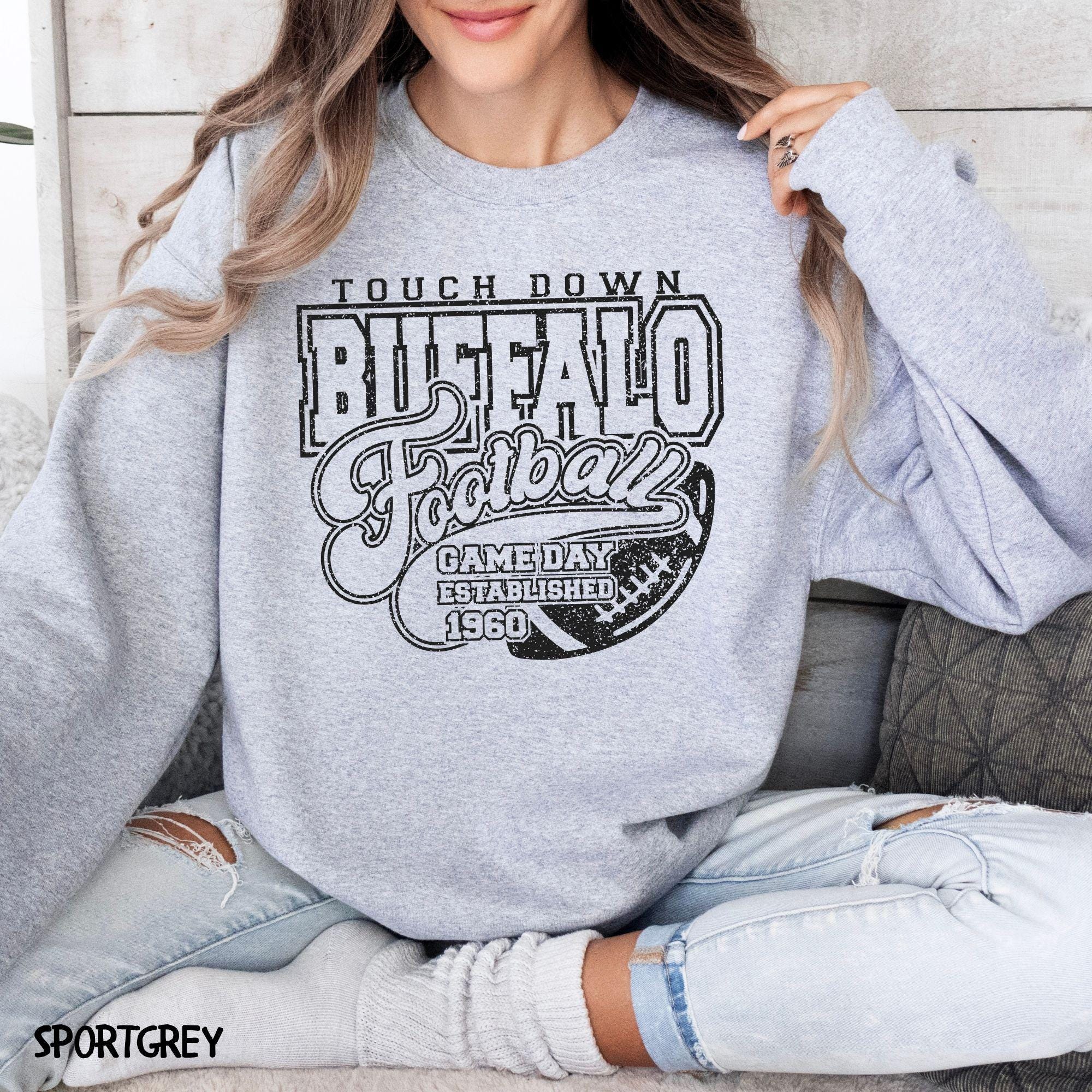 Show your Buffalo pride with this classic, vintage-style football design. Featuring a bold 'Touch Down' and 'Established 1960' graphic, this piece captures the spirit of gameday with a perfect retro vibe.
