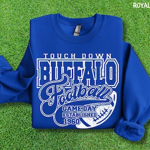 Show your Buffalo pride in classic style. This distressed, vintage-inspired football graphic isn't just a design; it's a statement of loyalty, perfect for repping your team on gameday, at a tailgate, or just showing off your NY roots.