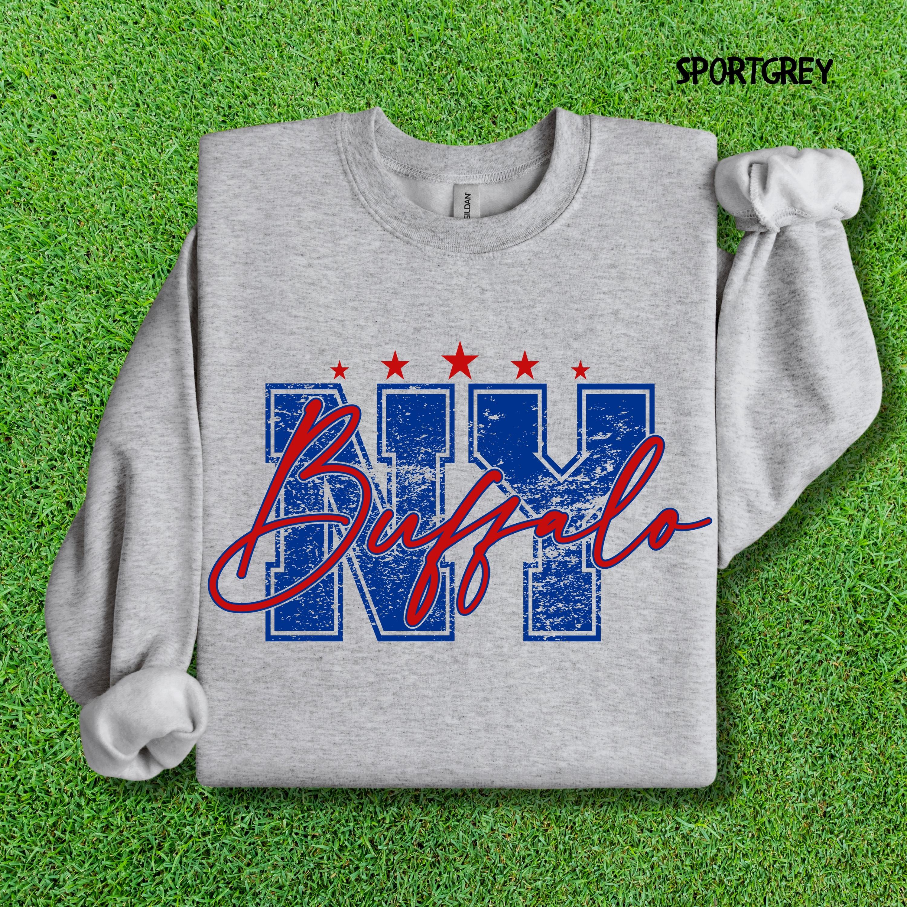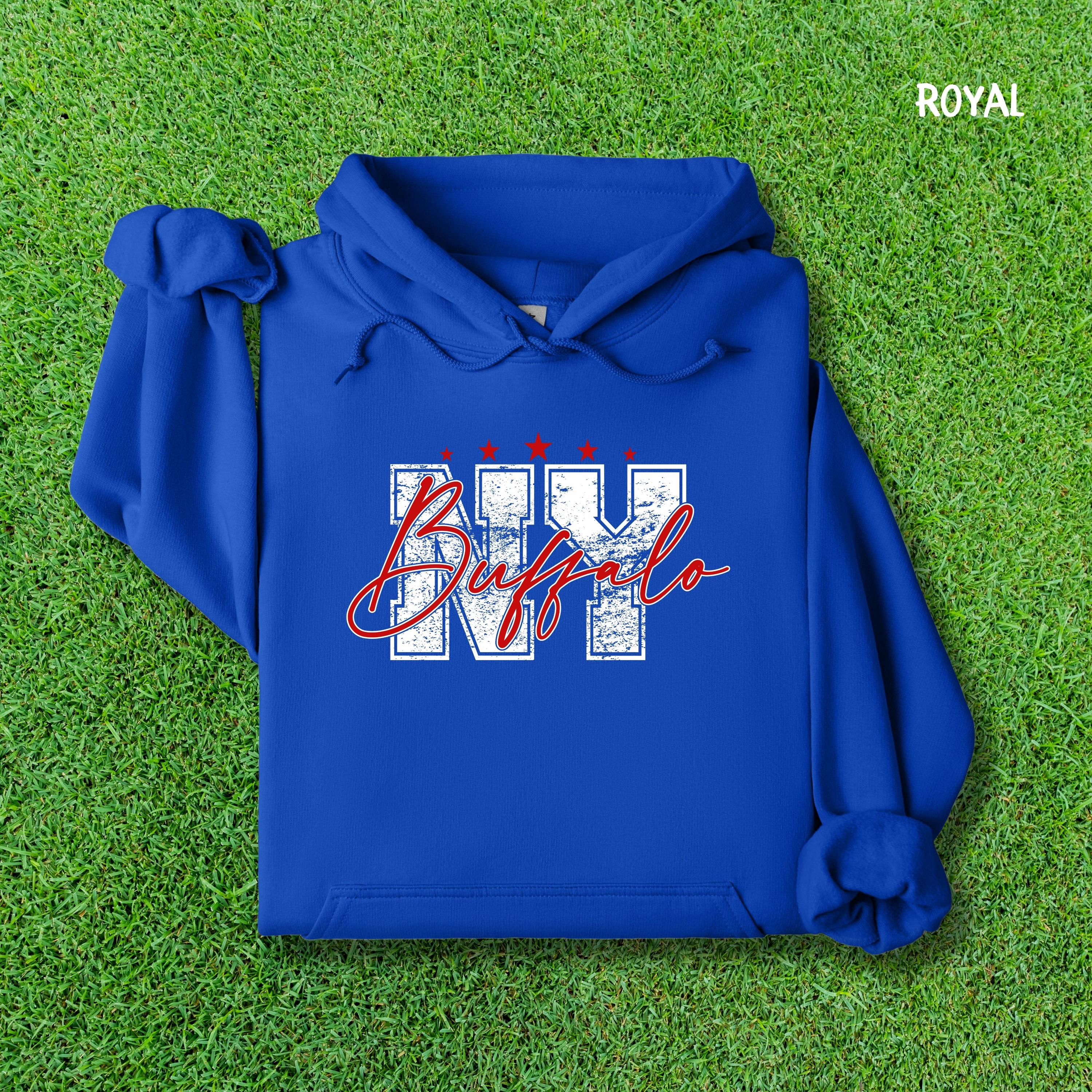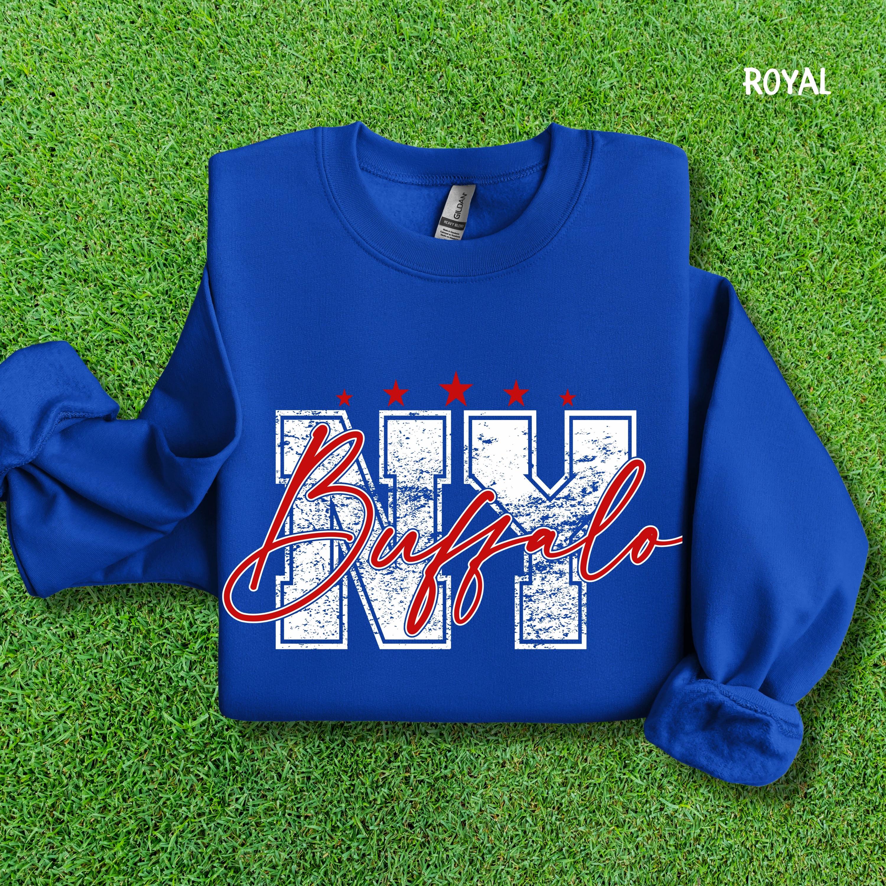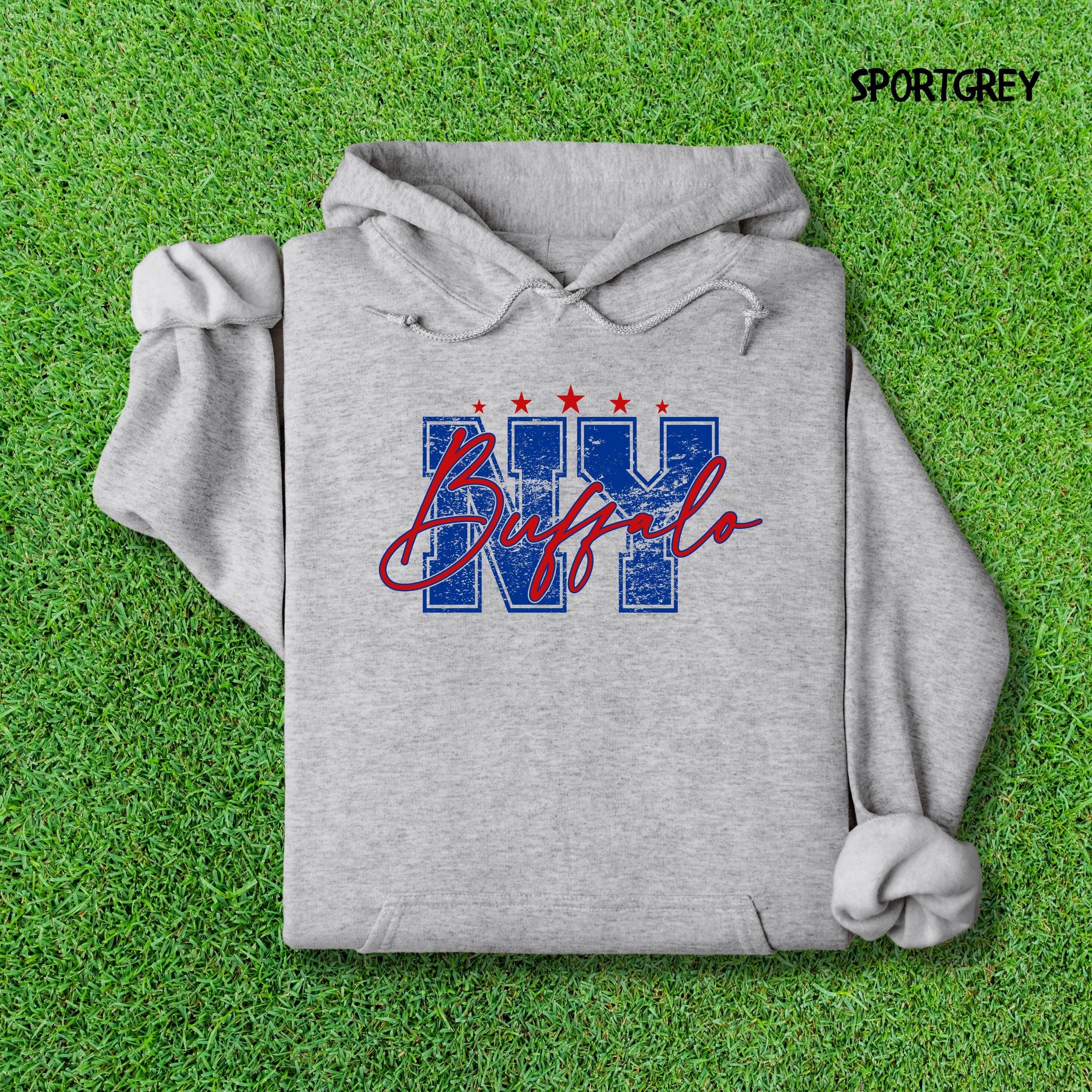 • Vintage Distressed Print: Features a high-quality, distressed "Buffalo" and "NY" graphic for a timeless, retro sportswear look.