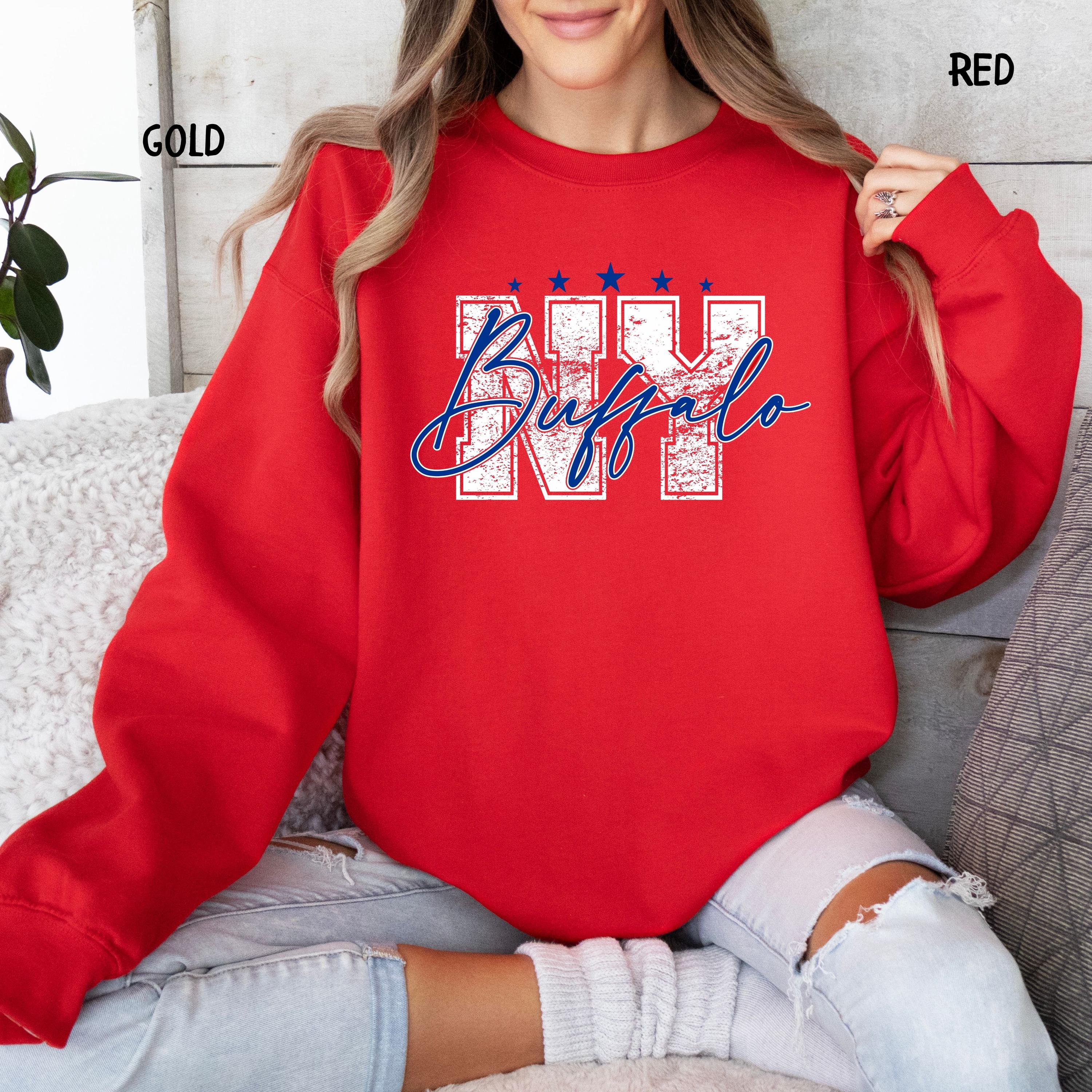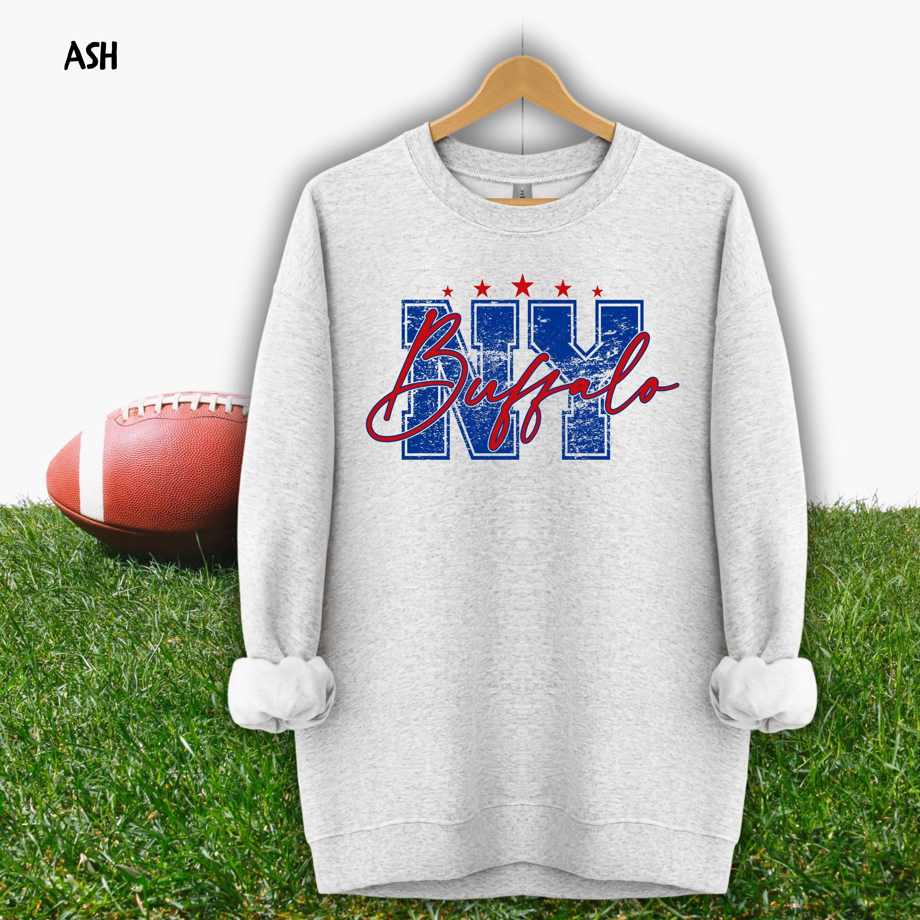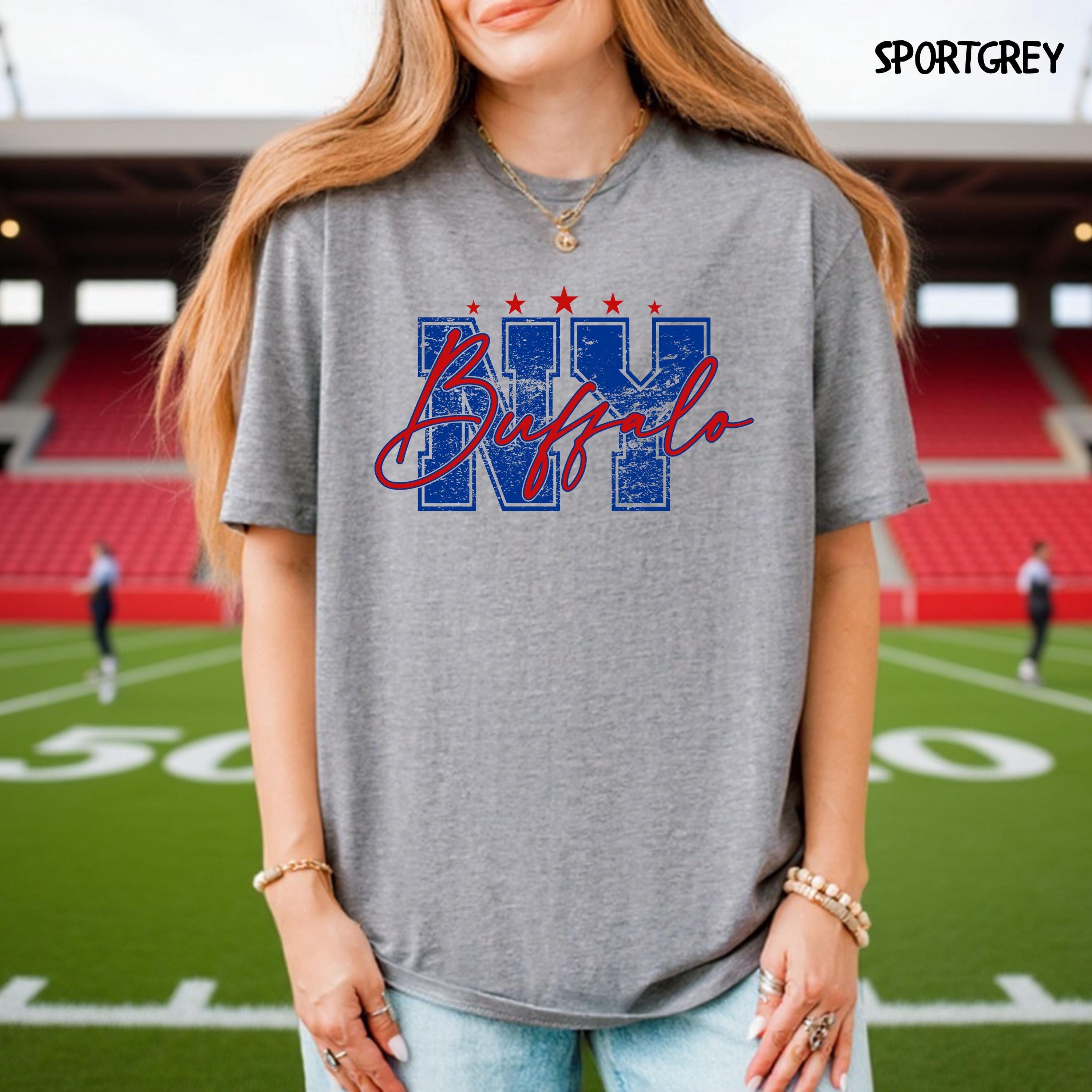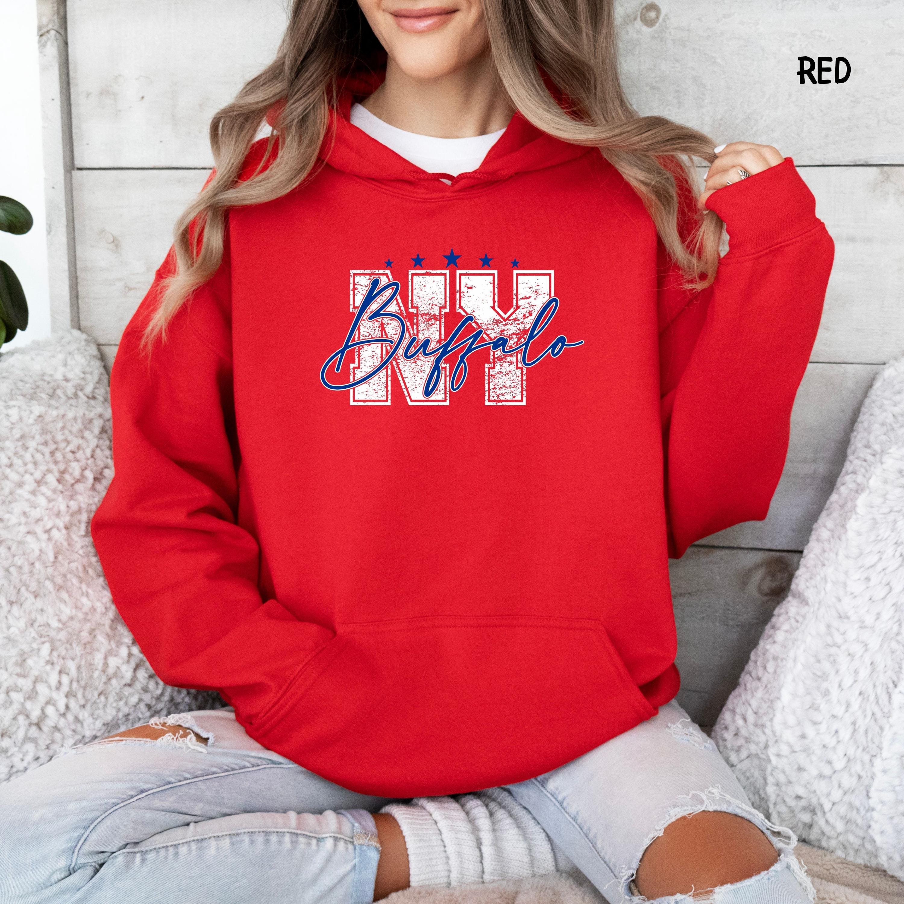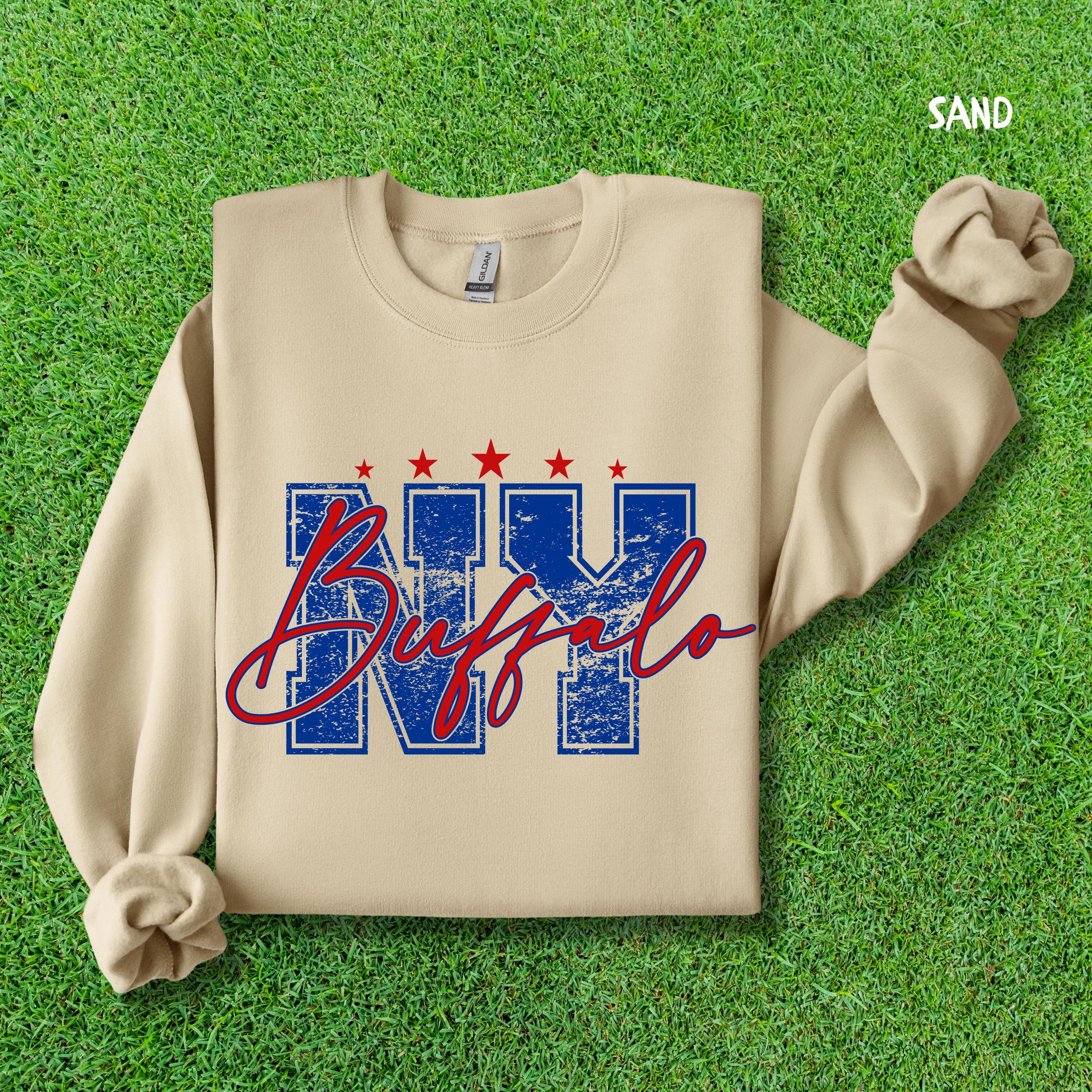 • Vintage Distressed Print: Features a high-quality, distressed "Buffalo" and "NY" graphic for a timeless, retro sportswear look.