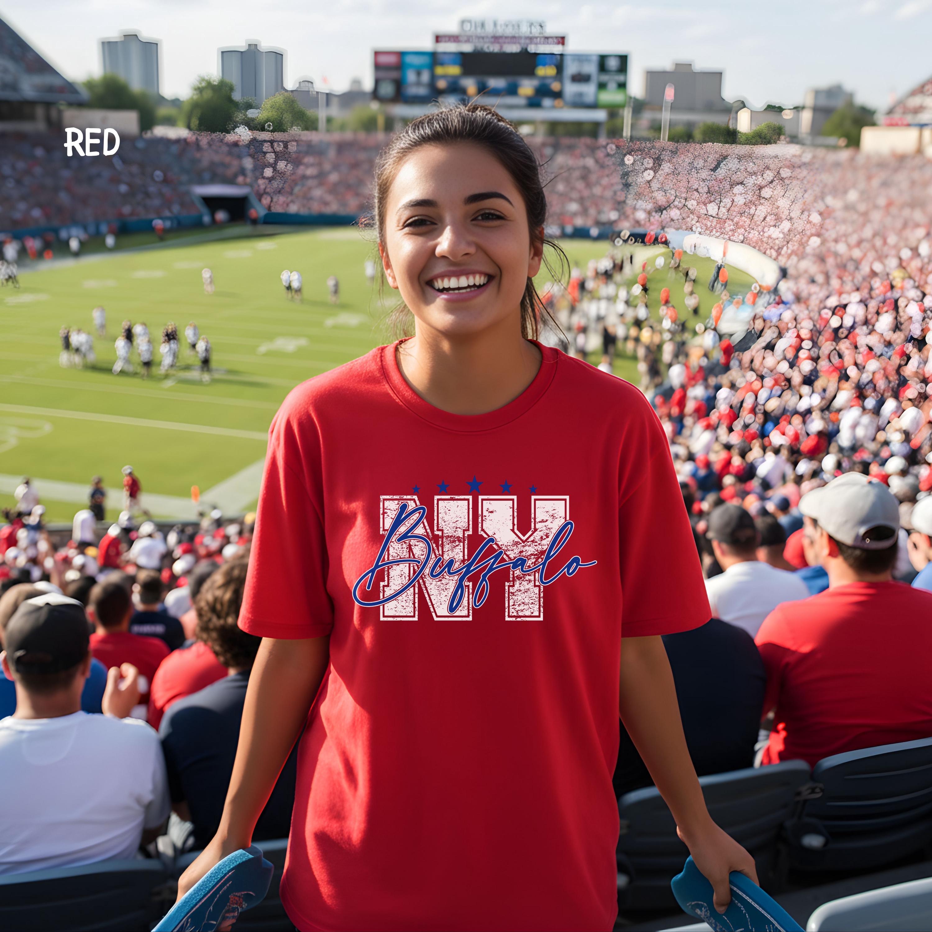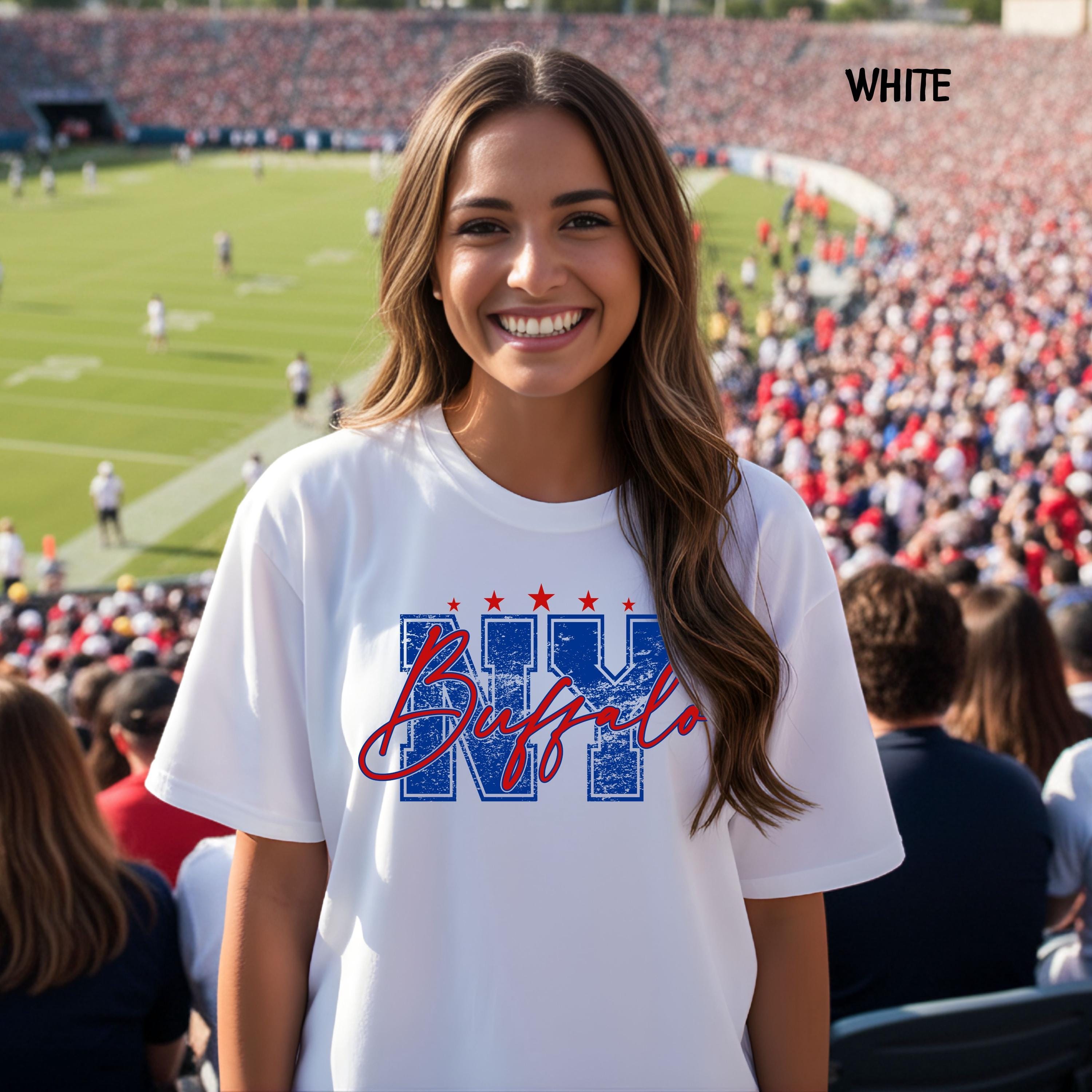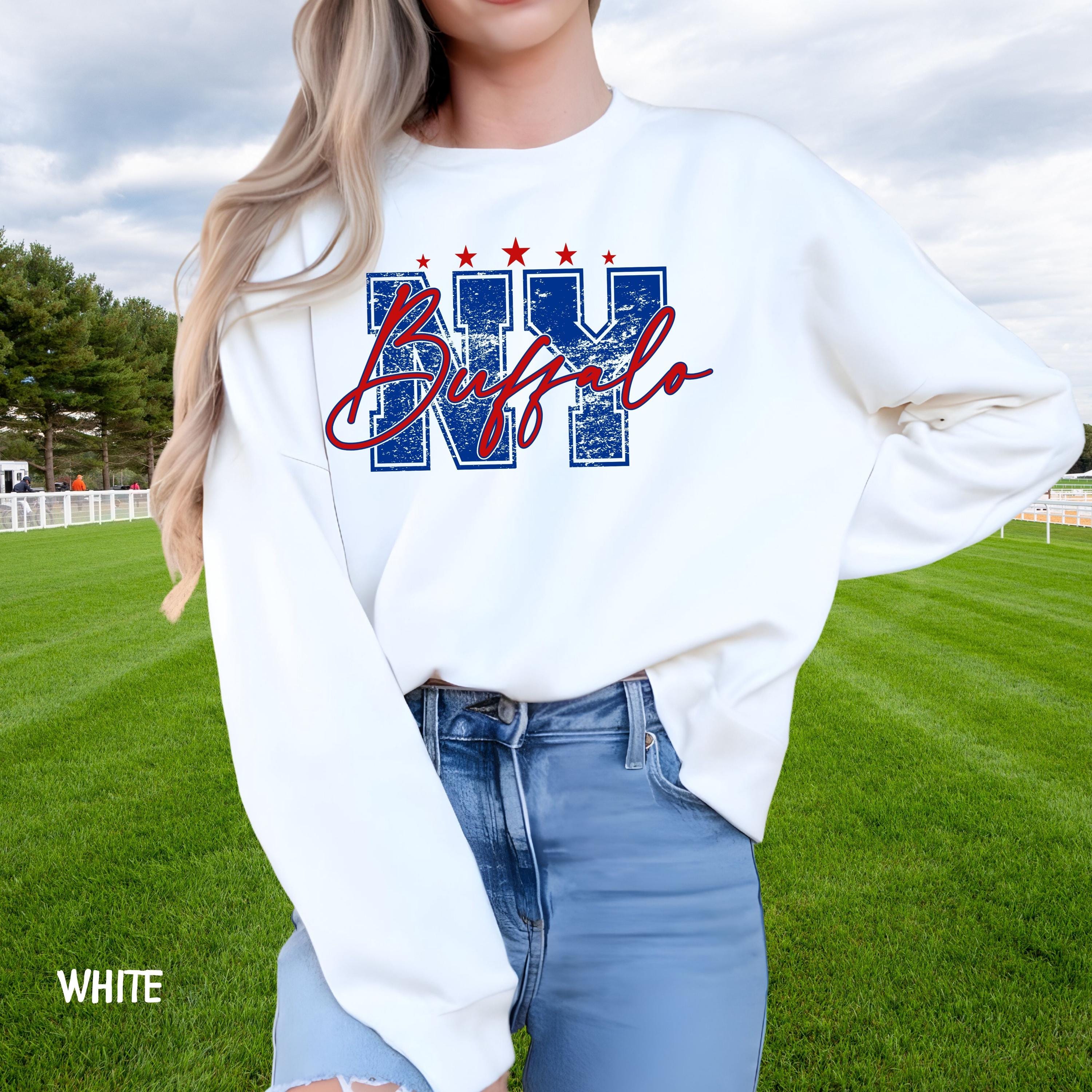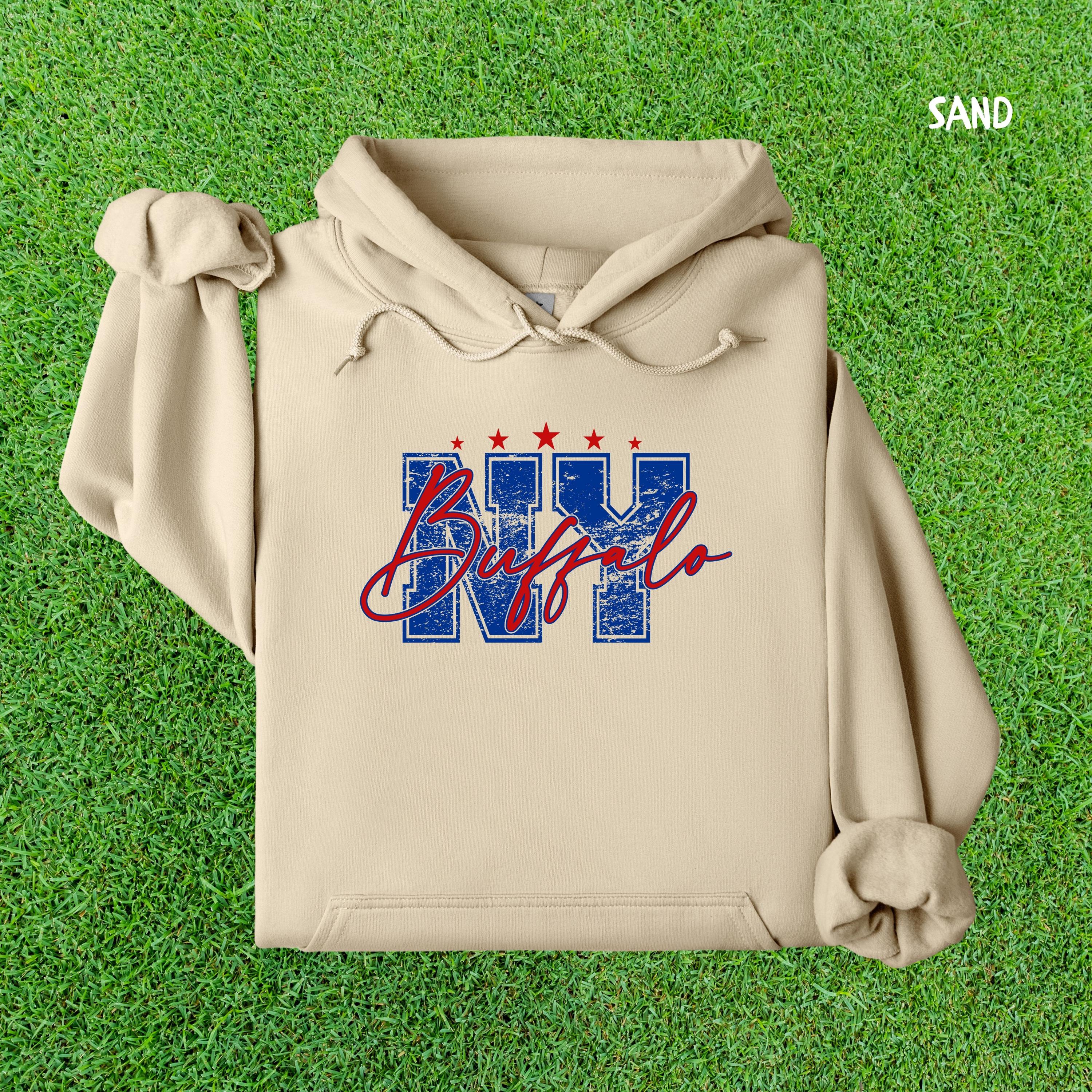 • Vintage Distressed Print: Features a high-quality, distressed "Buffalo" and "NY" graphic for a timeless, retro sportswear look.