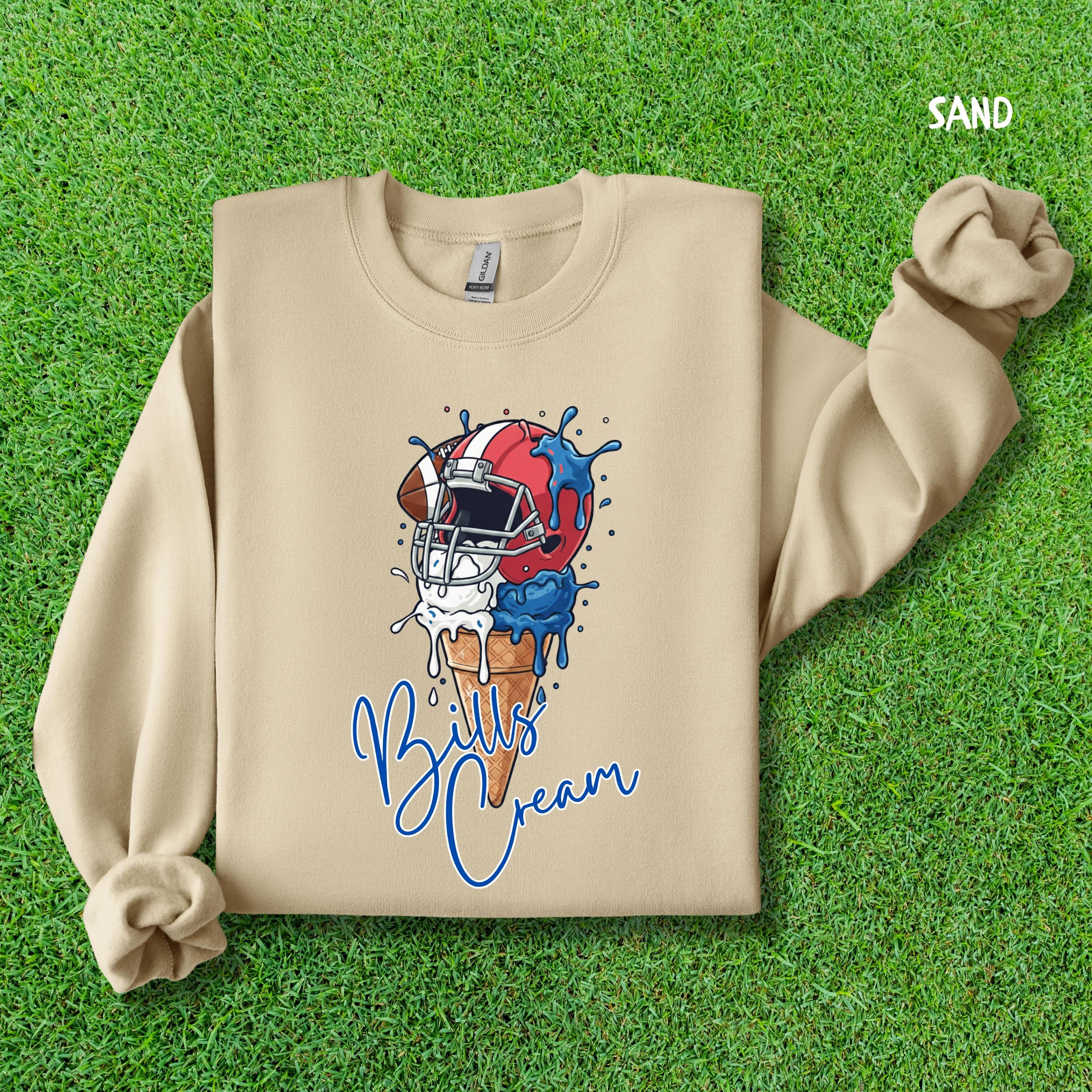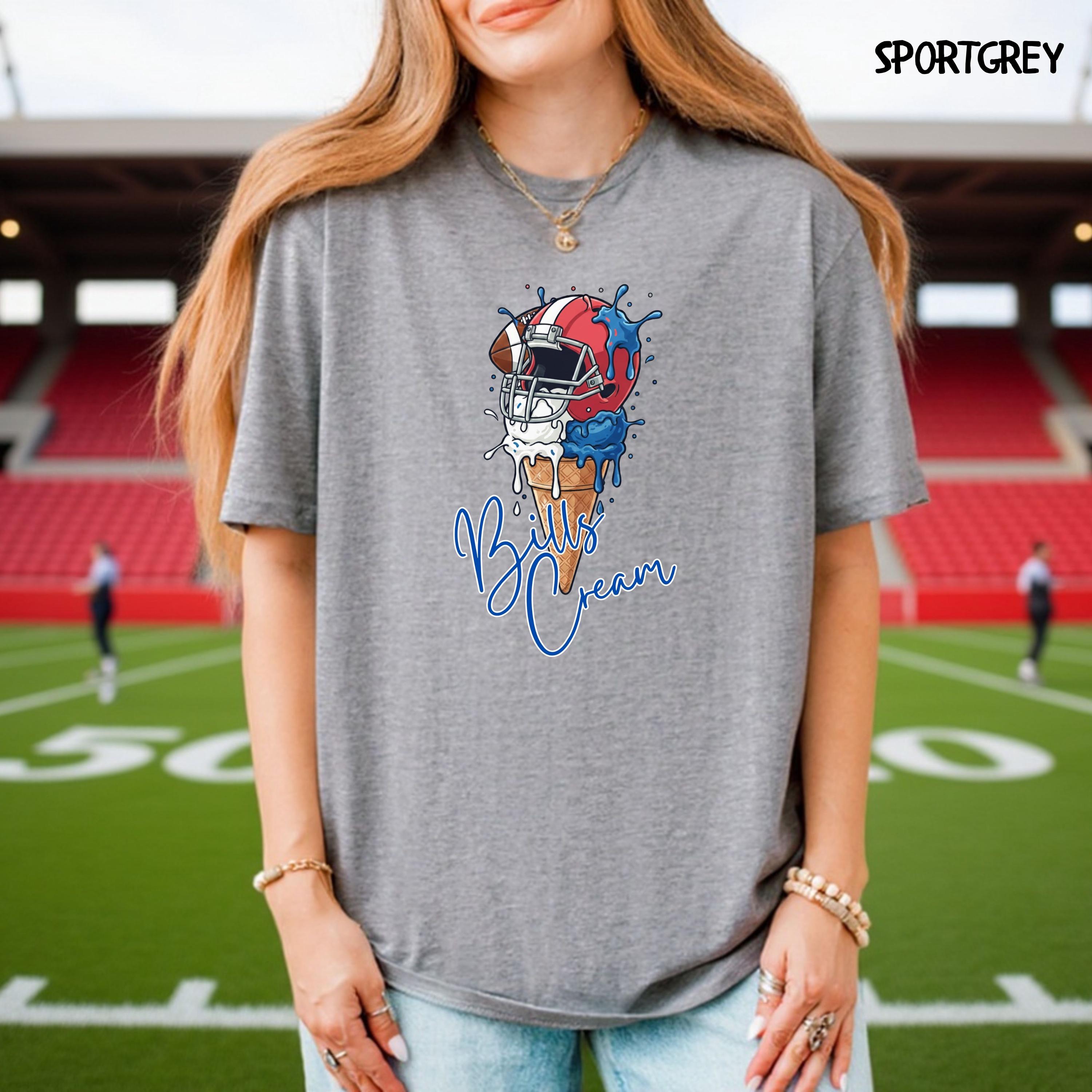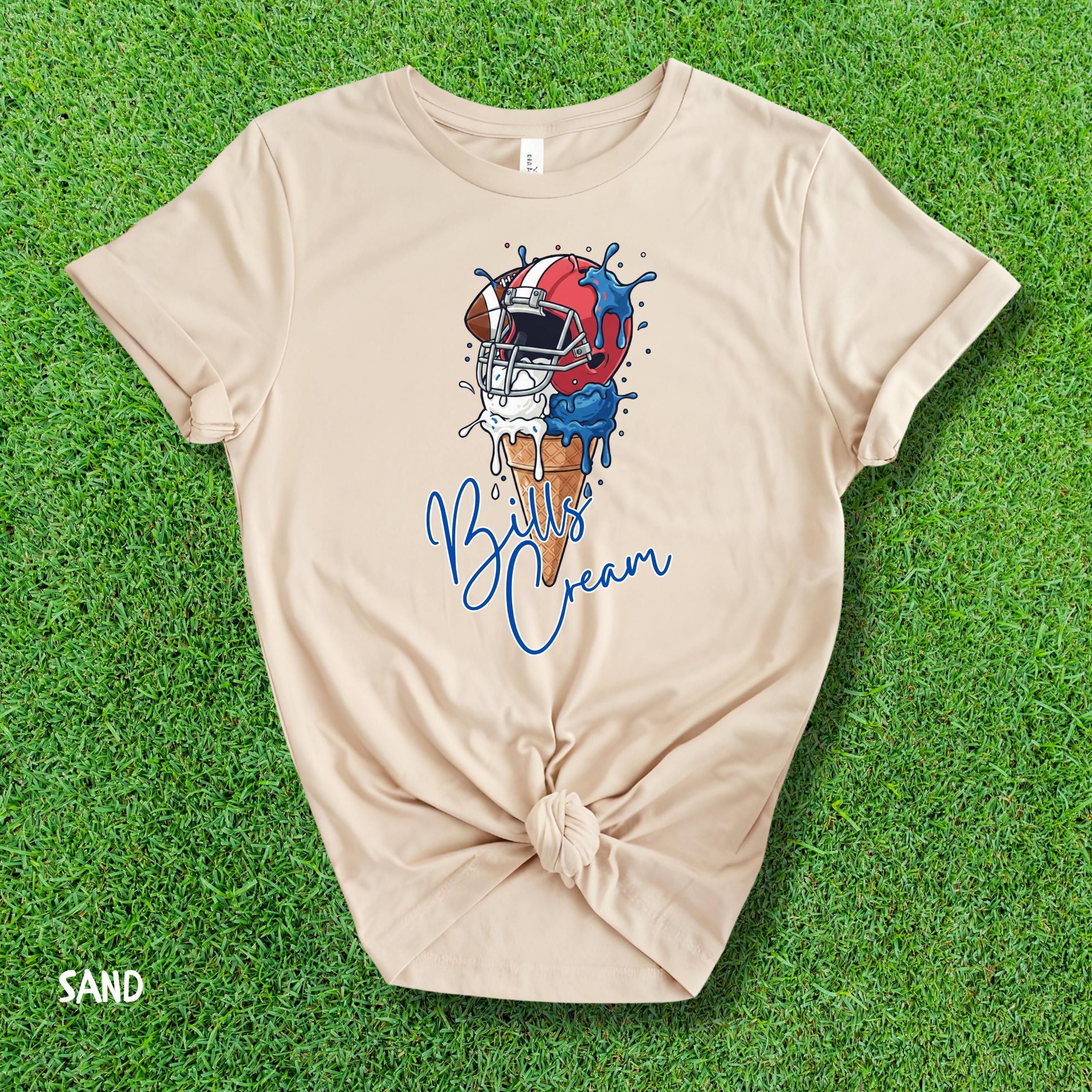 What's cooler than being the coolest fan at the tailgate? This Bills Cream shirt! Show off your team spirit with this hilarious ice cream pun graphic. It's the perfect, unique find for any Bills fan who loves football, fun, and a sweet victory.