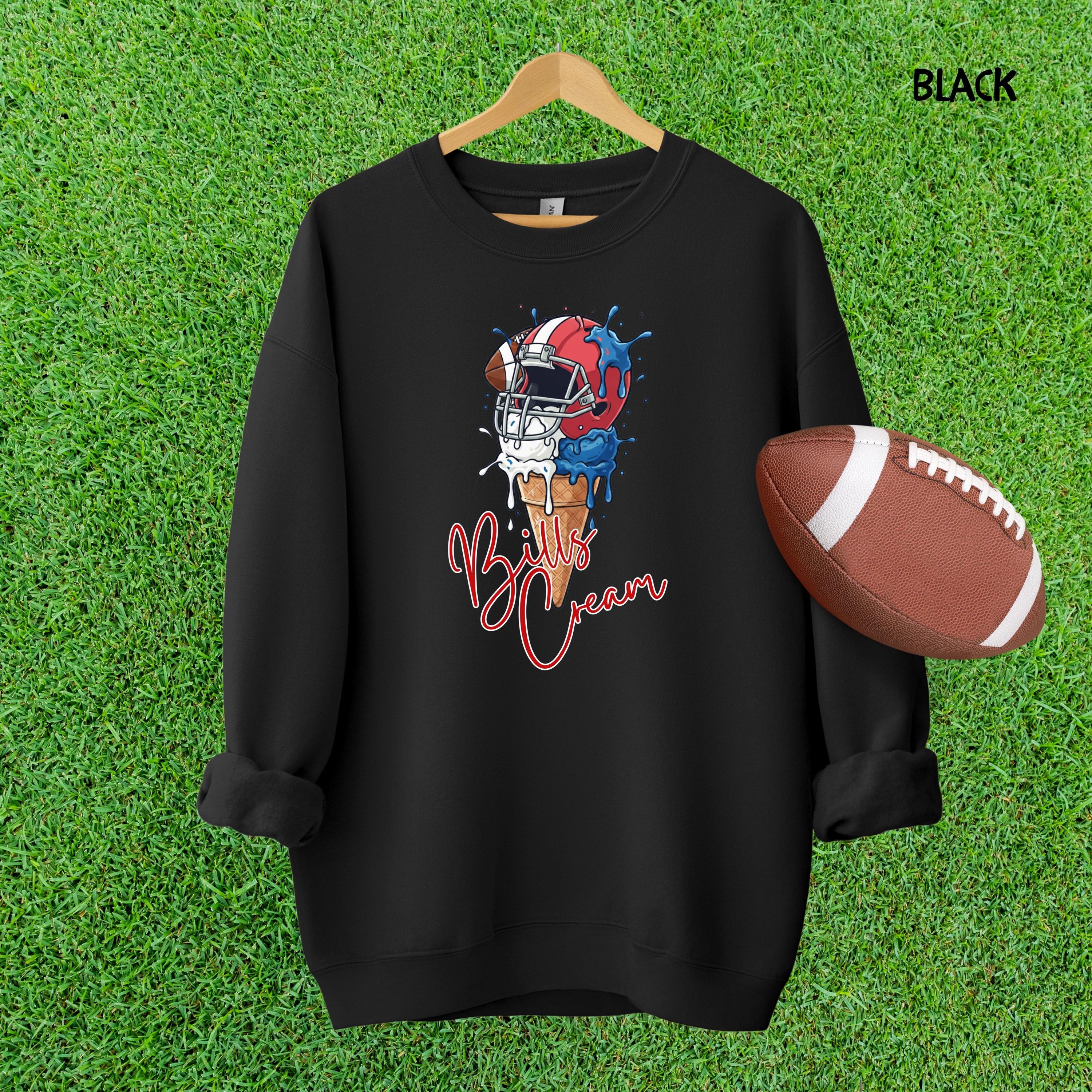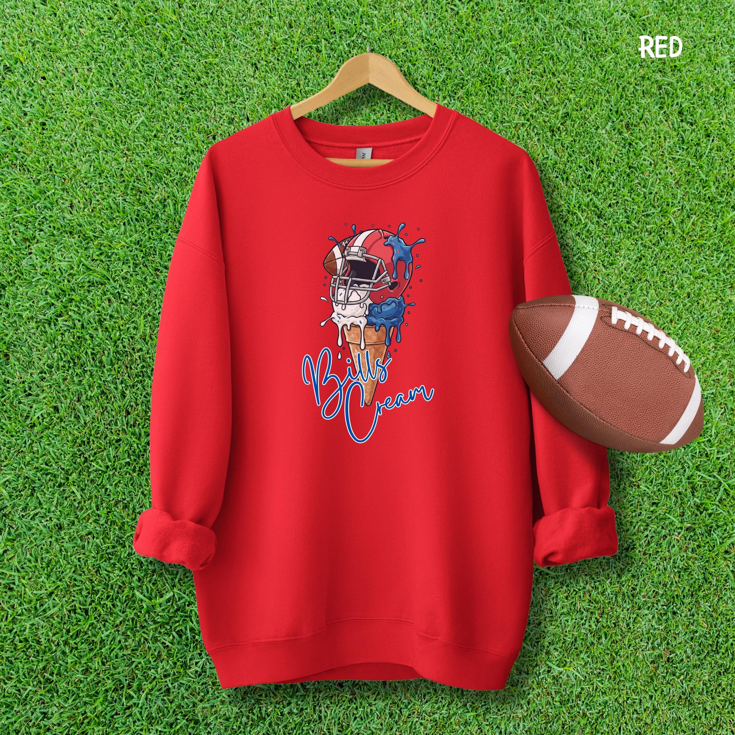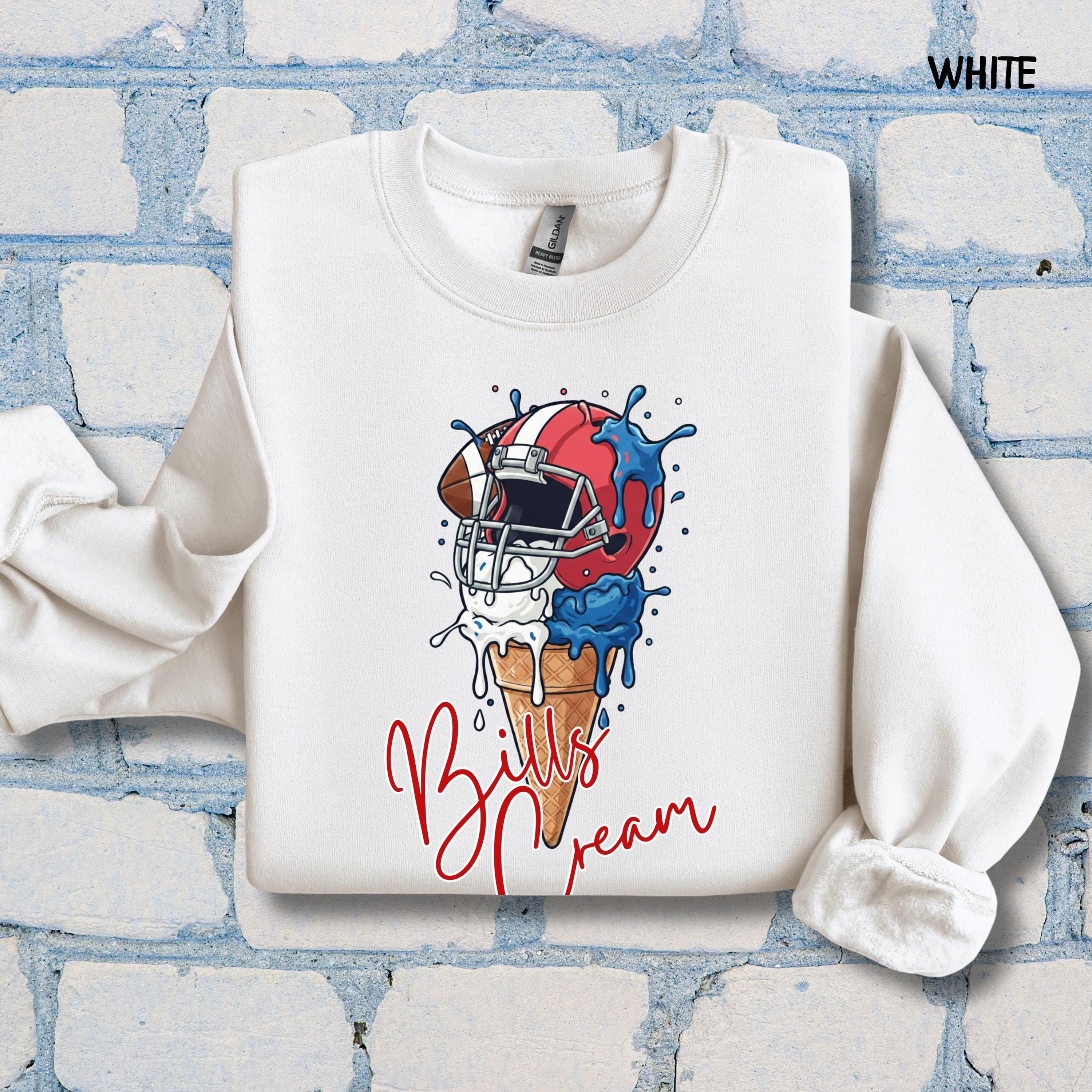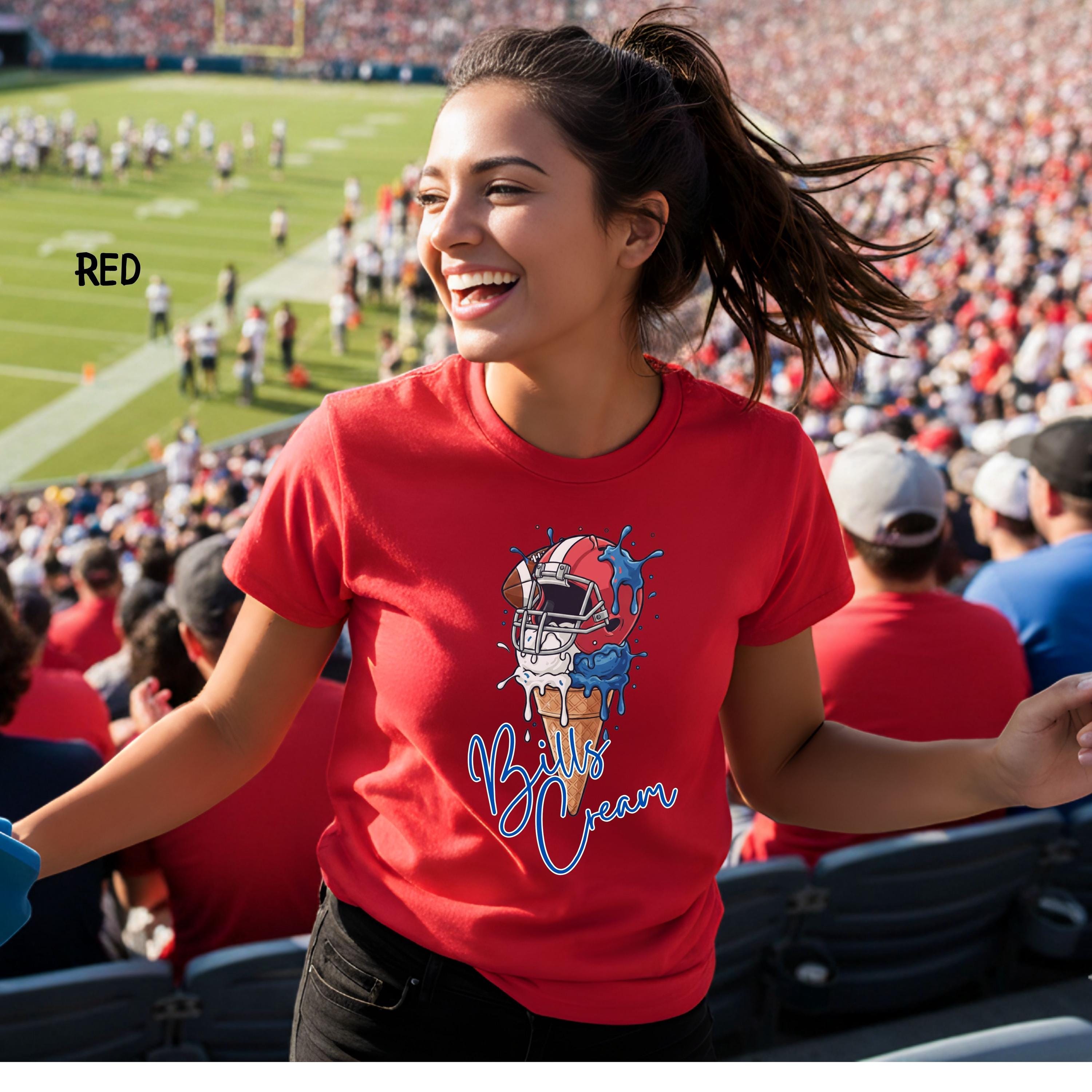 What's cooler than being the coolest fan at the tailgate? This Bills Cream shirt! Show off your team spirit with this hilarious ice cream pun graphic. It's the perfect, unique find for any Bills fan who loves football, fun, and a sweet victory.
