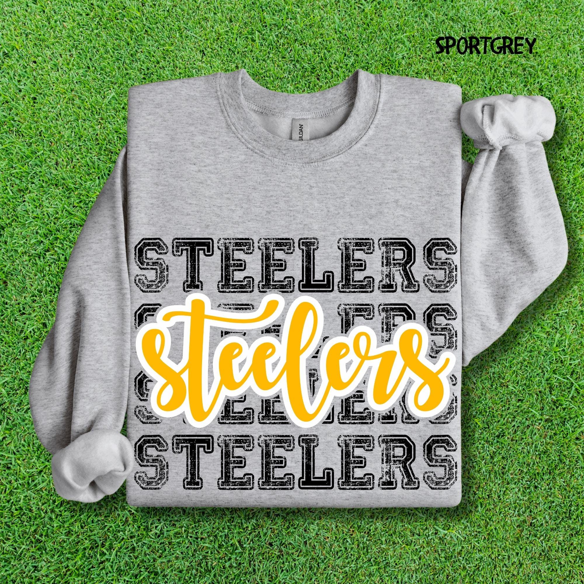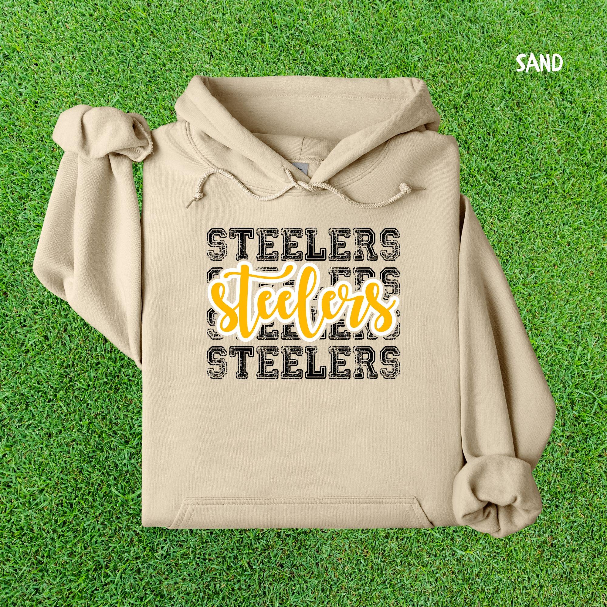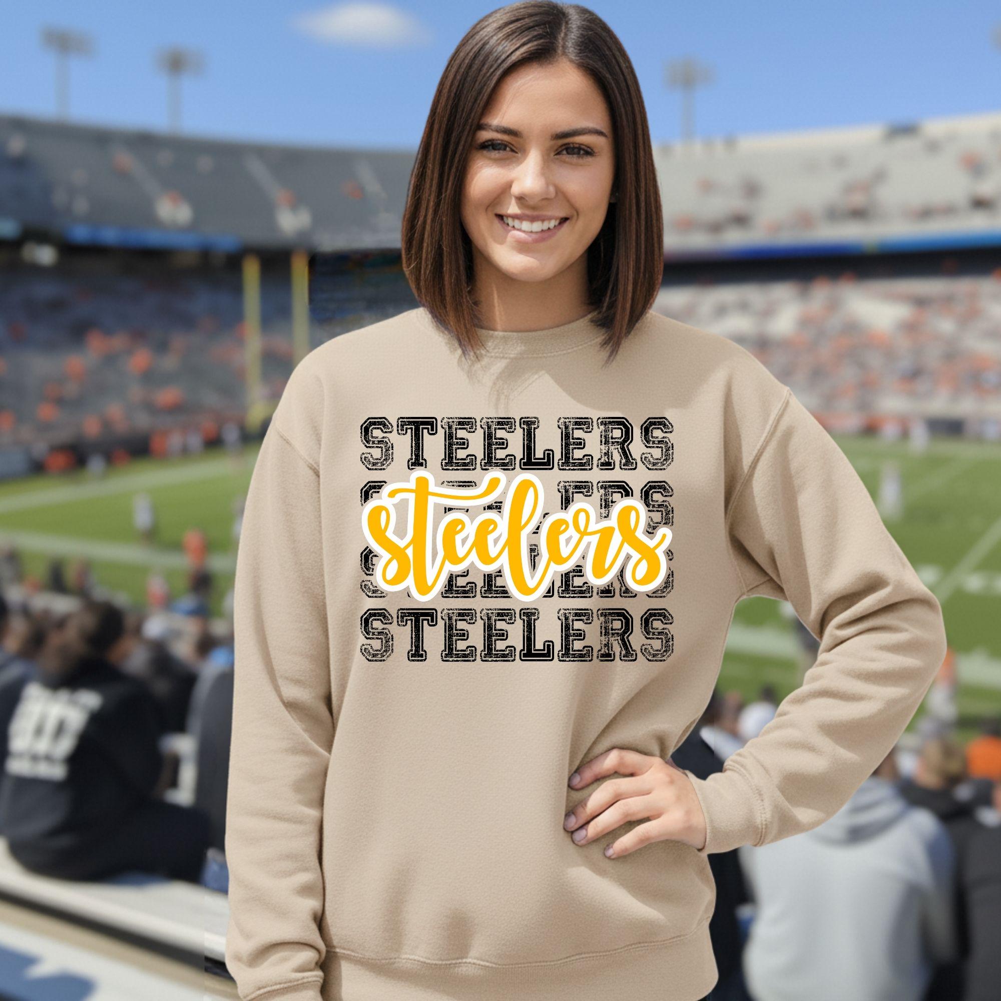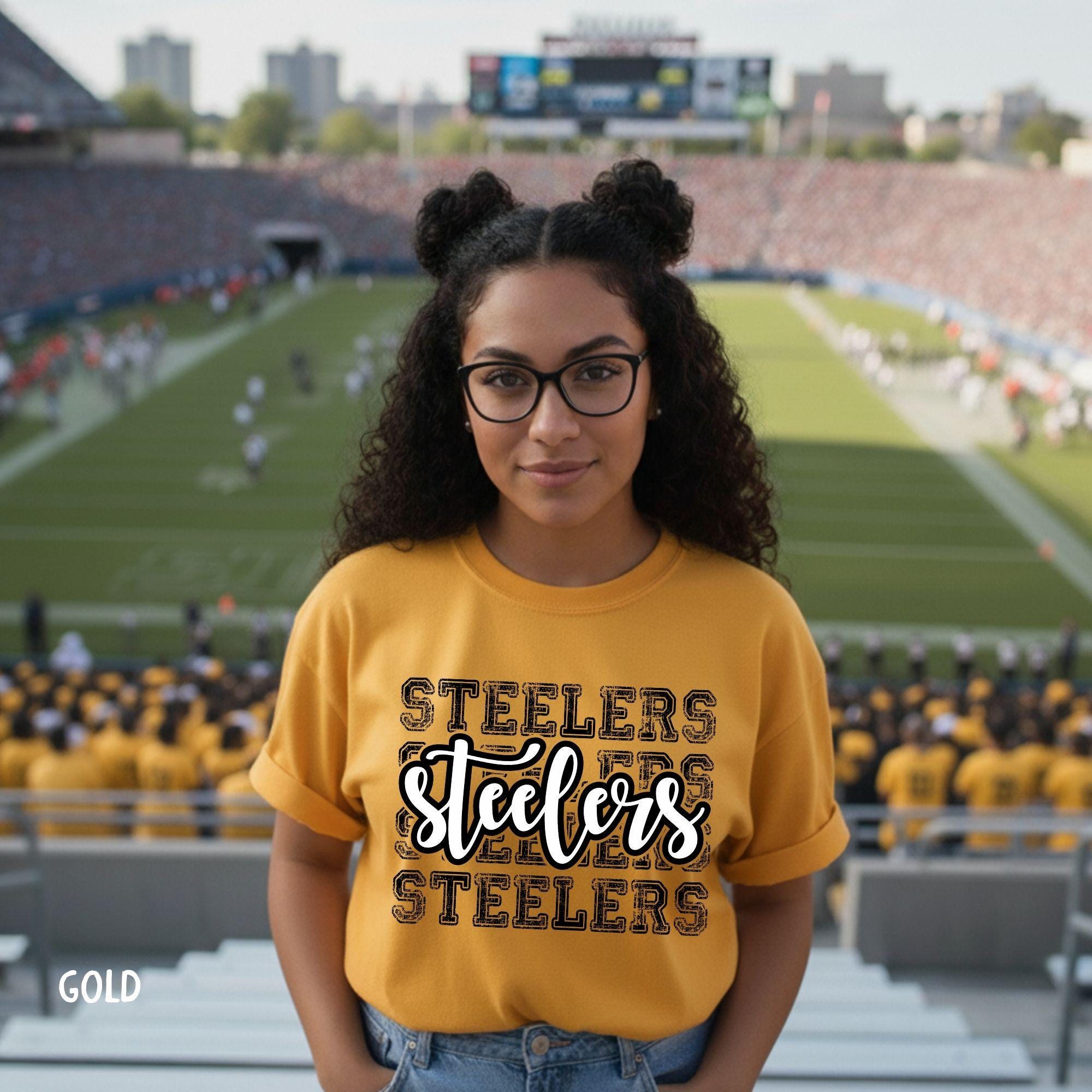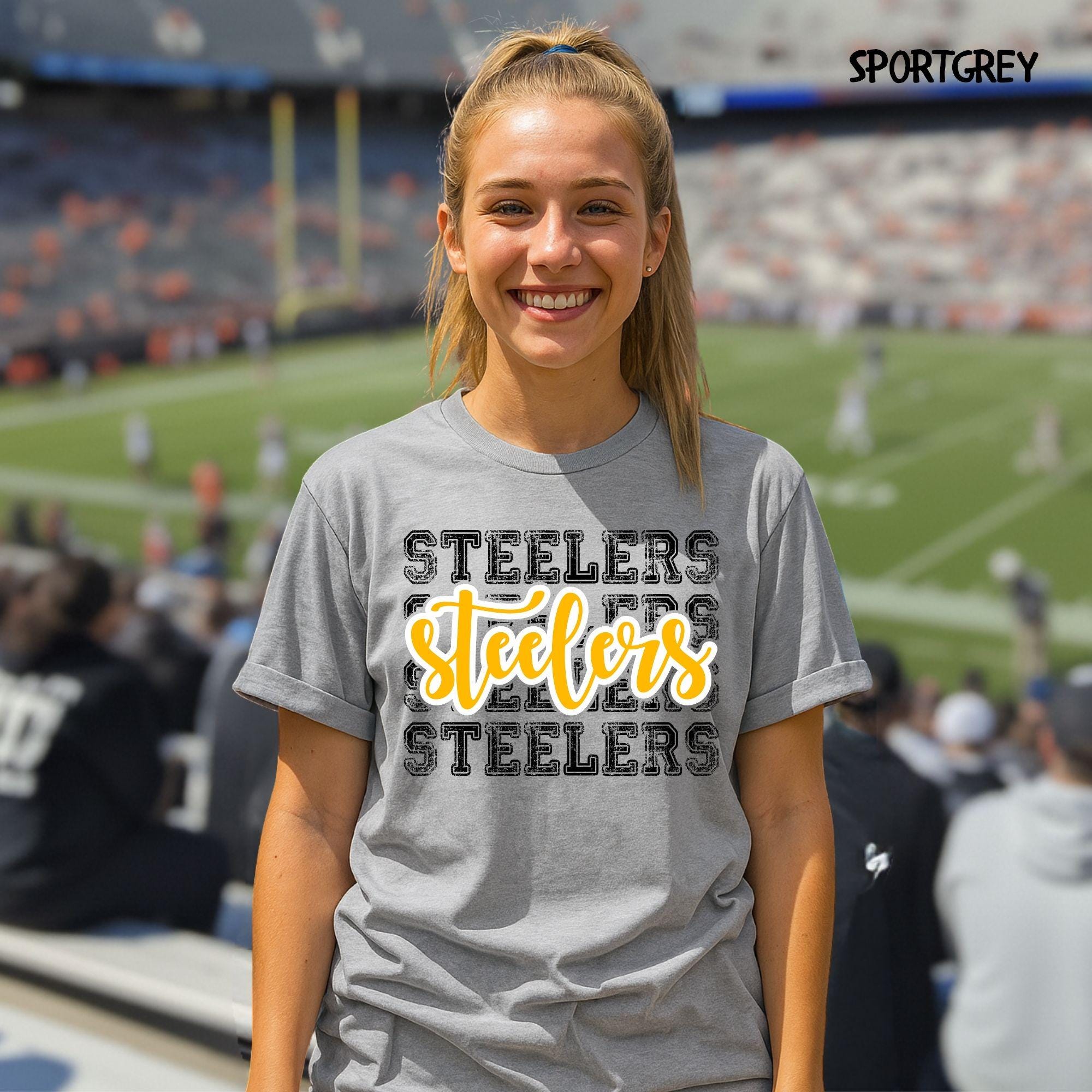 Show your Pittsburgh pride with this bold, layered typography shirt! Designed for the ultimate football fan, this piece stands out with its dynamic script layered over a classic, college-style block font.