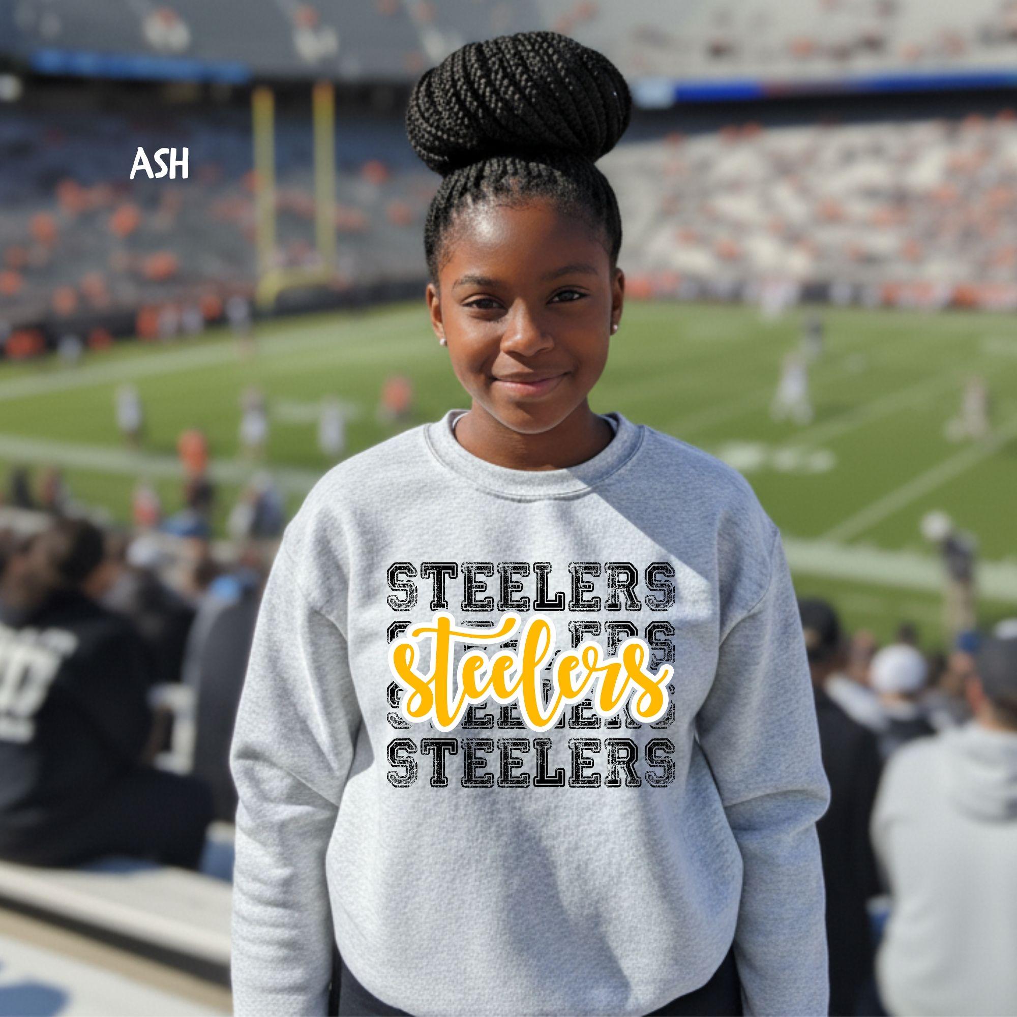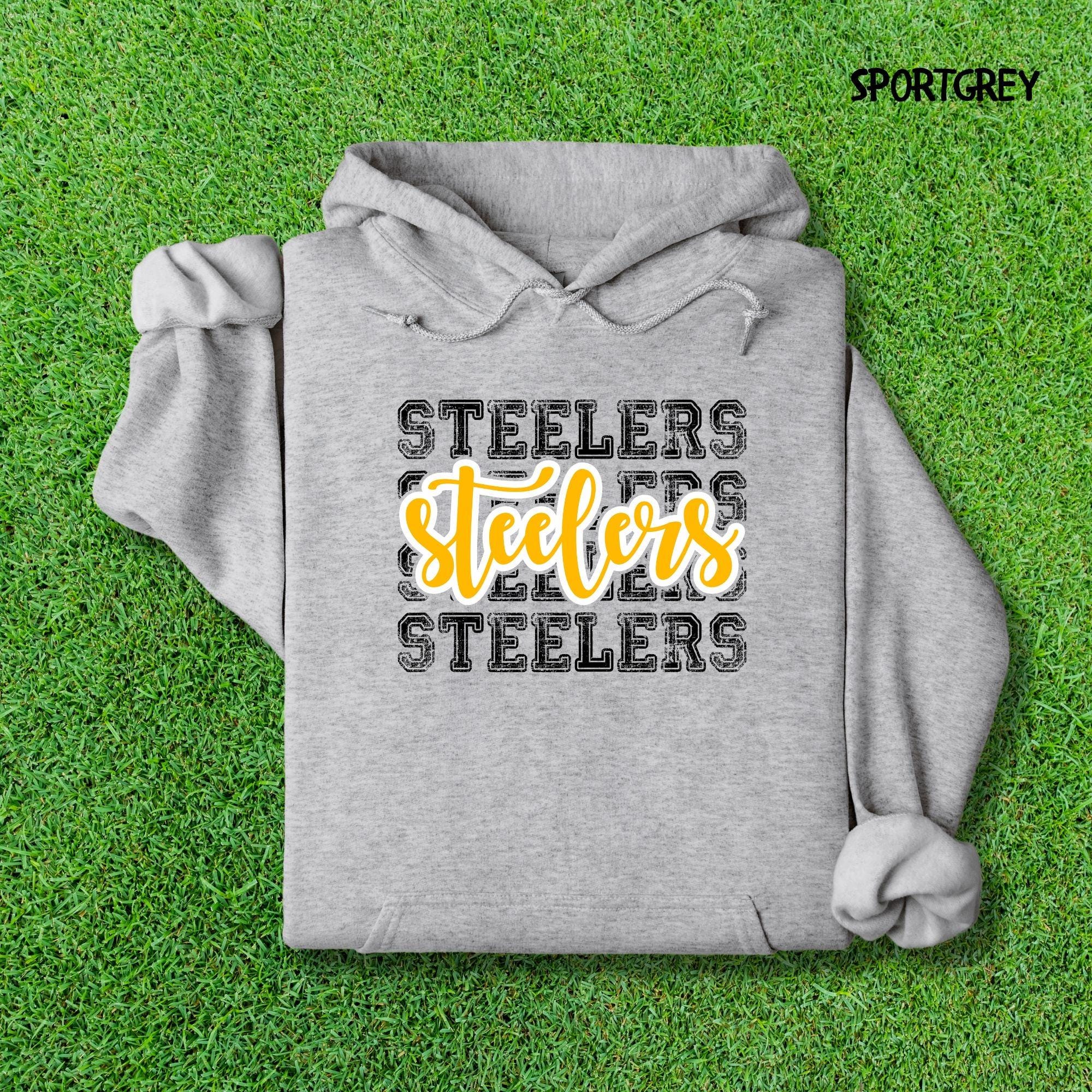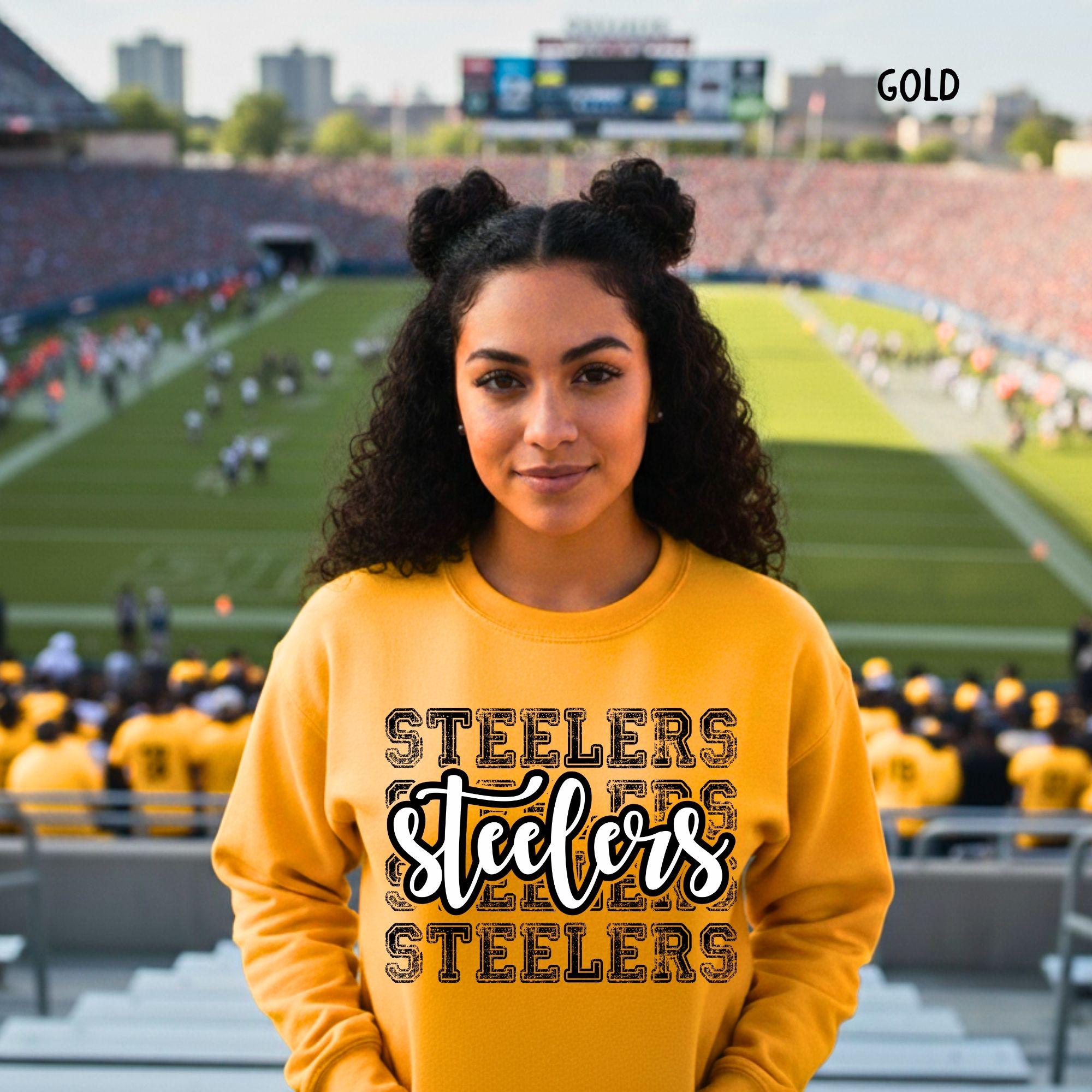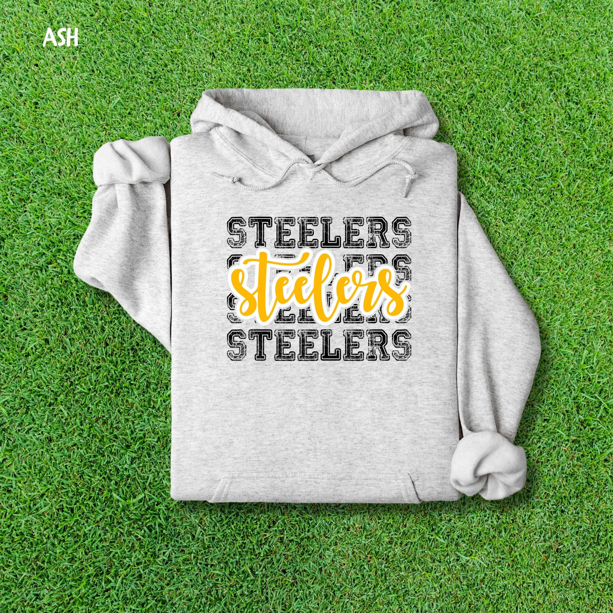 Show your Pittsburgh pride with this bold, layered typography shirt! Designed for the ultimate football fan, this piece stands out with its dynamic script layered over a classic, college-style block font.
