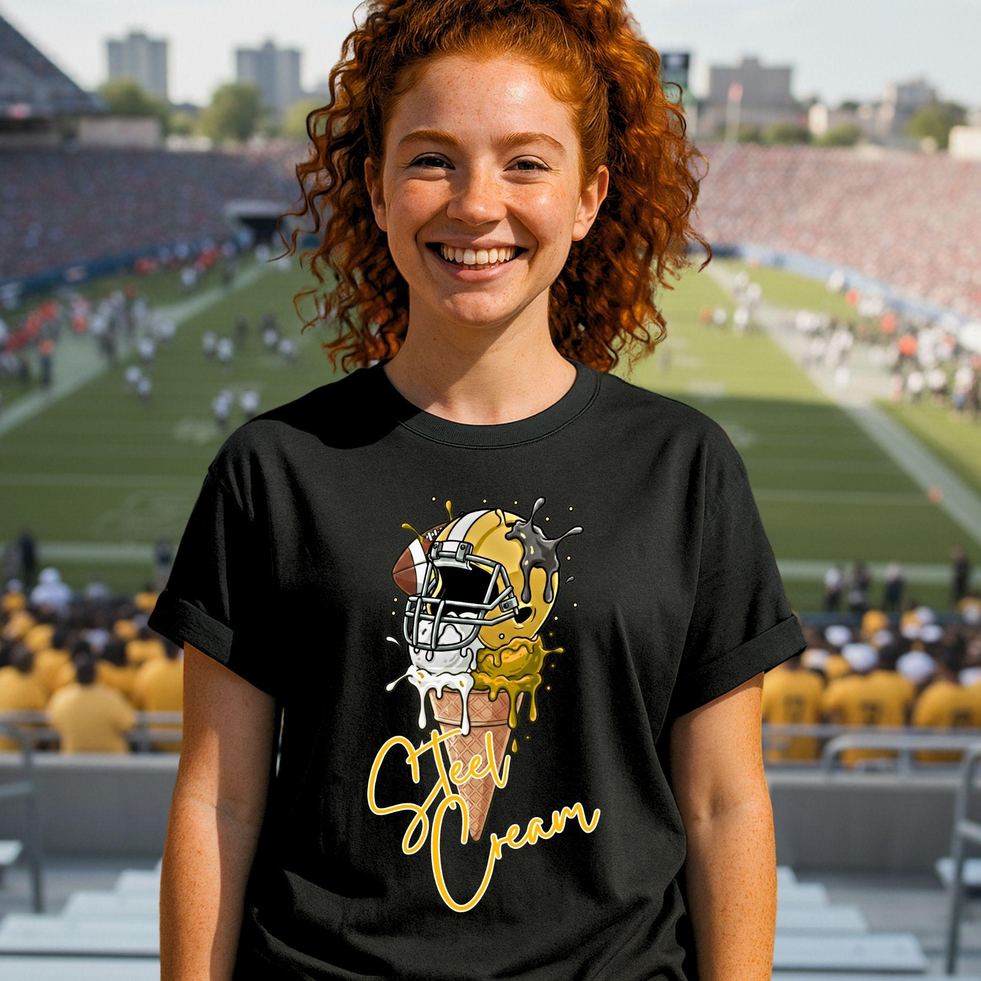 Serve up the perfect game day look! This "Steel Cream" design is the ultimate blend of fan pride and pop-art fun, making it a guaranteed conversation starter at any tailgate or watch party. It's the perfect, witty gift for the football fan who has everything.