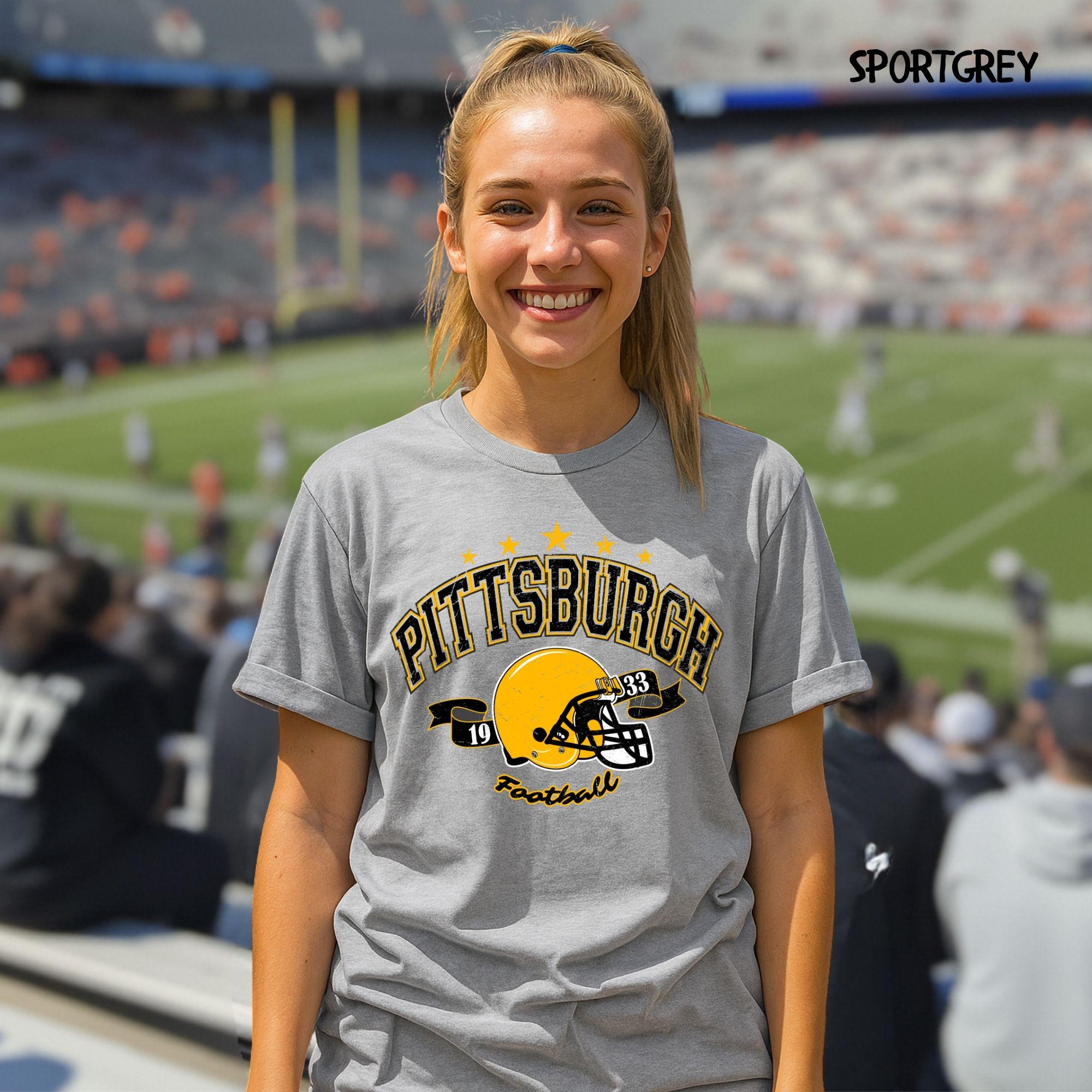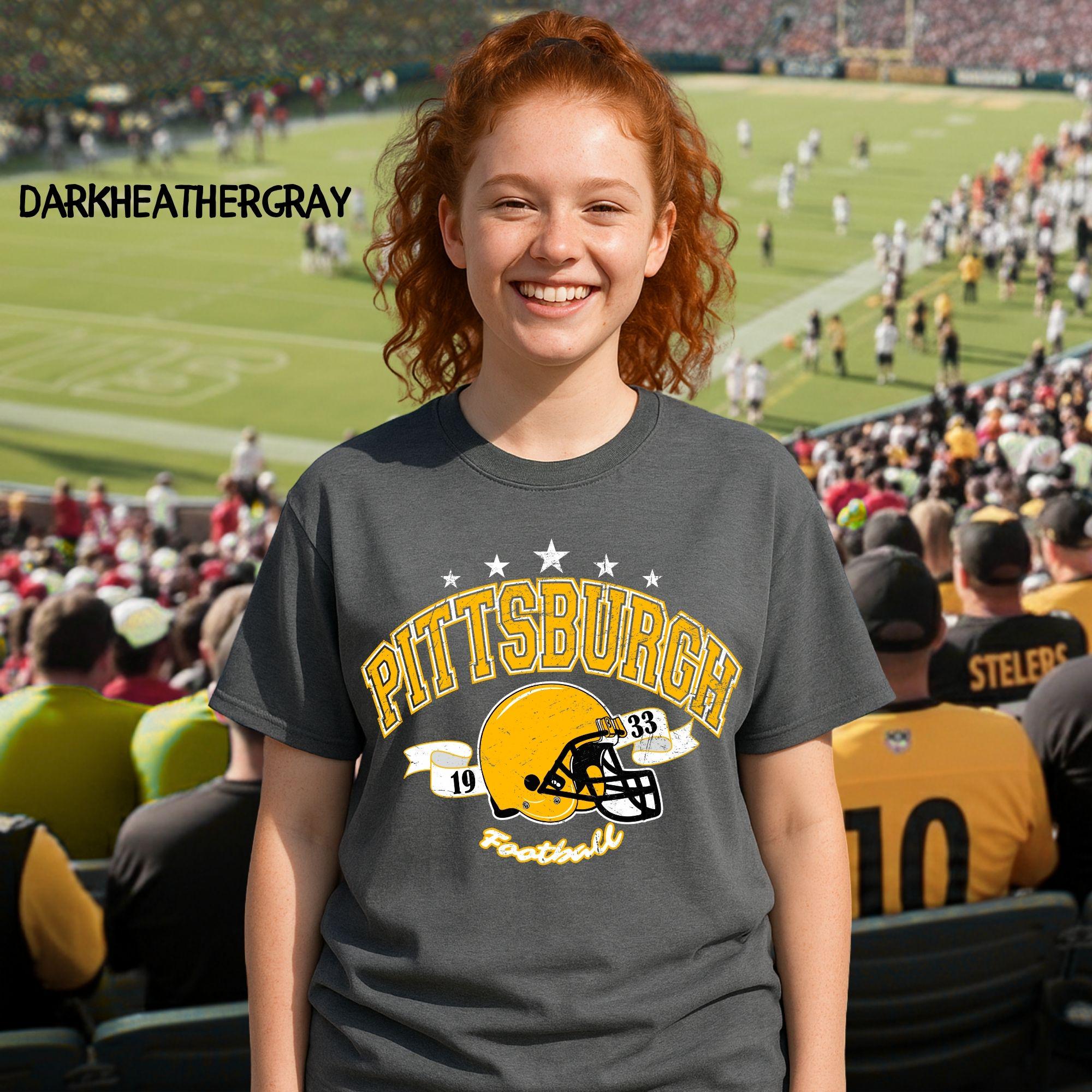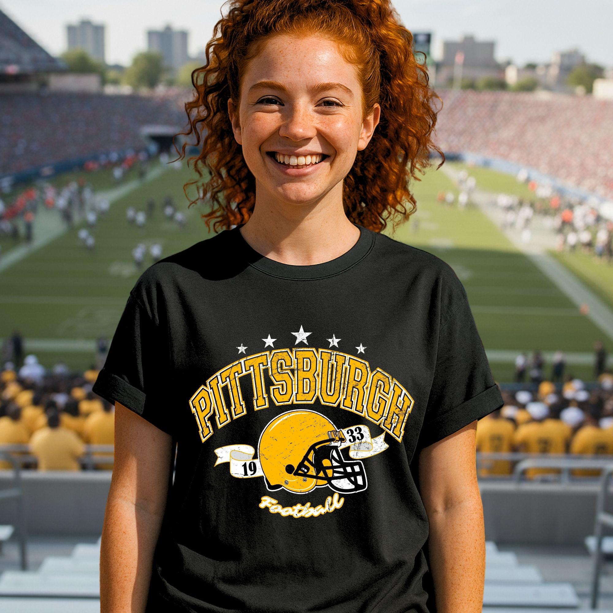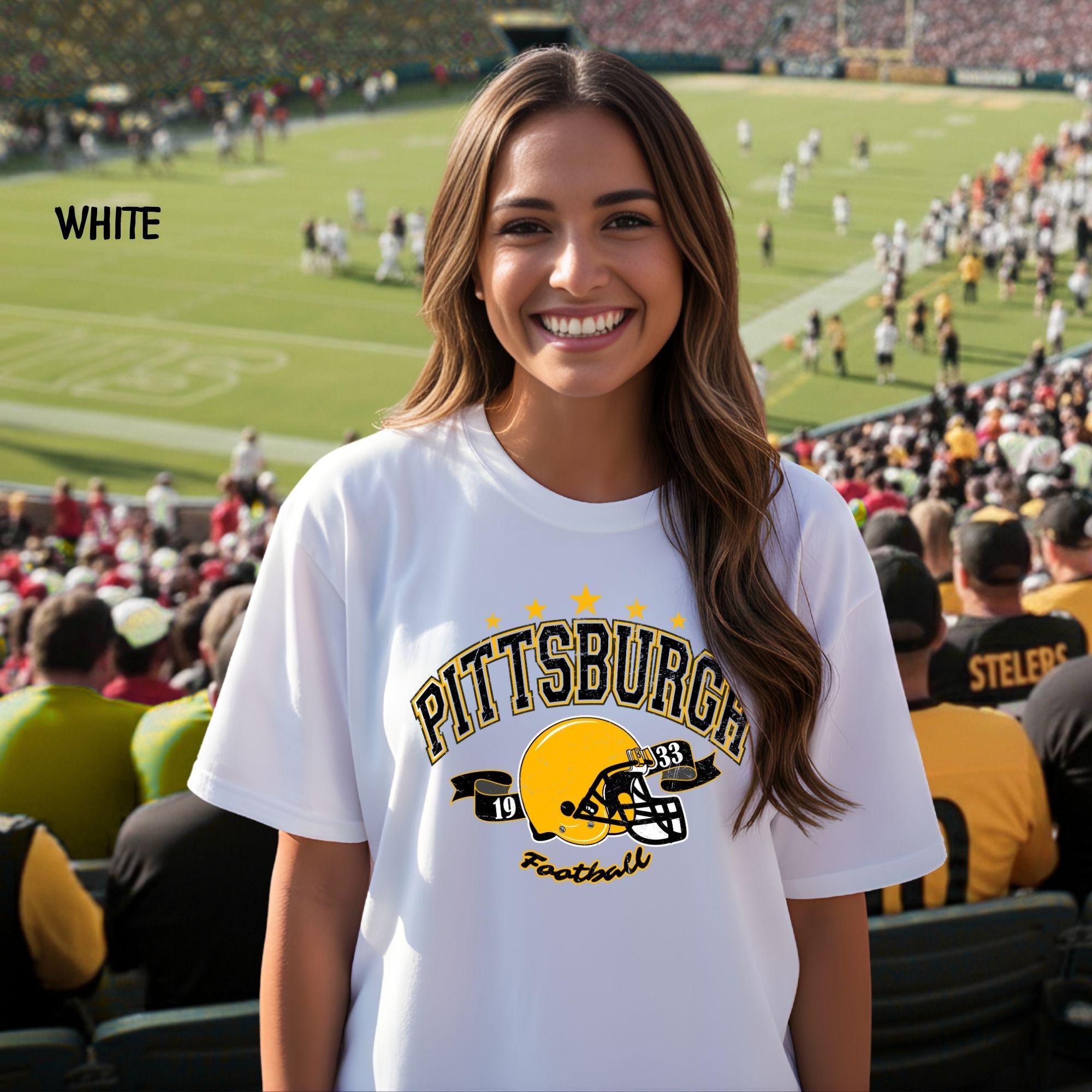 Embrace classic gameday vibes with this Retro Pittsburgh Football Shirt. Designed for the dedicated fan, this tee captures the spirit of 90s athletics with a bold, college-style helmet graphic. It’s the perfect gift for dad, or any Pittsburgh fan who loves a vintage, throwback look.