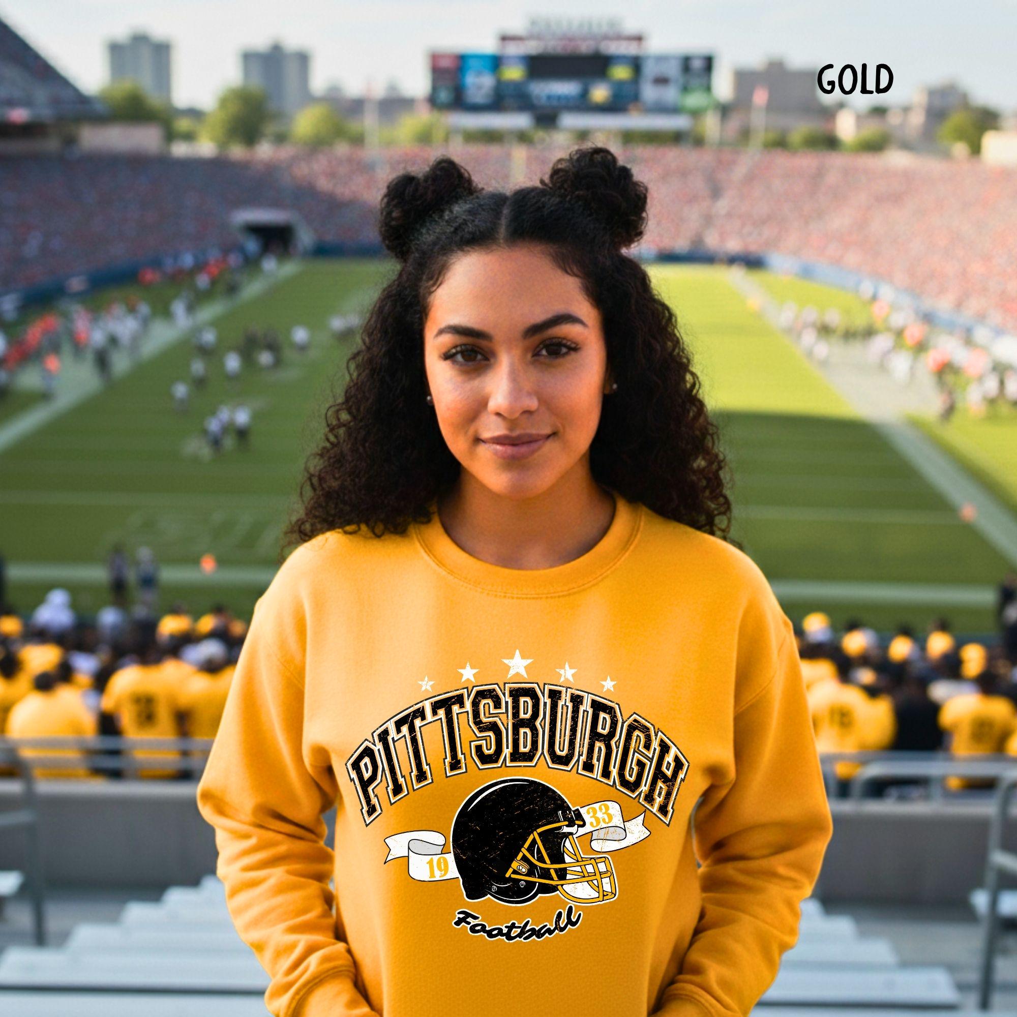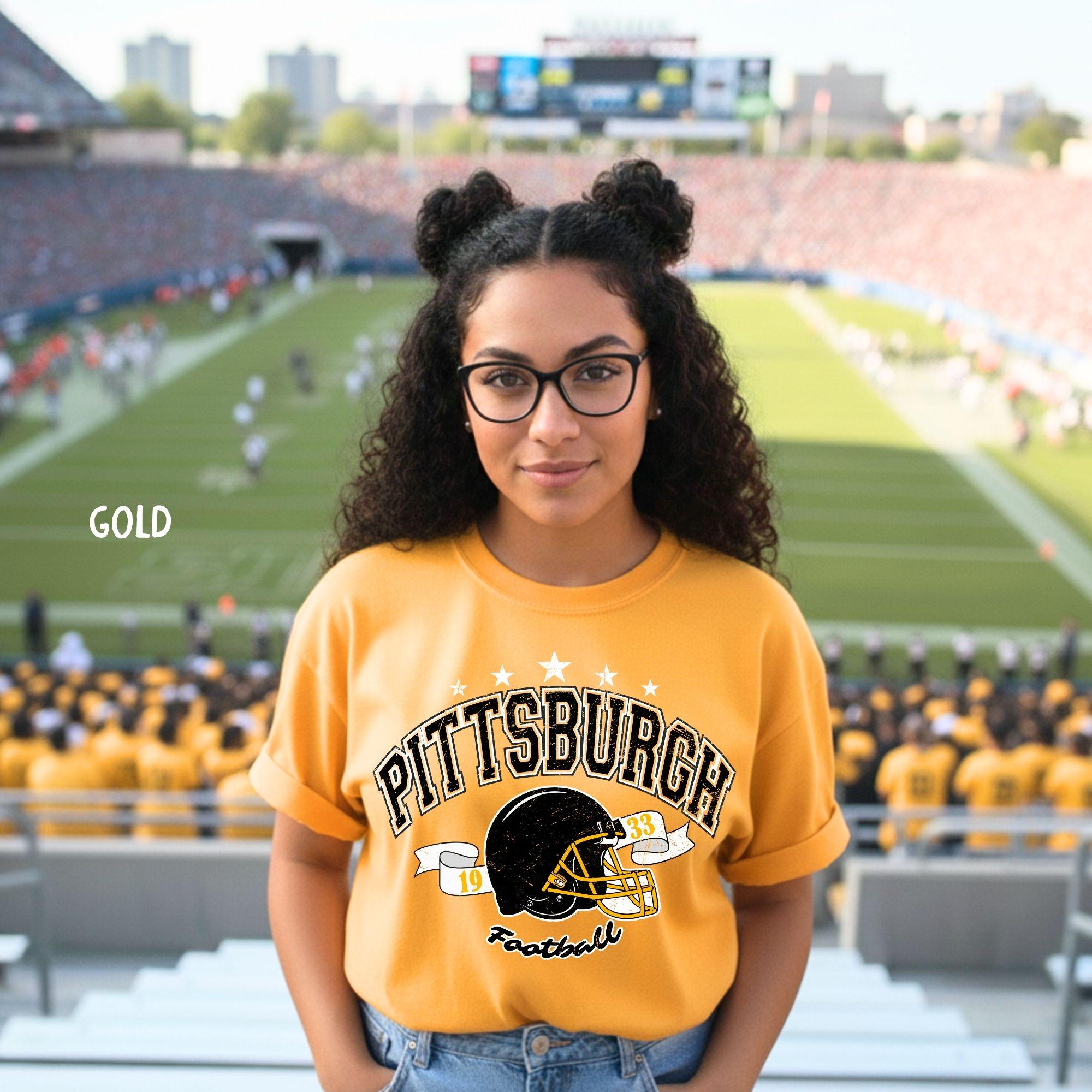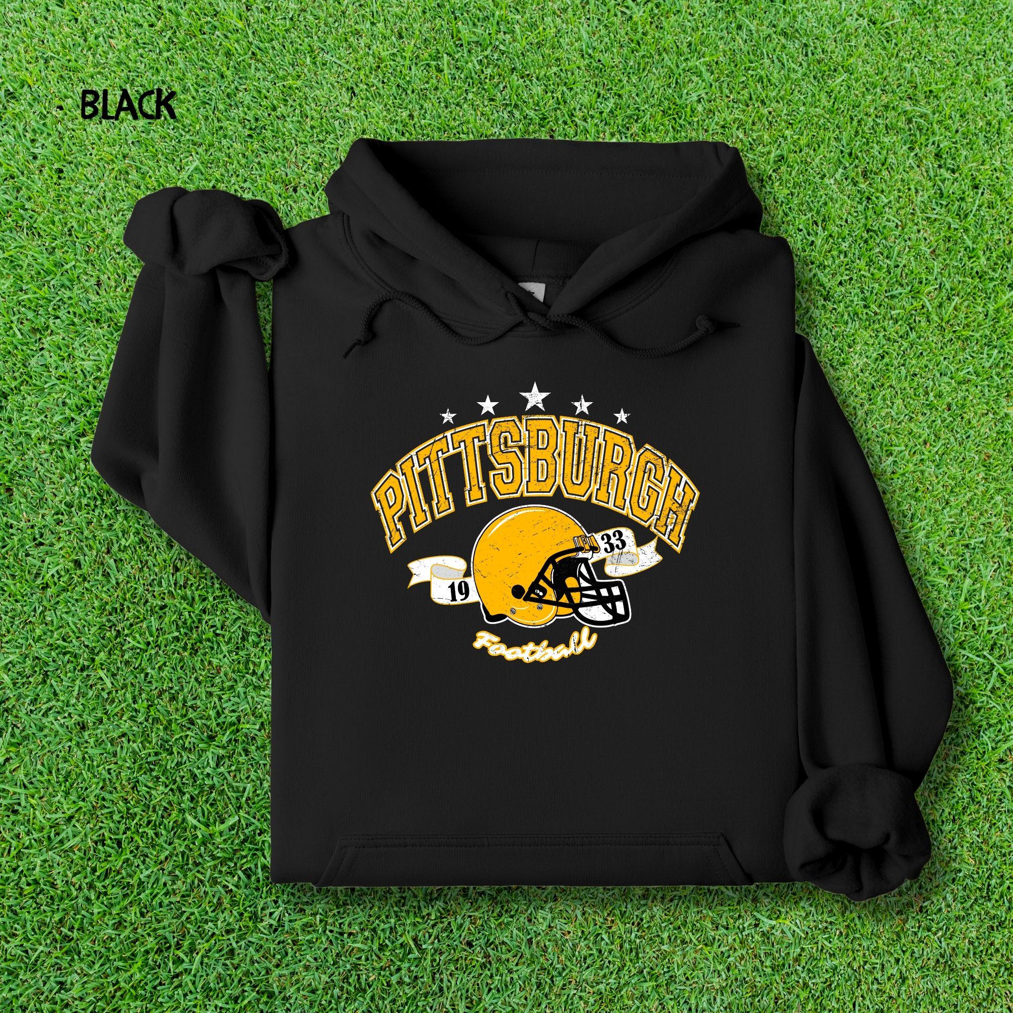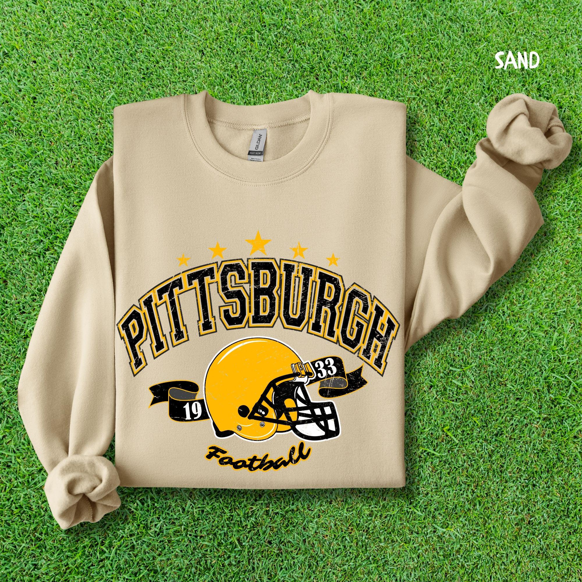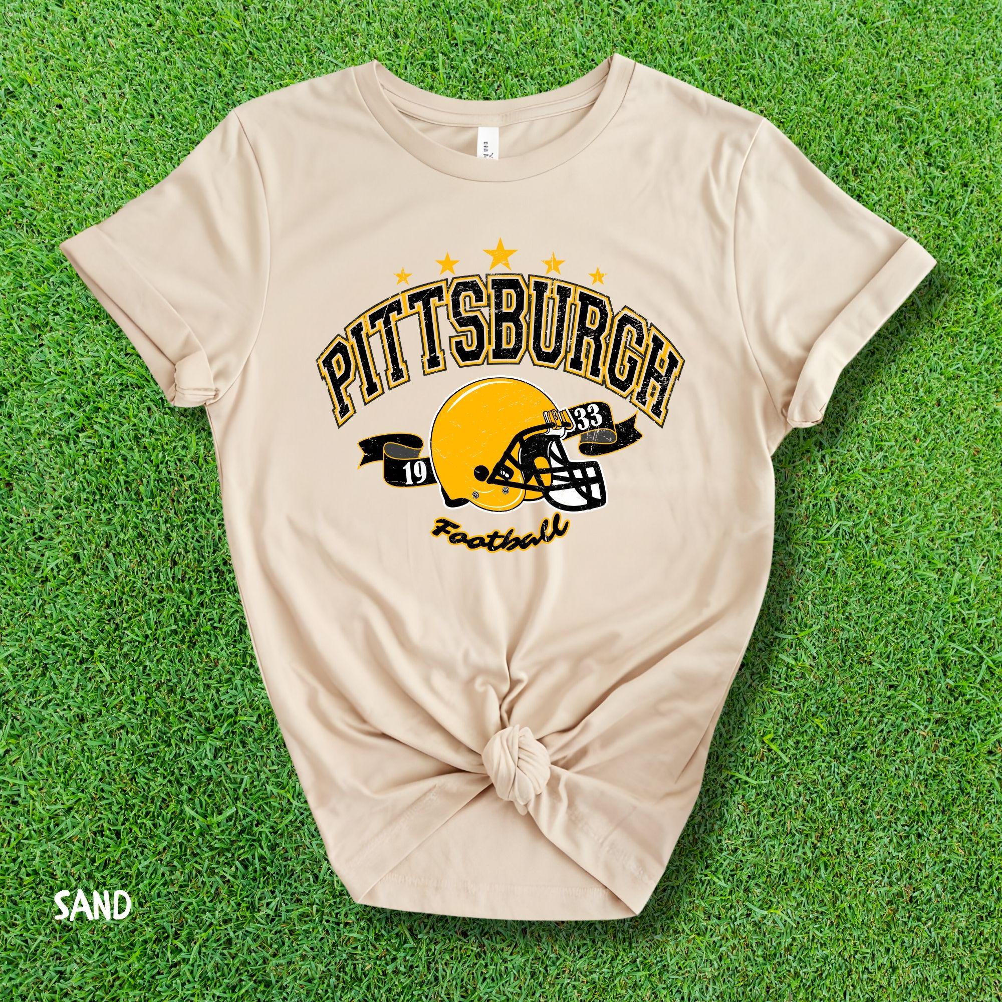 Embrace classic gameday vibes with this Retro Pittsburgh Football Shirt. Designed for the dedicated fan, this tee captures the spirit of 90s athletics with a bold, college-style helmet graphic. It’s the perfect gift for dad, or any Pittsburgh fan who loves a vintage, throwback look.