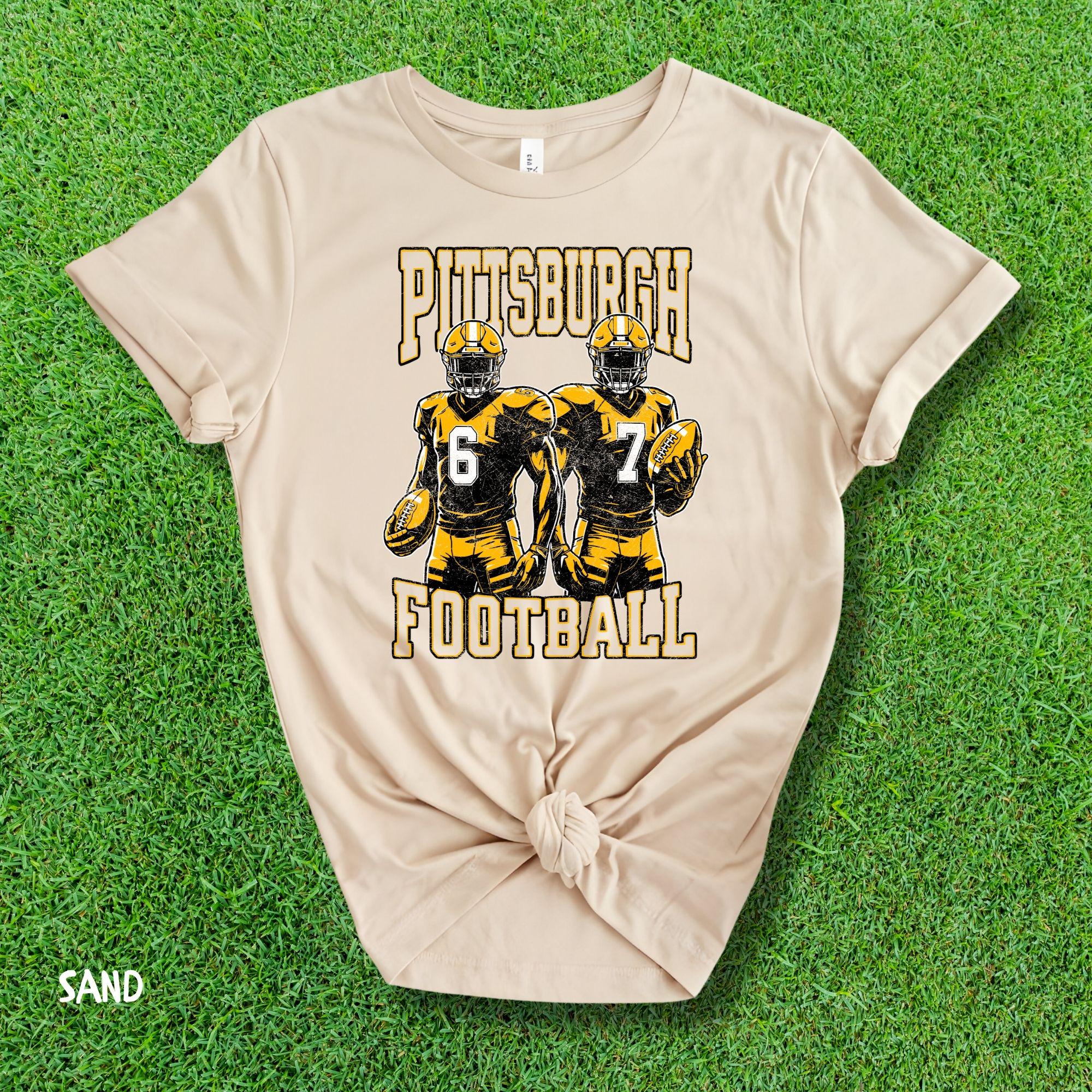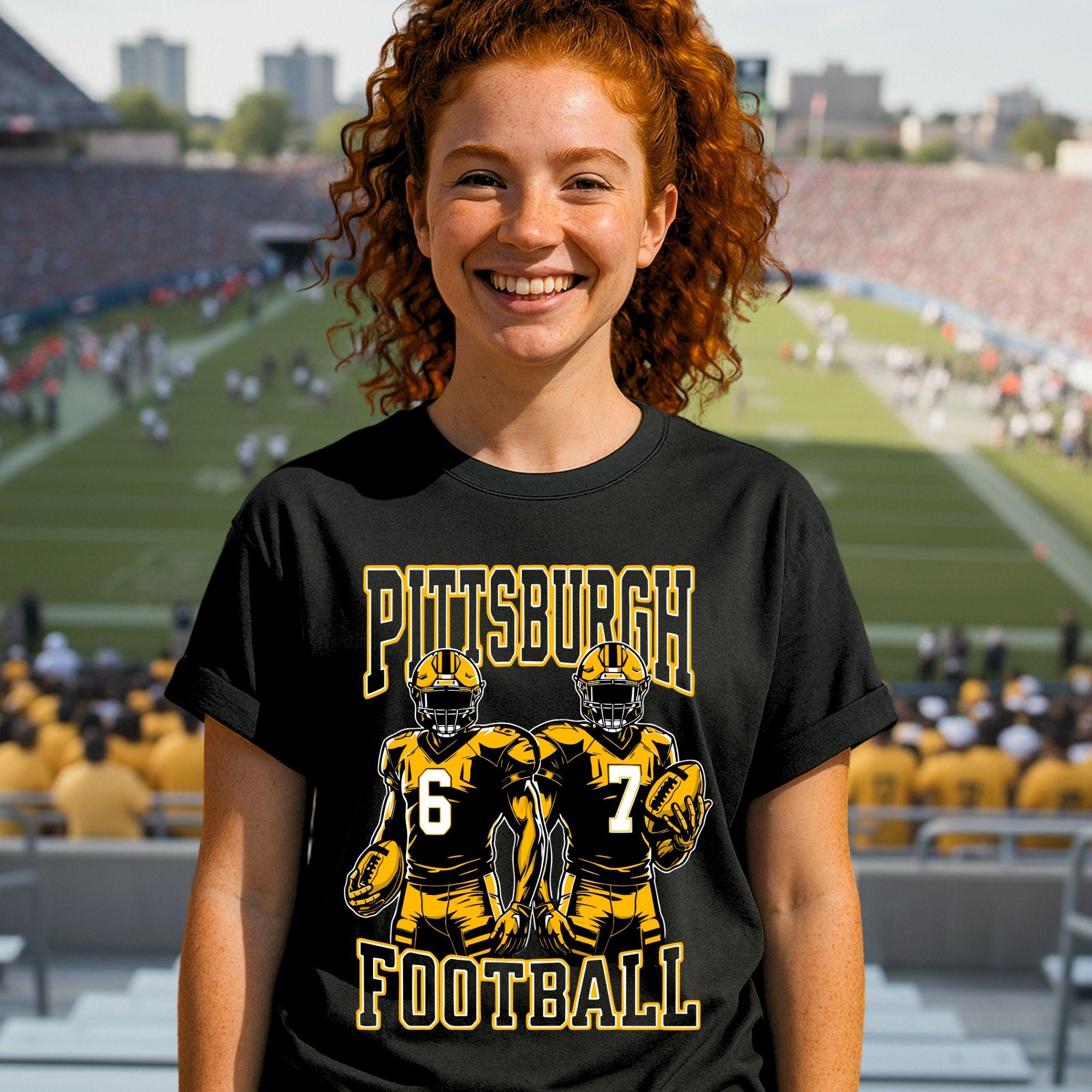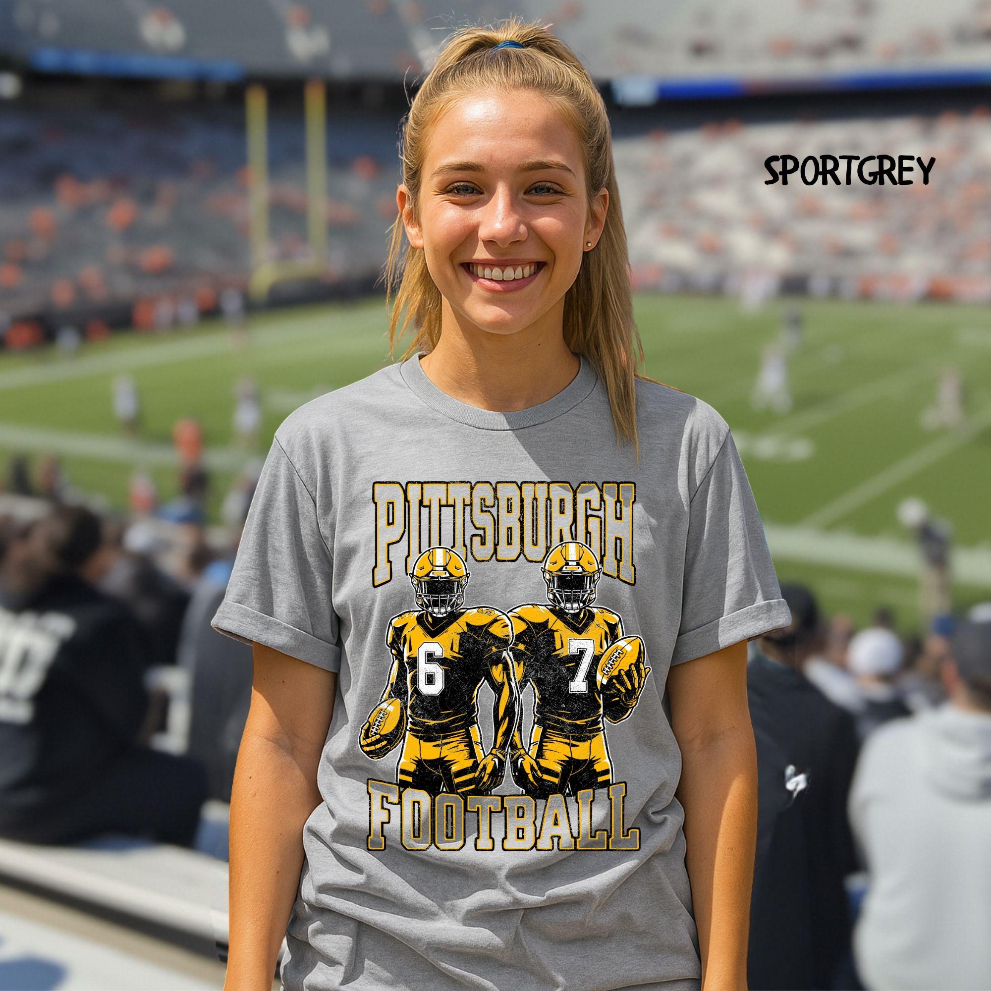 Show you're in the know. This isn't just another retro Pittsburgh football shirt; it's the viral 6 7 meme shirt true fans (IYKYK) will recognize instantly. Featuring a bold, distressed '90s college graphic, it’s the perfect game day outfit or TikTok fan gift for anyone who gets the inside joke.