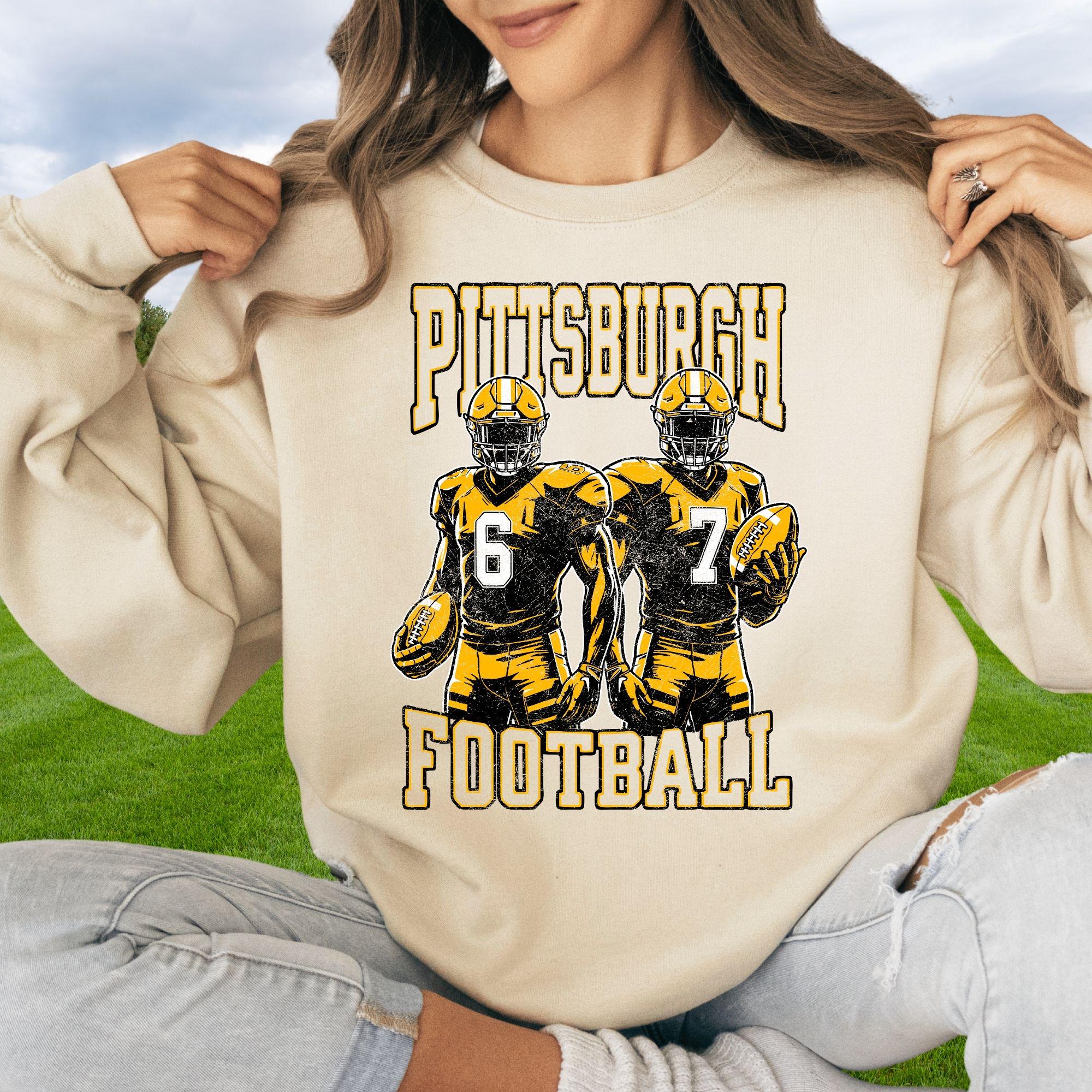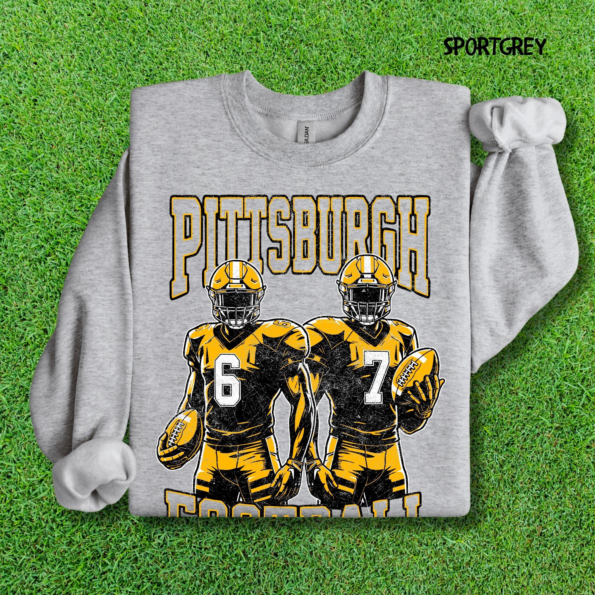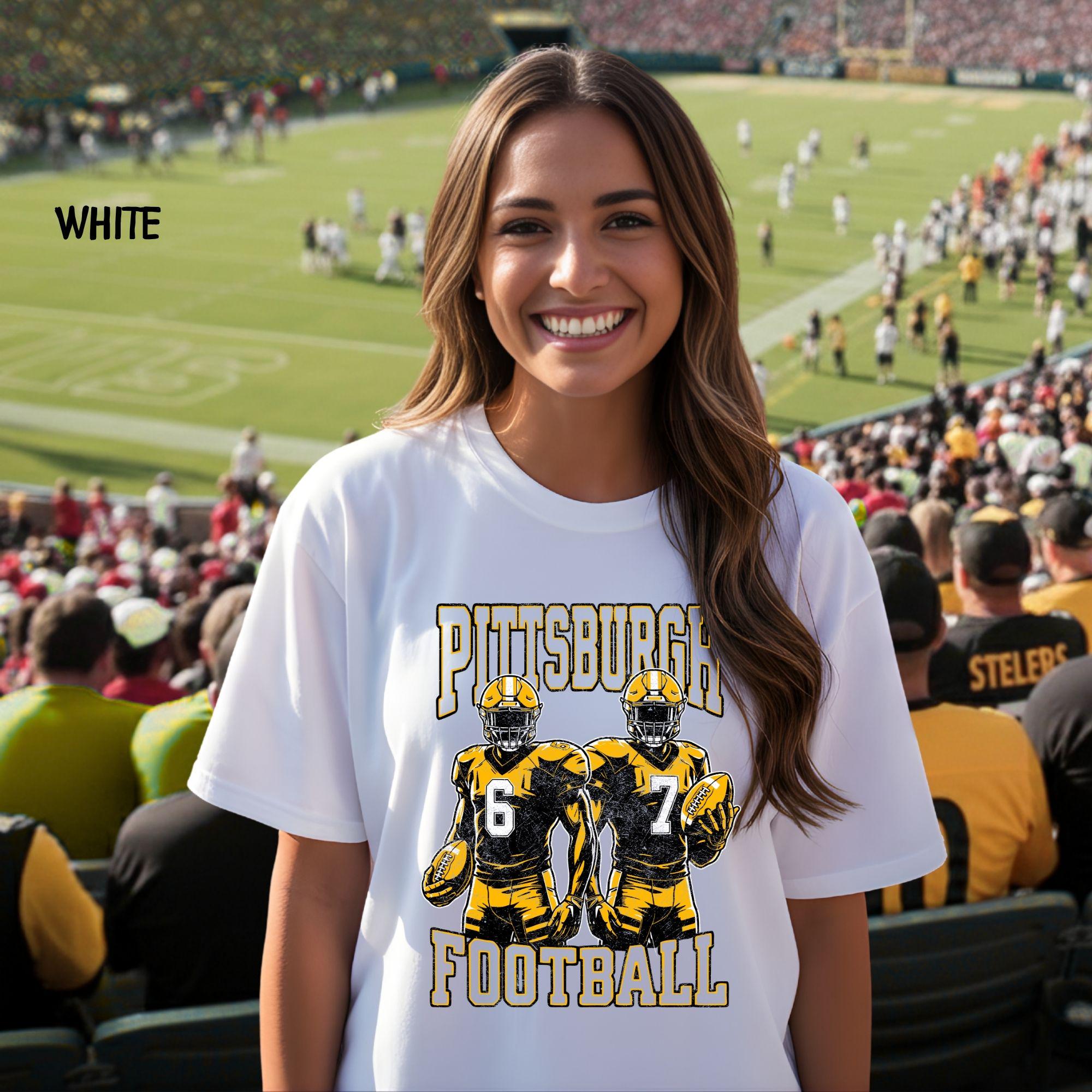 Show you're in the know. This isn't just another retro Pittsburgh football shirt; it's the viral 6 7 meme shirt true fans (IYKYK) will recognize instantly. Featuring a bold, distressed '90s college graphic, it’s the perfect game day outfit or TikTok fan gift for anyone who gets the inside joke.