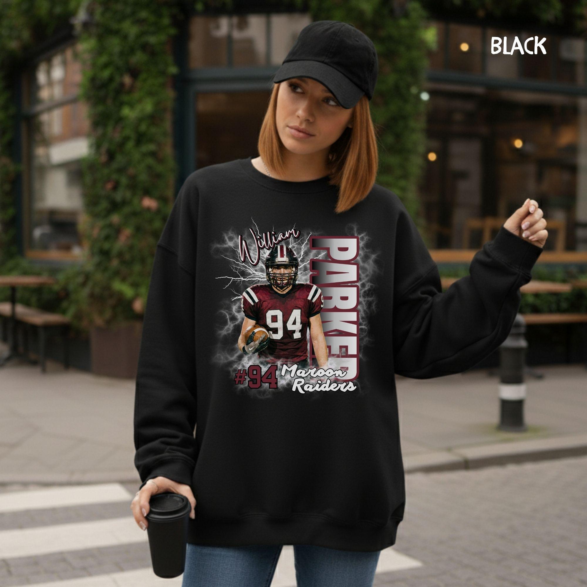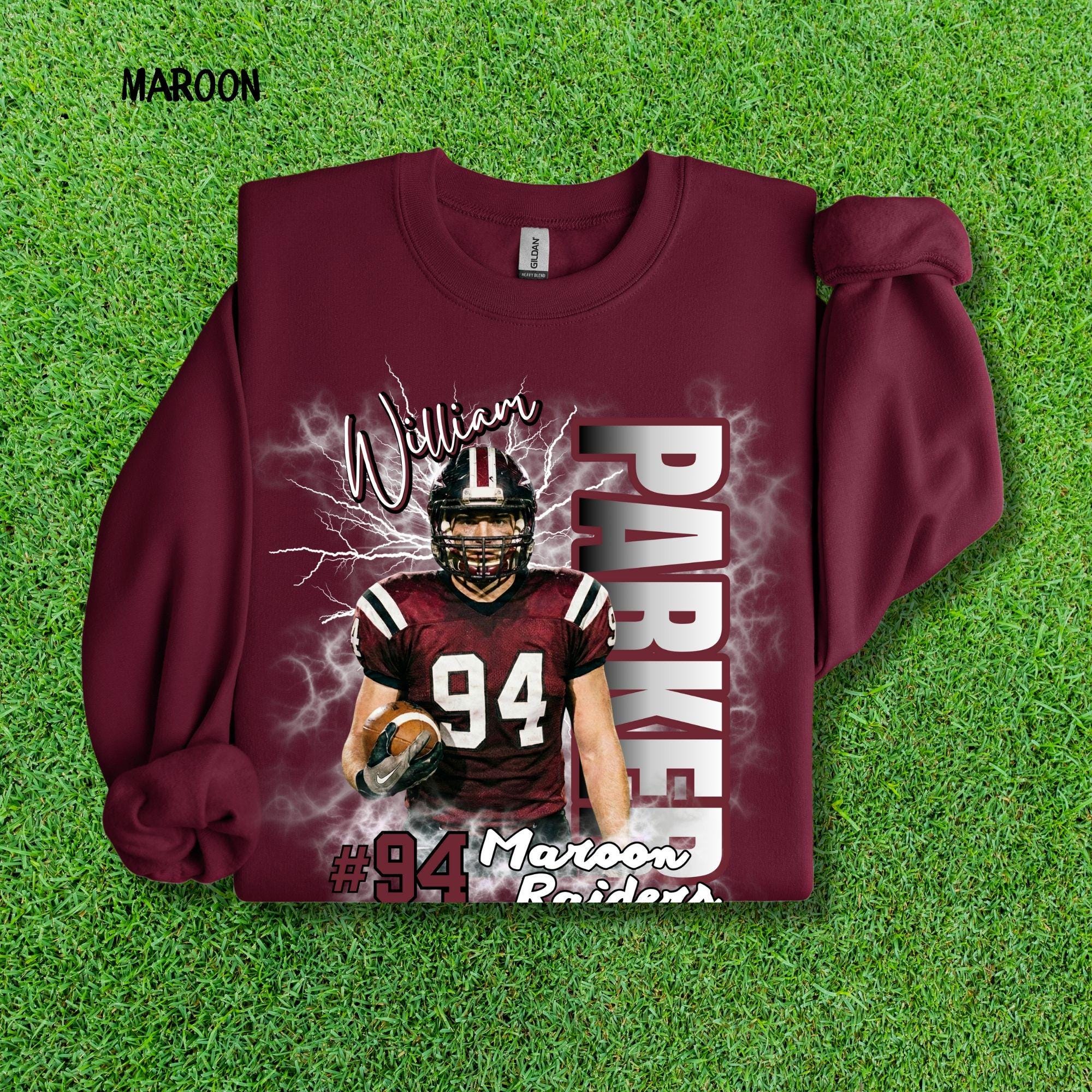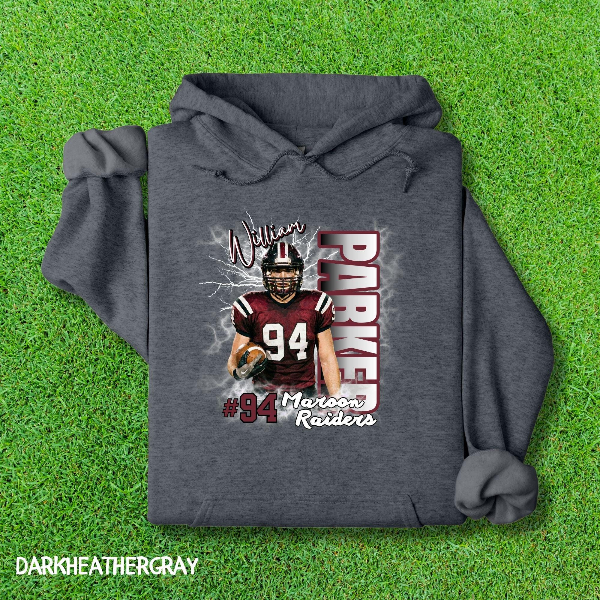 Embrace the hype of Friday night lights with our Custom Bootleg Football Hoodie, featuring a clean, minimalist 90s retro style. This design takes the classic "rap tee" aesthetic and modernizes it with a sharp, high-contrast player photo and dramatic smoke effects—making it the ultimate personalized senior night gift for boyfriends, proud moms, and dedicated fans.